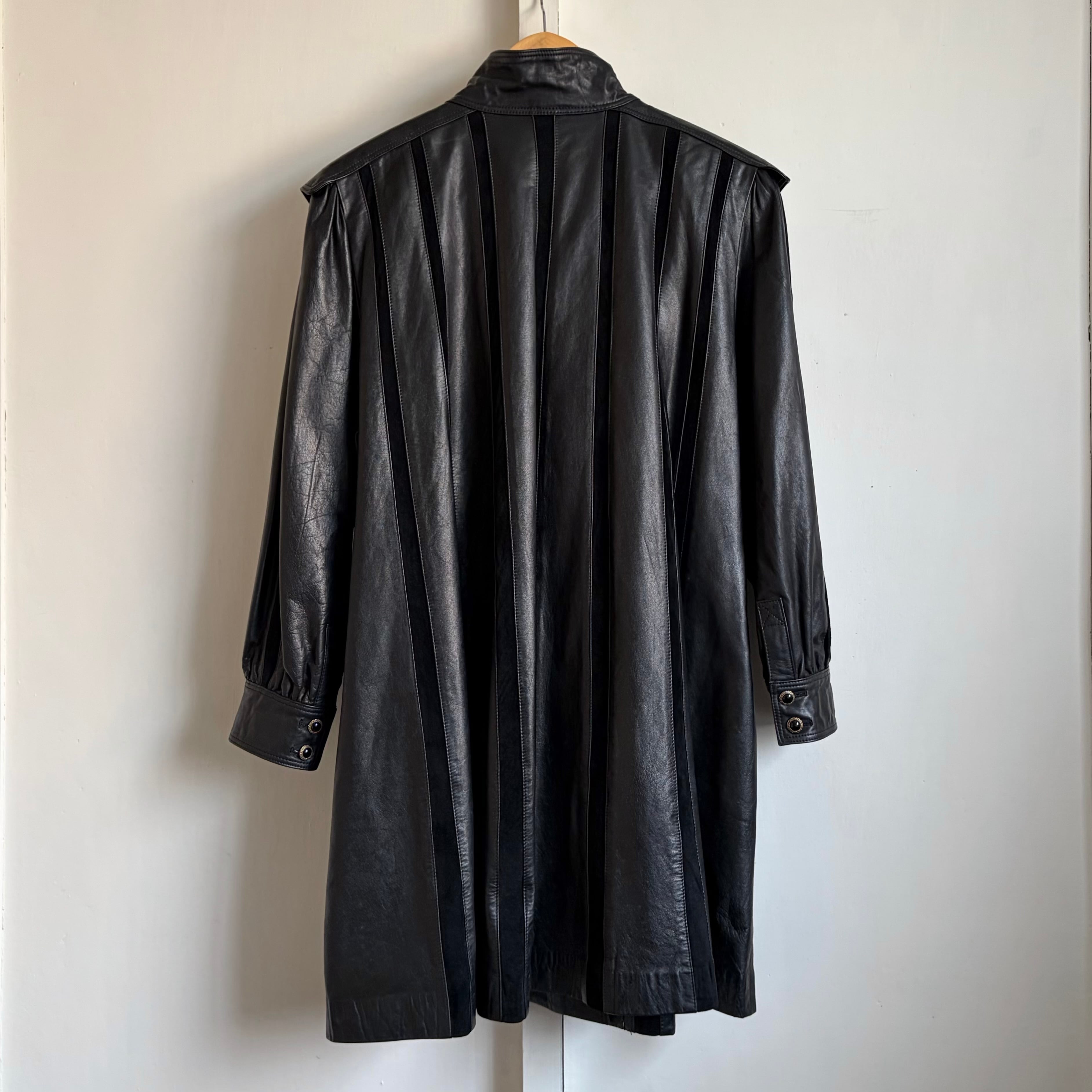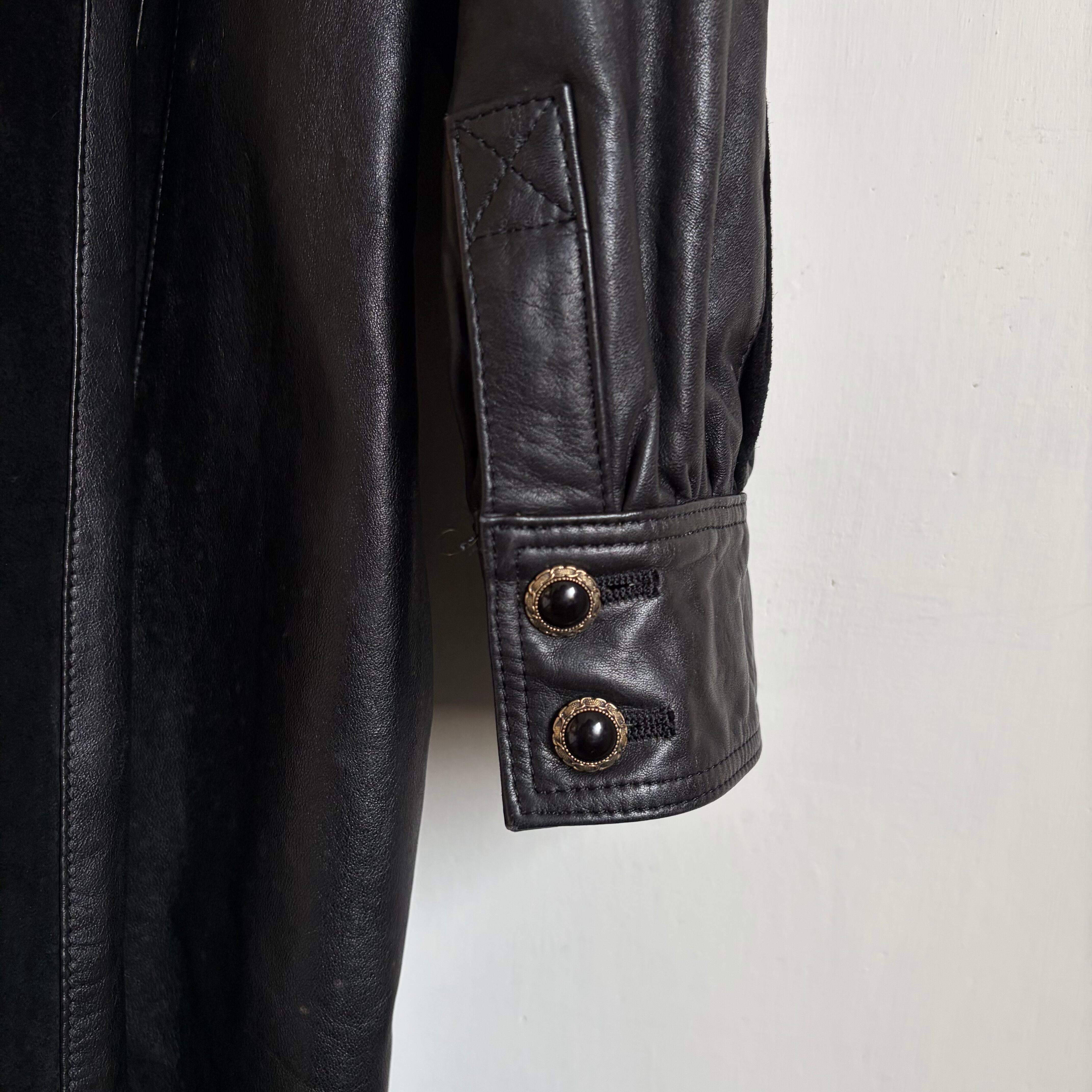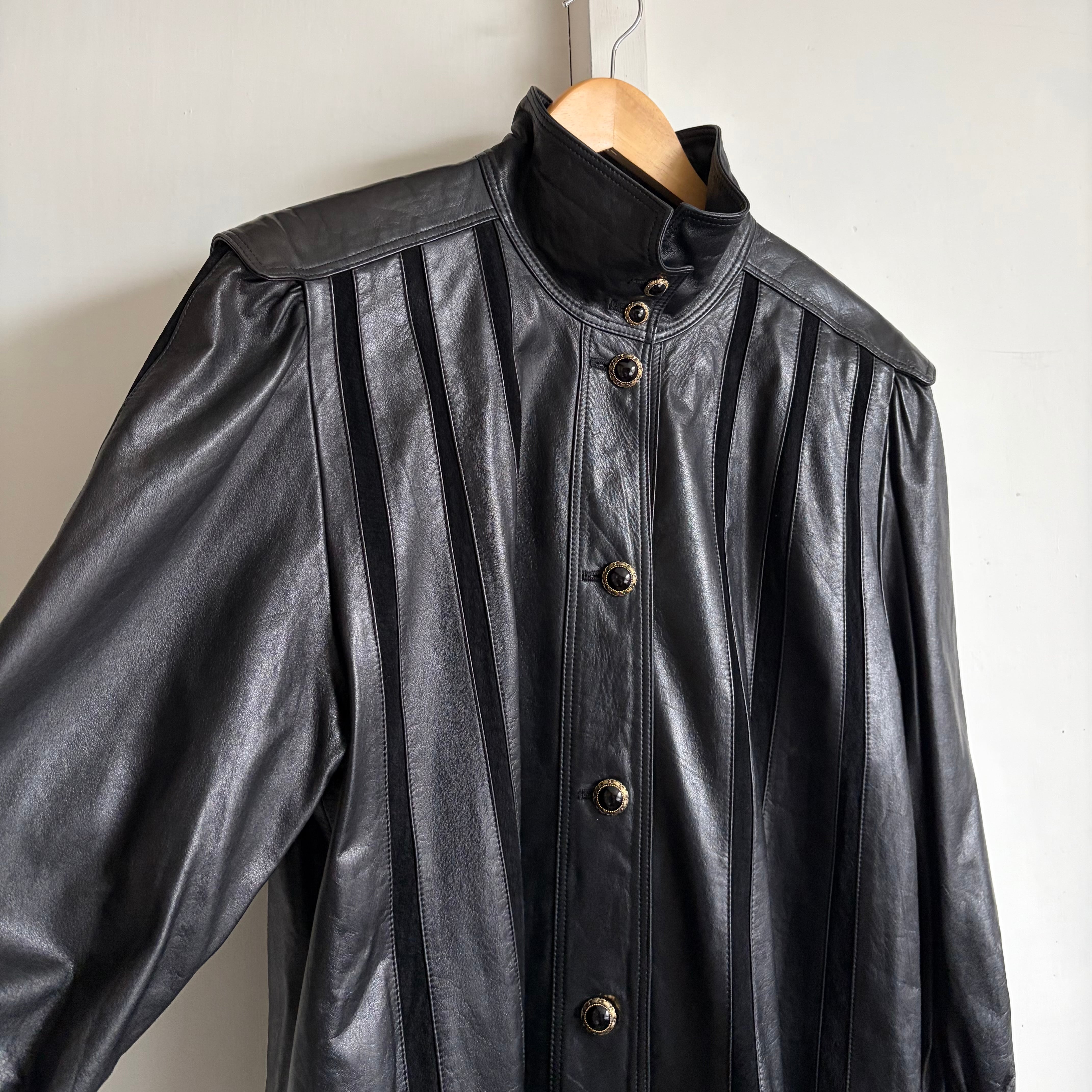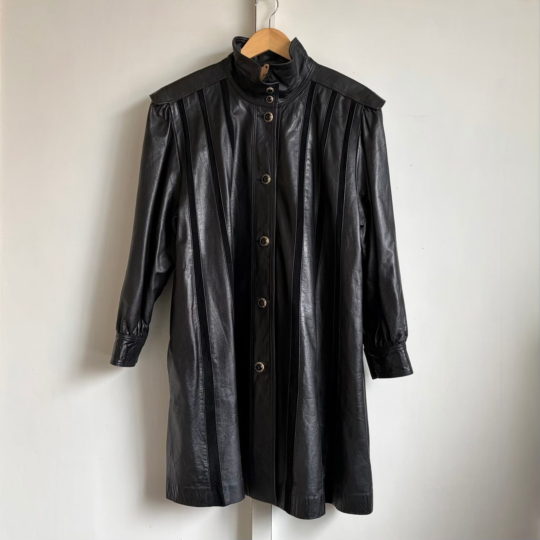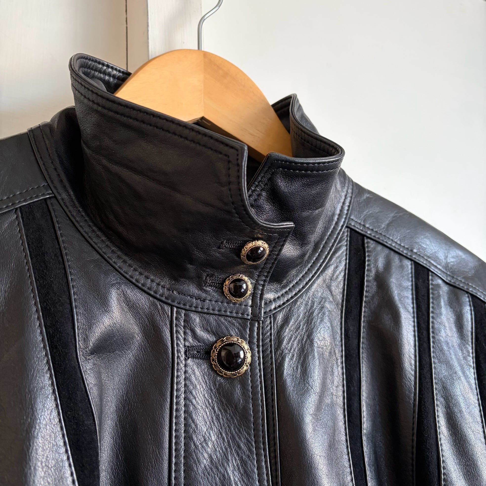 Cow Leather Stand Collar Coat〈レトロ古着 カウレザー スタンドカラーコート 黒 日本製 ジャパンヴィンテージ Japan Vintage〉