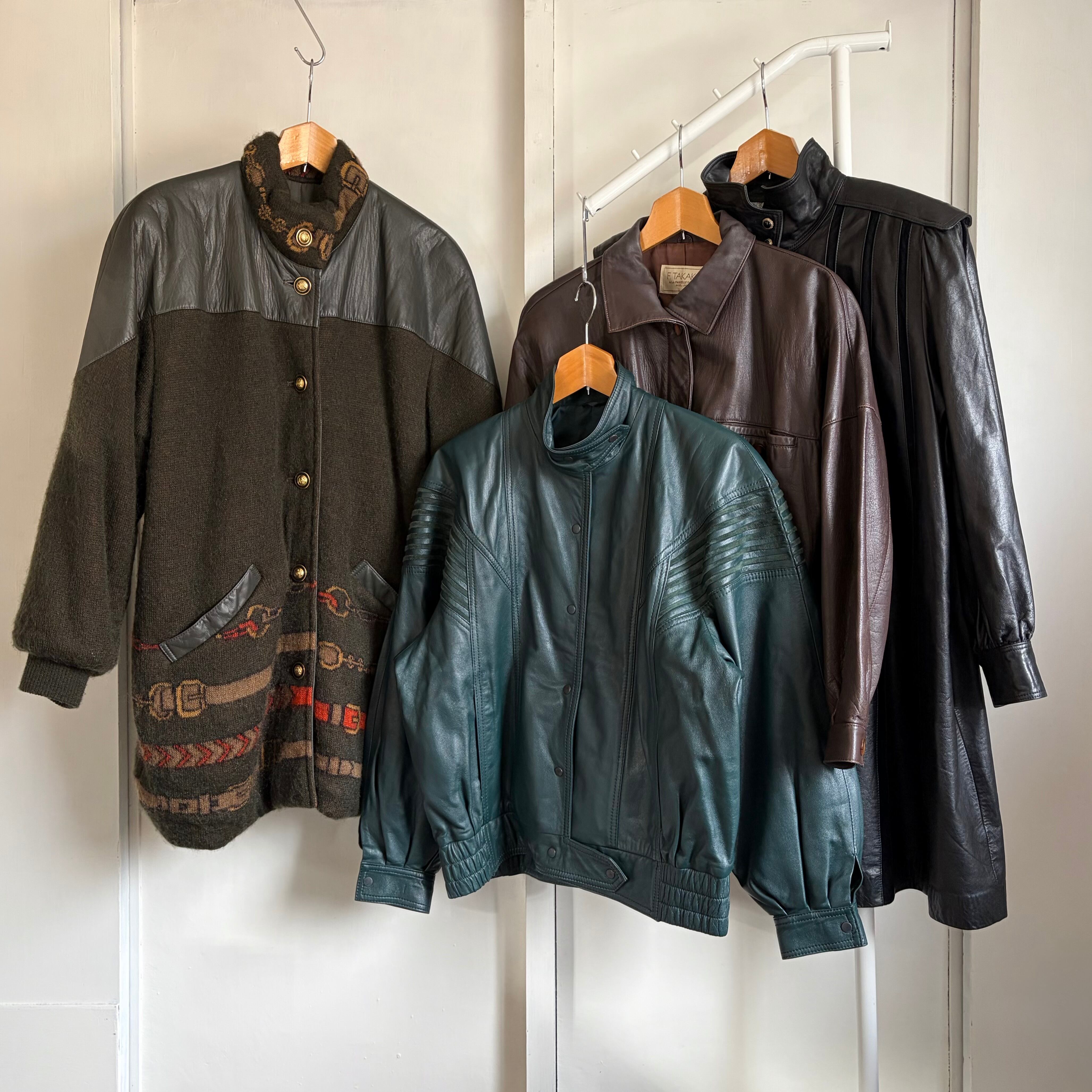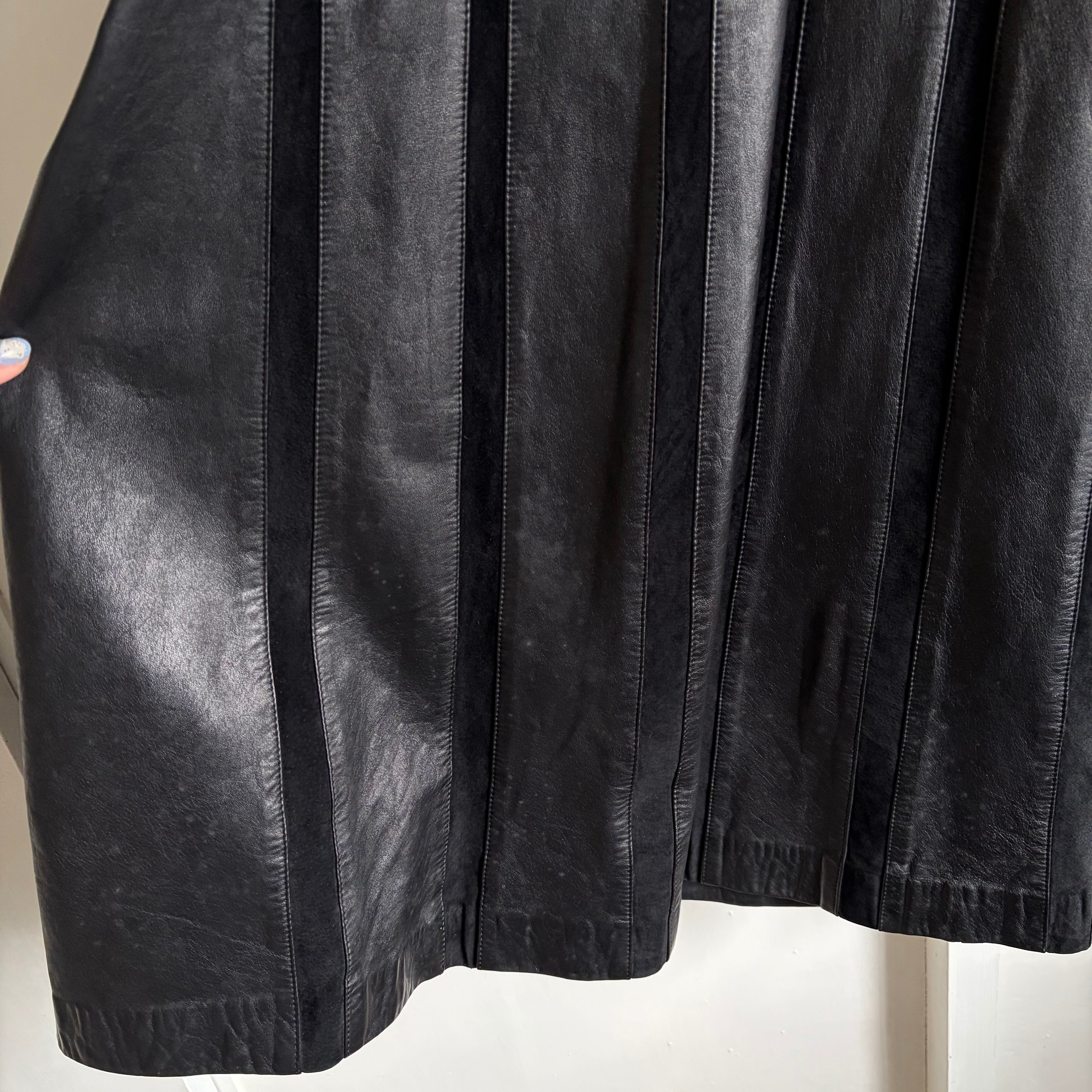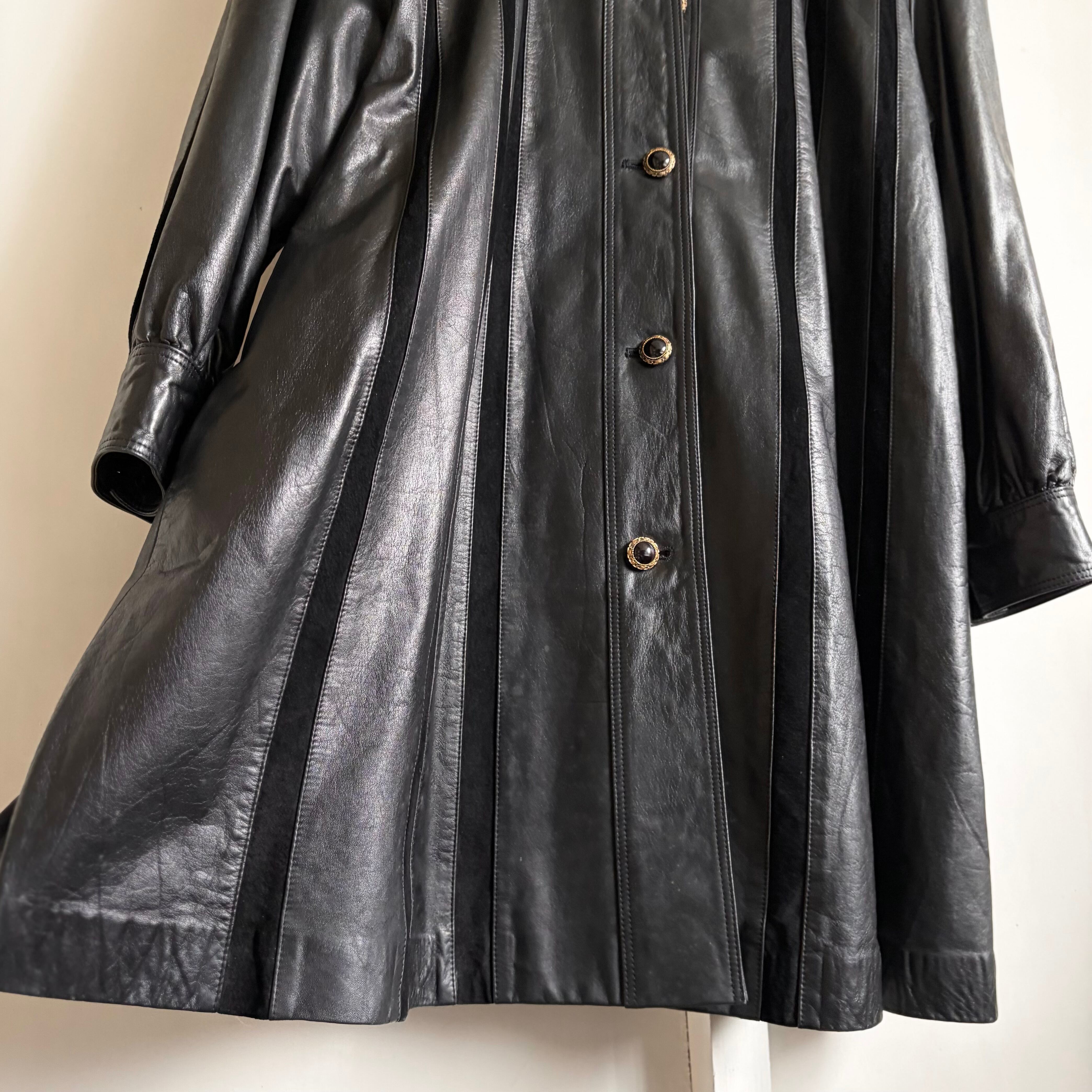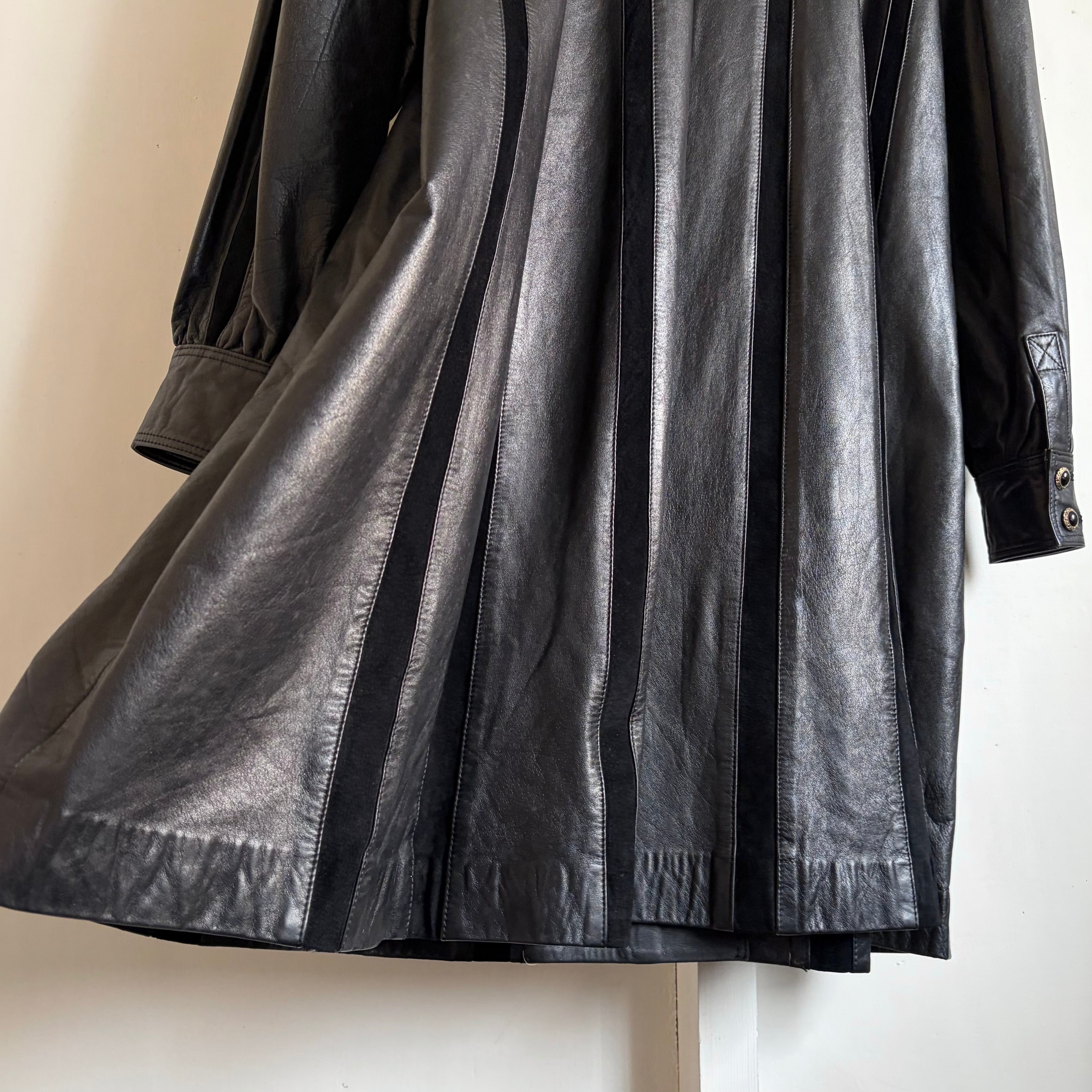 Cow Leather Stand Collar Coat〈レトロ古着 カウレザー スタンドカラーコート 黒 日本製 ジャパンヴィンテージ Japan Vintage〉