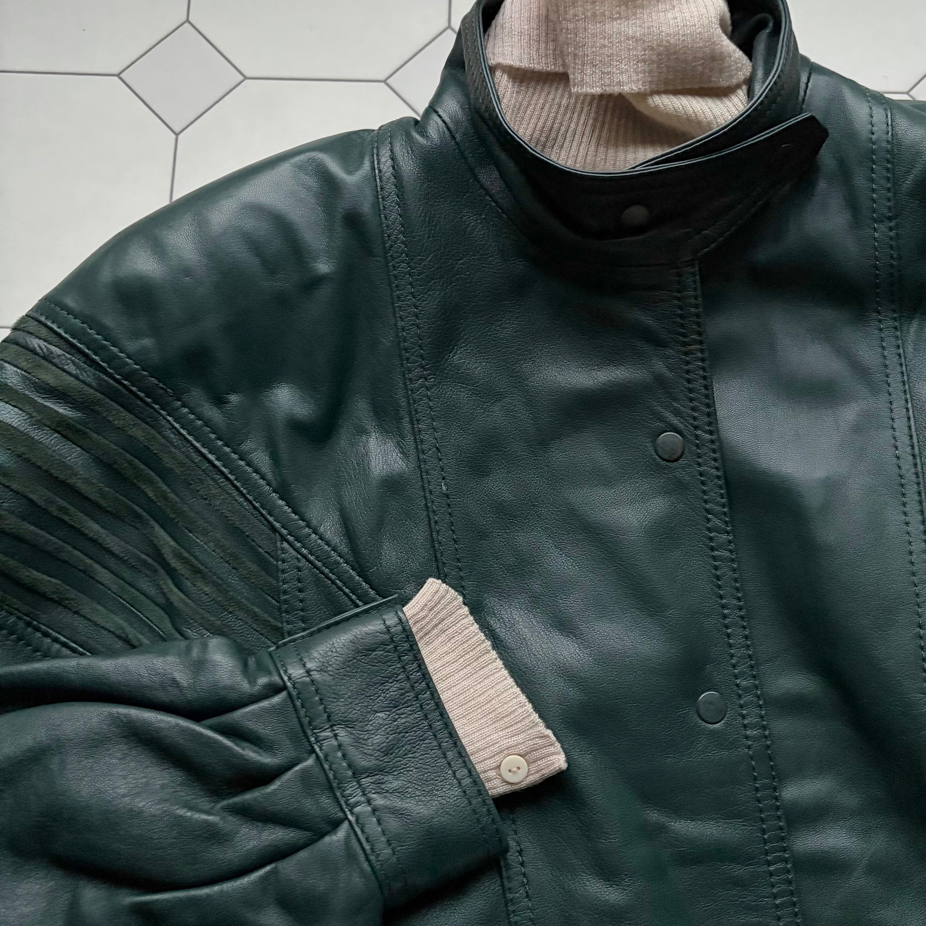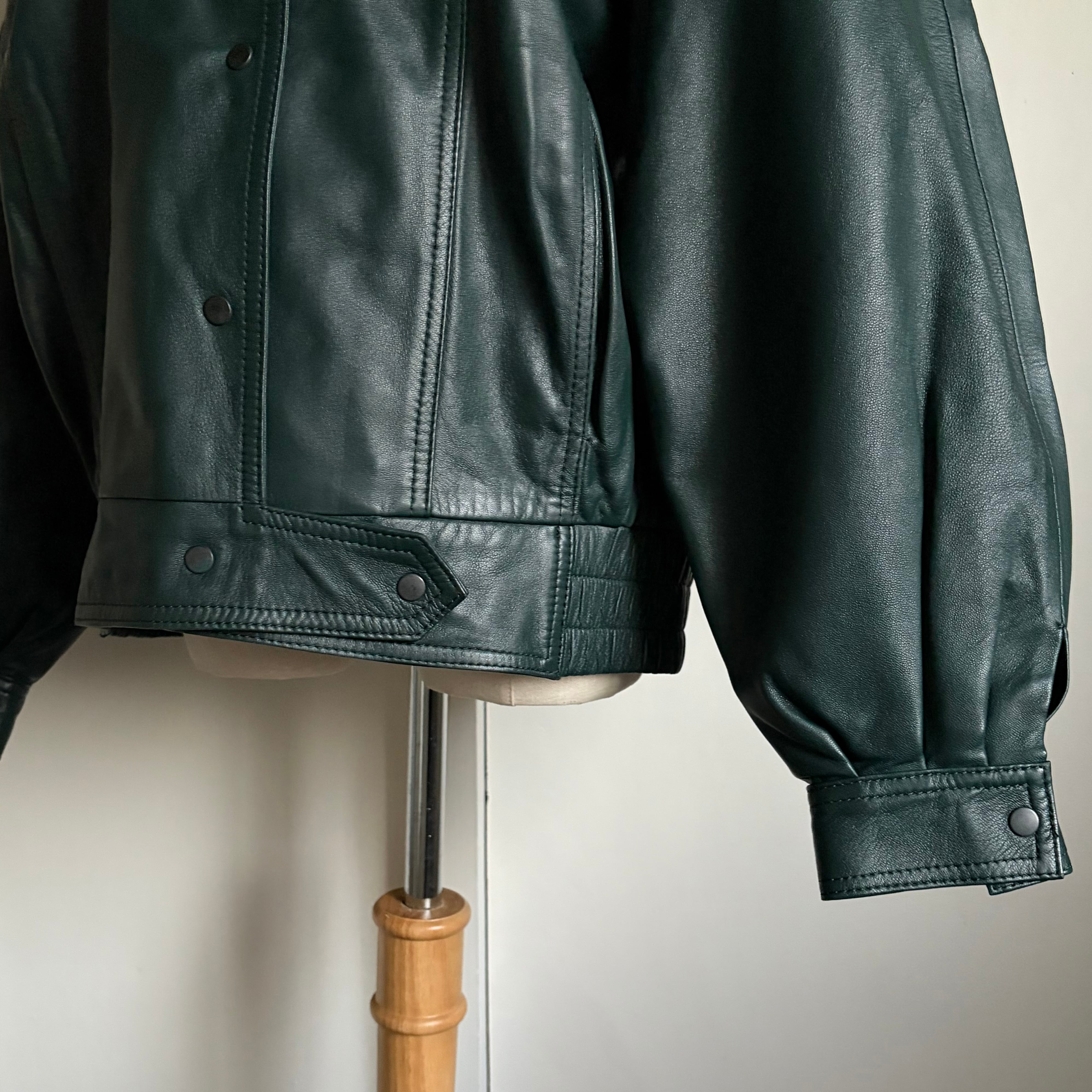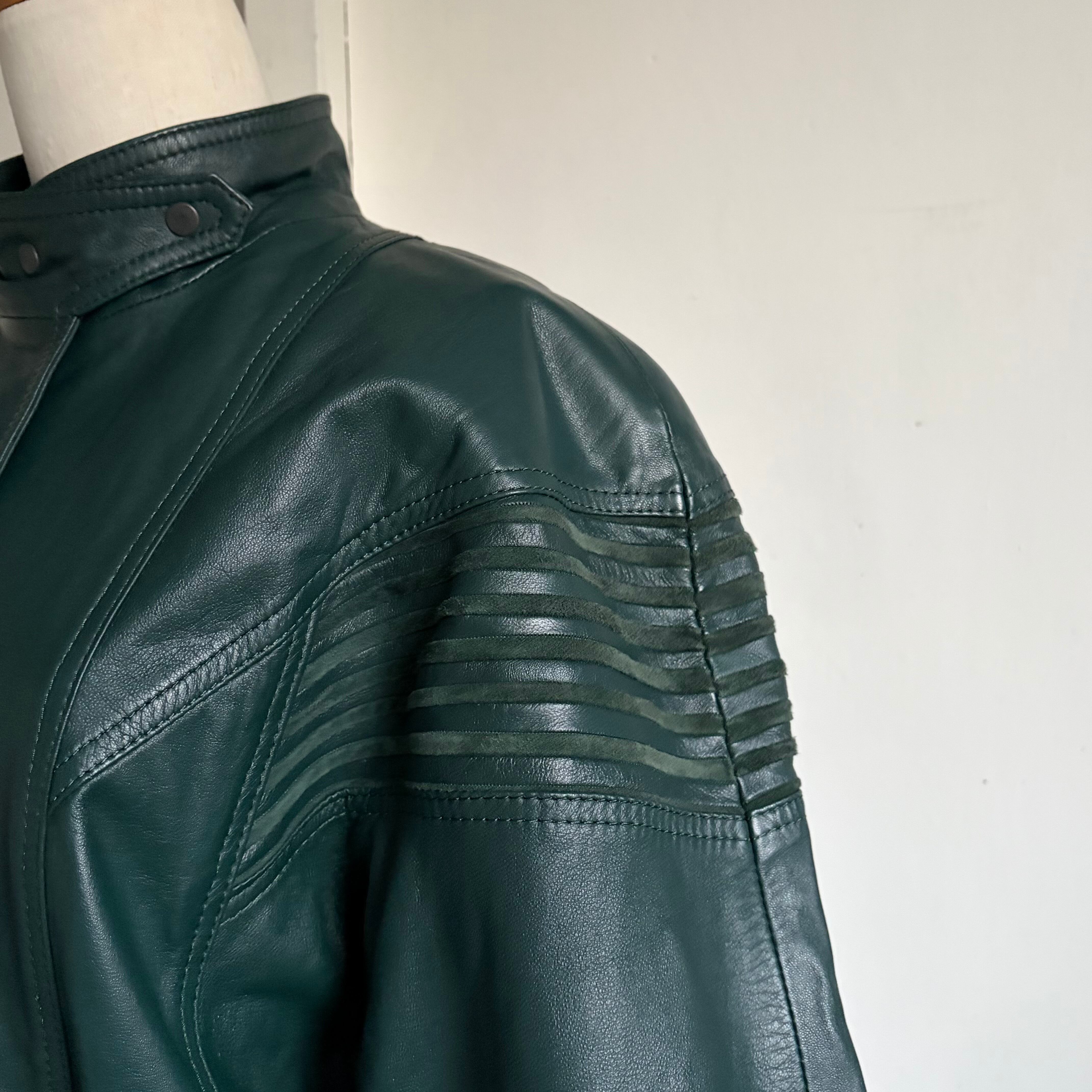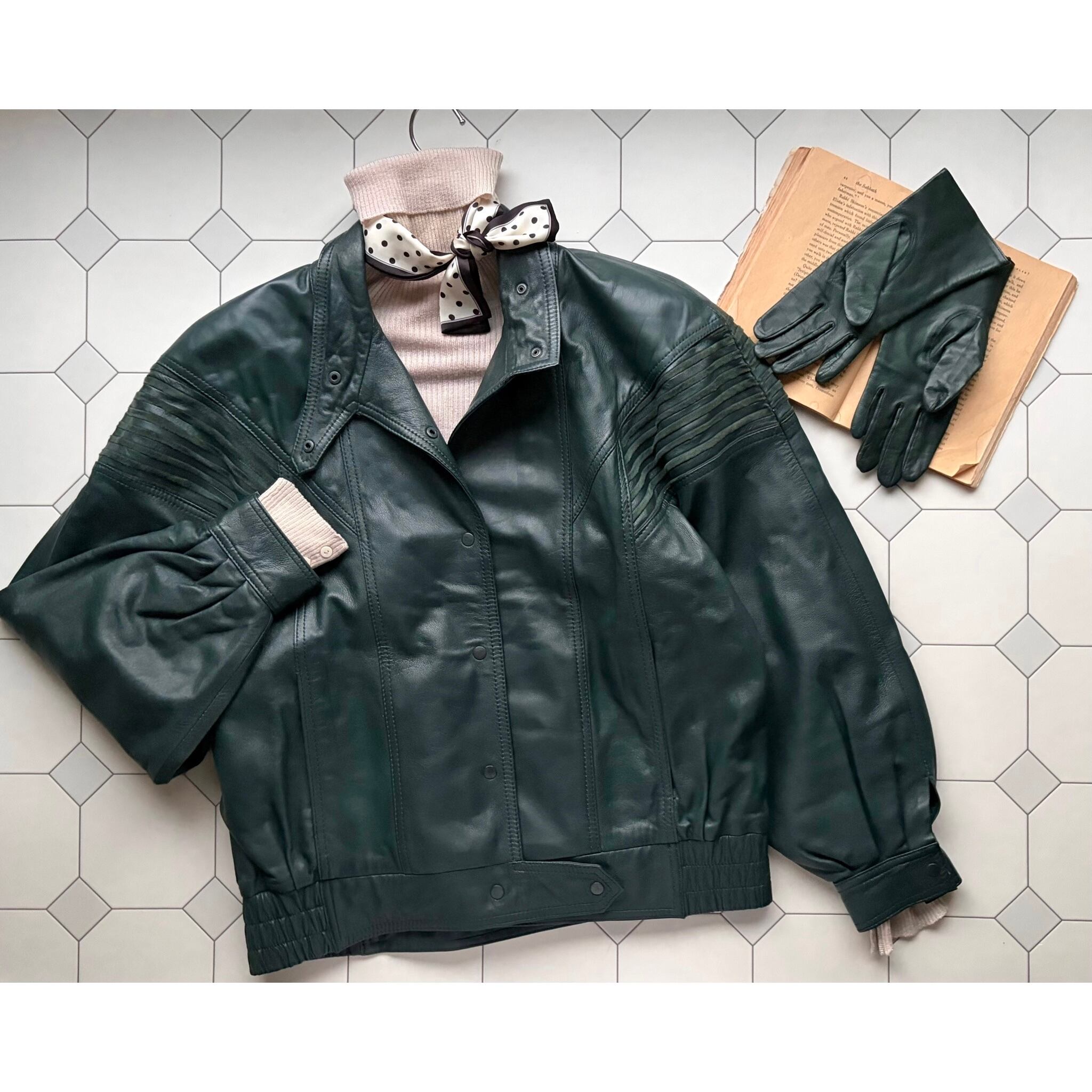 Dark Green Leather Blouson & Gloves〈レトロ古着 ダークグリーン レザーブルゾン&グローブ 手袋〉