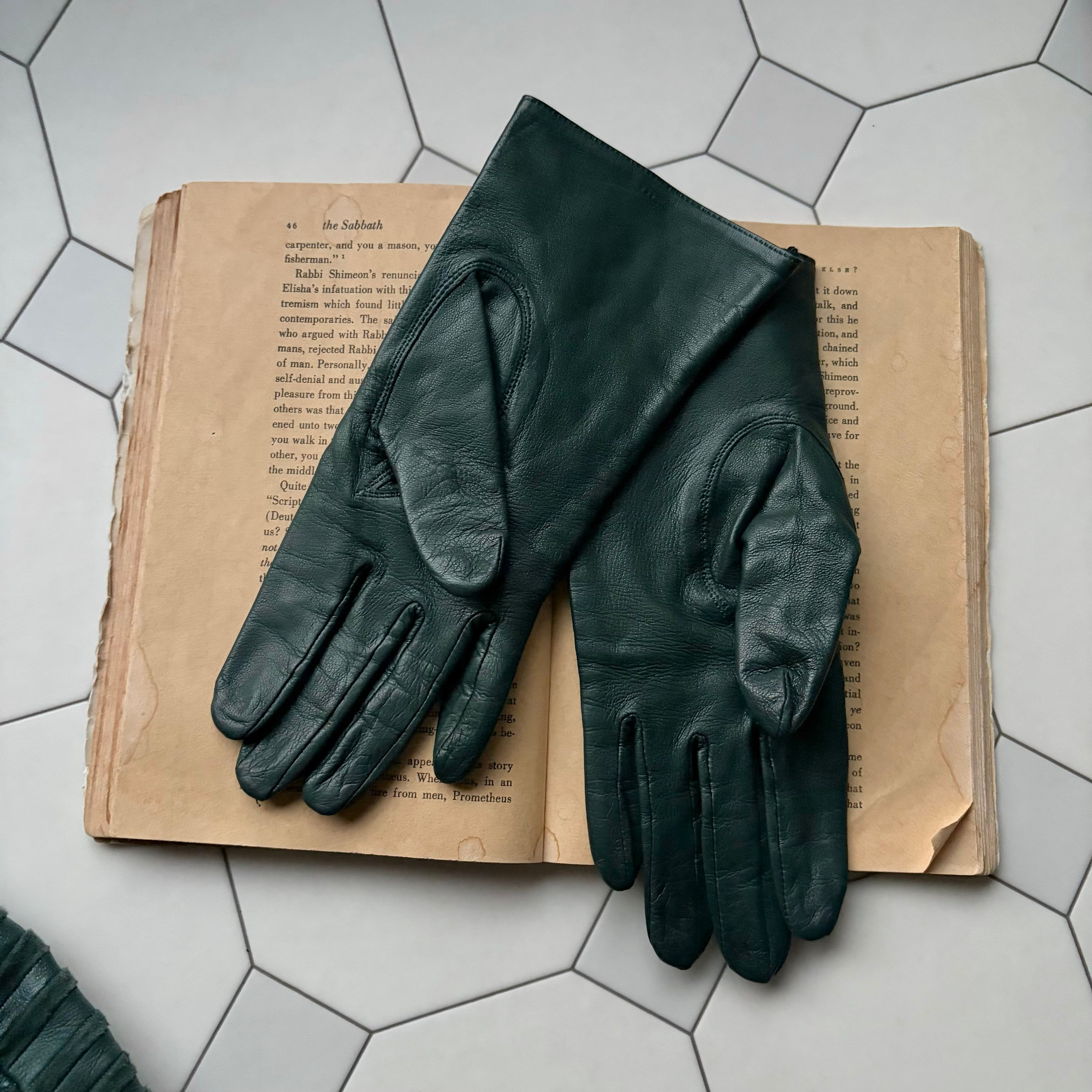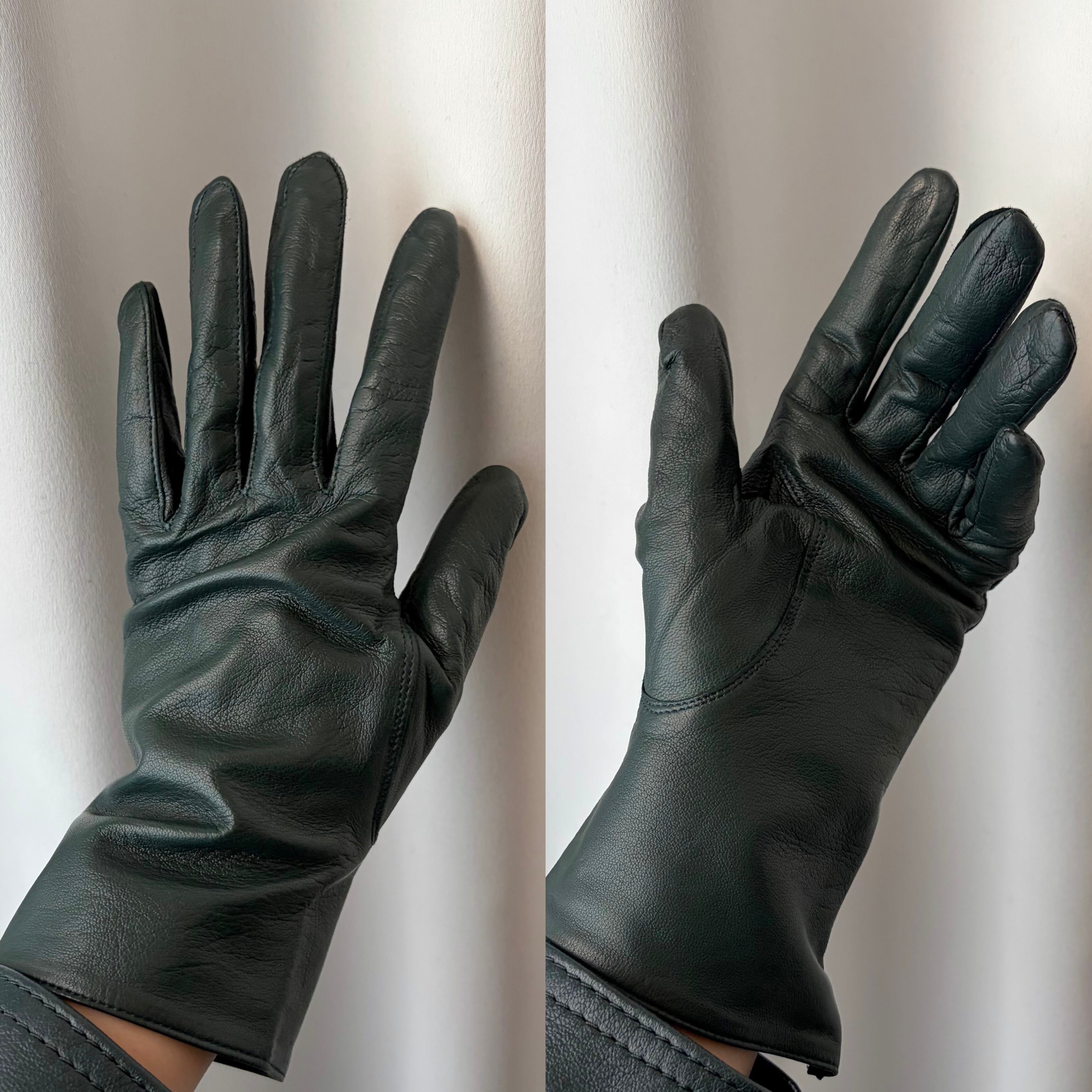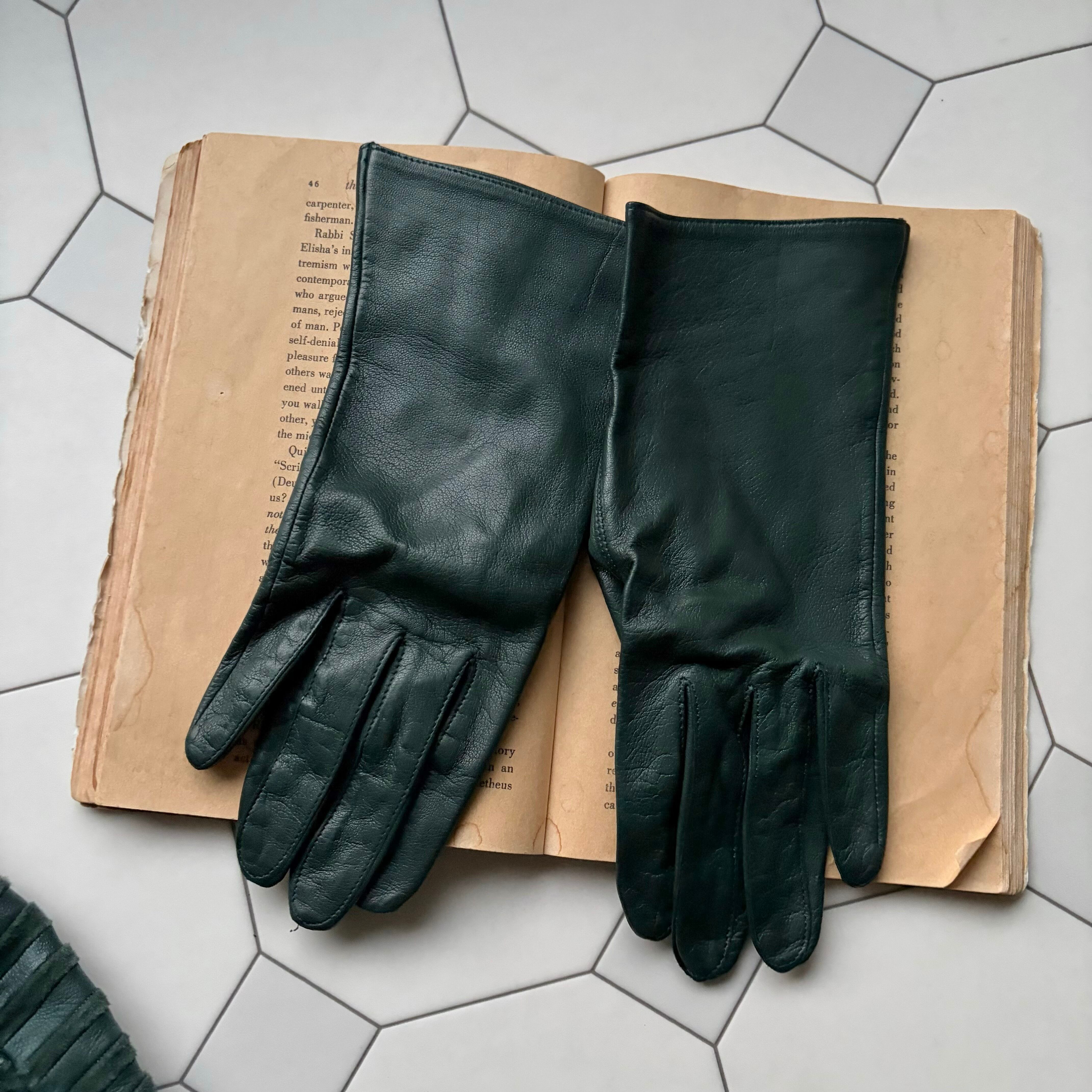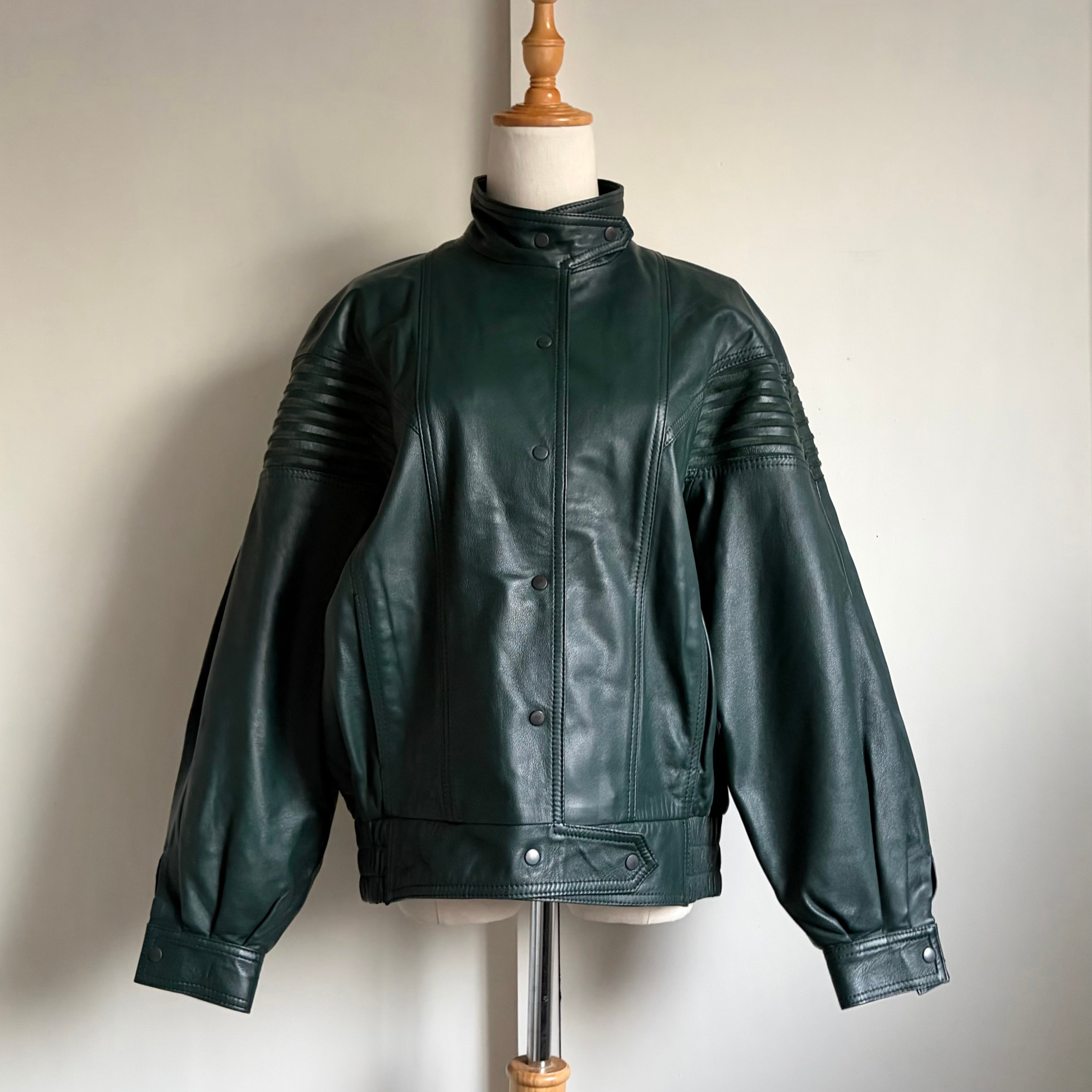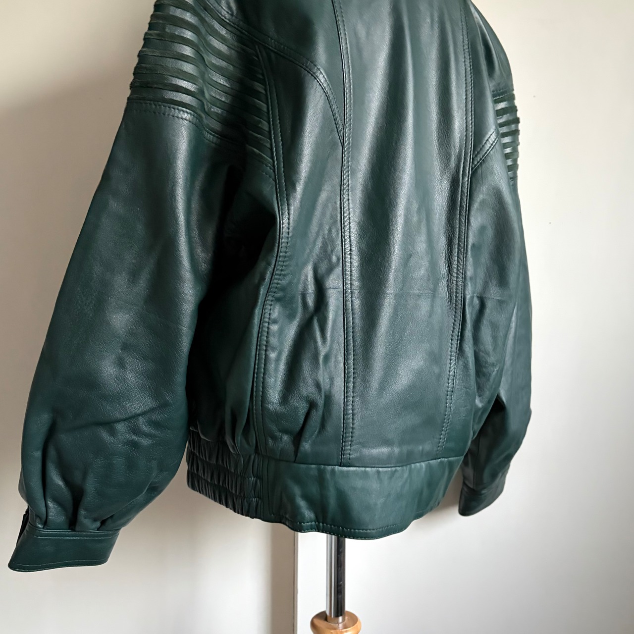 Dark Green Leather Blouson & Gloves〈レトロ古着 ダークグリーン レザーブルゾン&グローブ 手袋〉