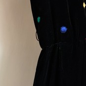 こちらは重厚なベルベット生地にカラフルなドットの刺繍があしらわれた一着