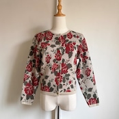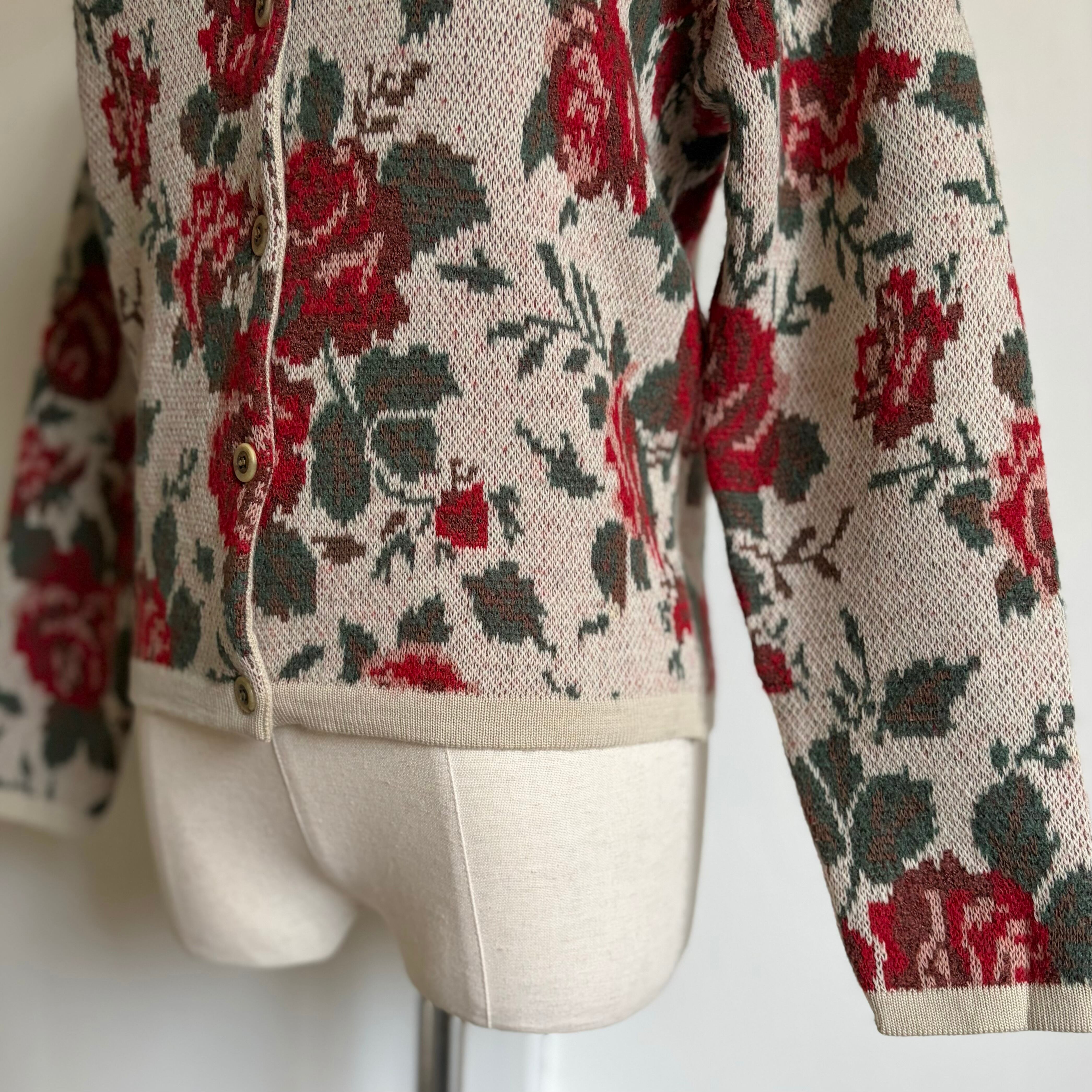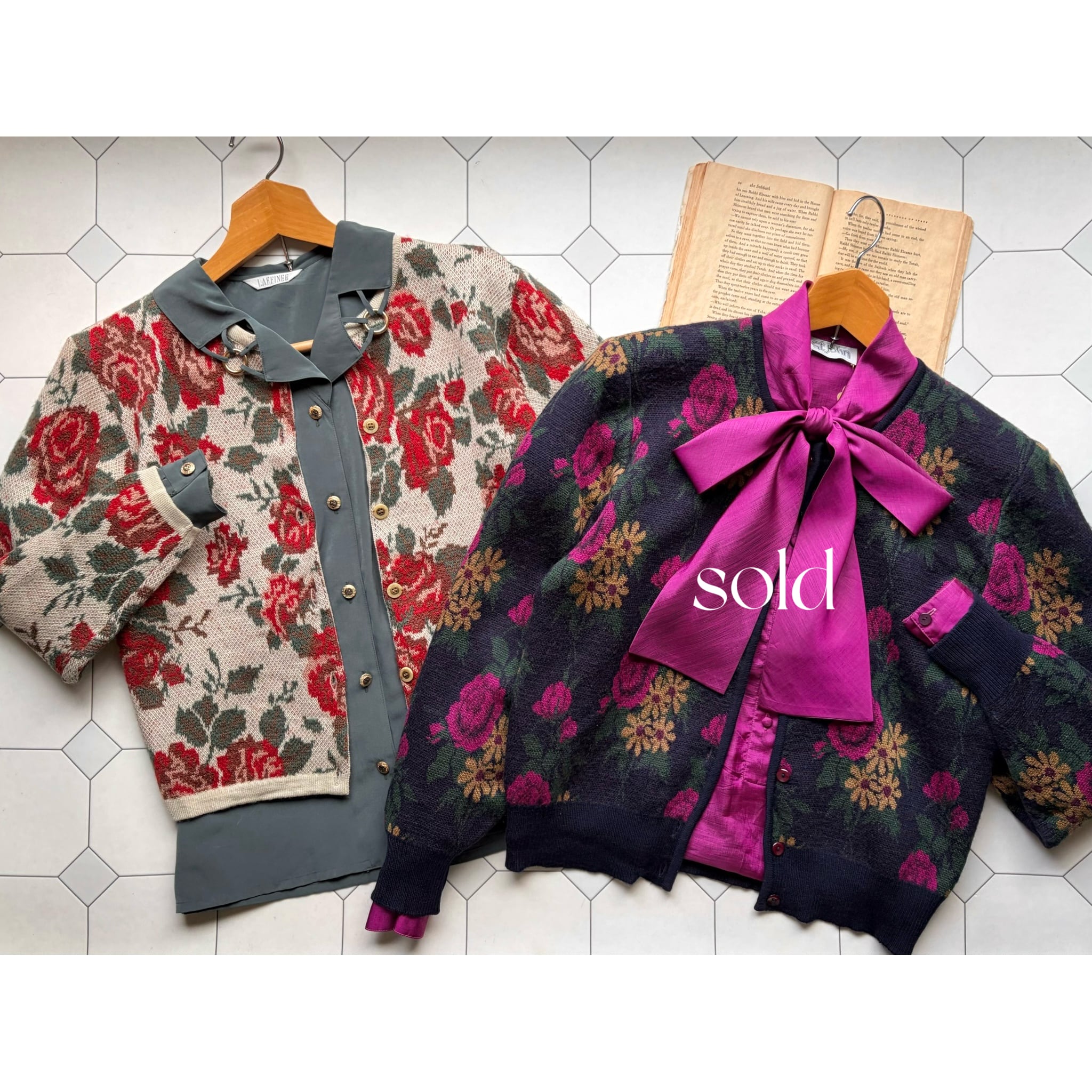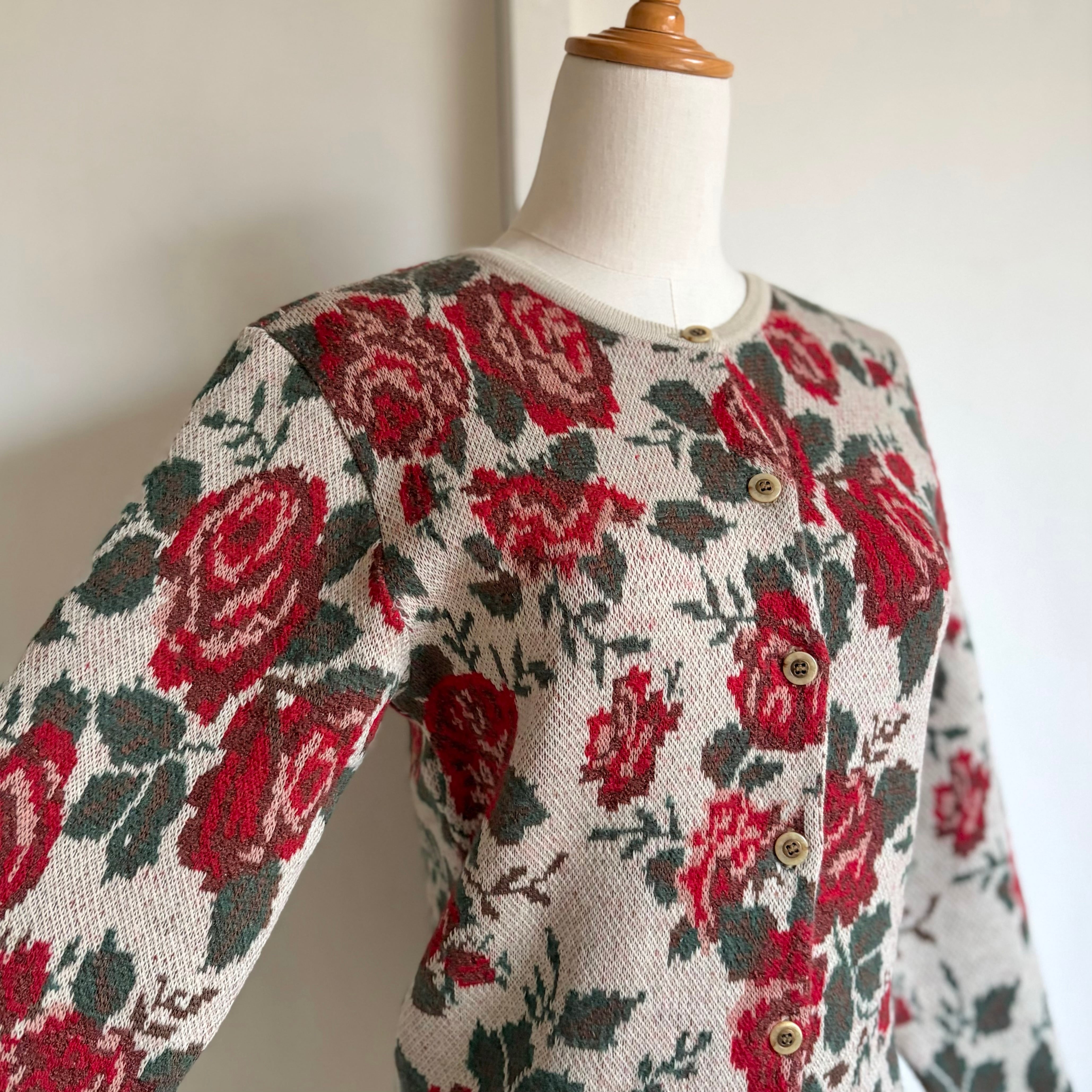 Rose Jacquard Knit Cardigan〈レトロ古着 薔薇柄 ジャガード ニット カーディガン ジャパンヴィンテージ〉