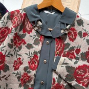 ジャガード織であしらわれた大胆な薔薇柄が目を惹くニットカーディガン