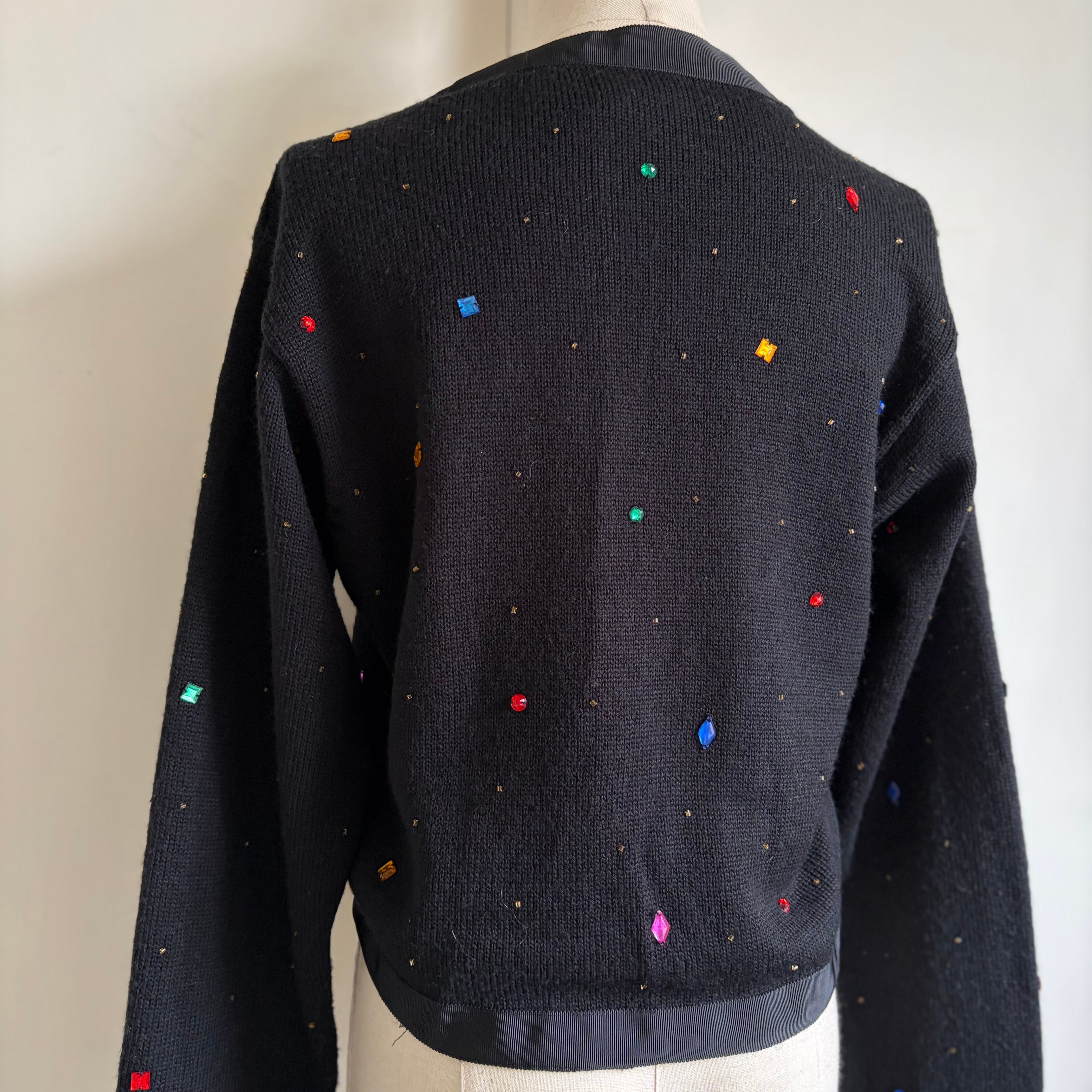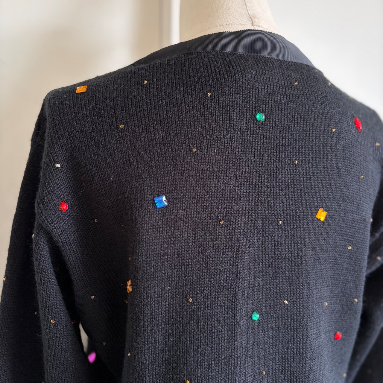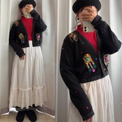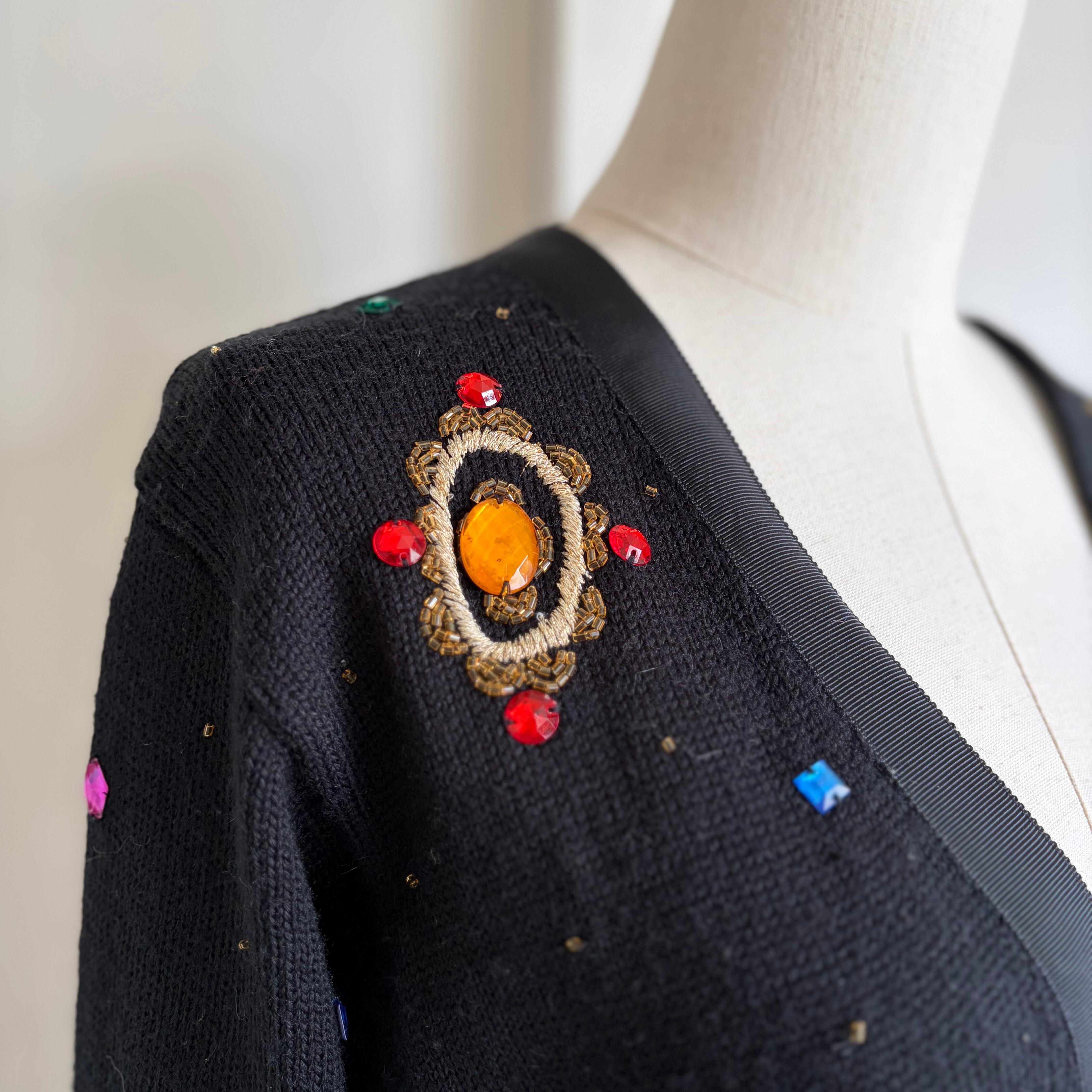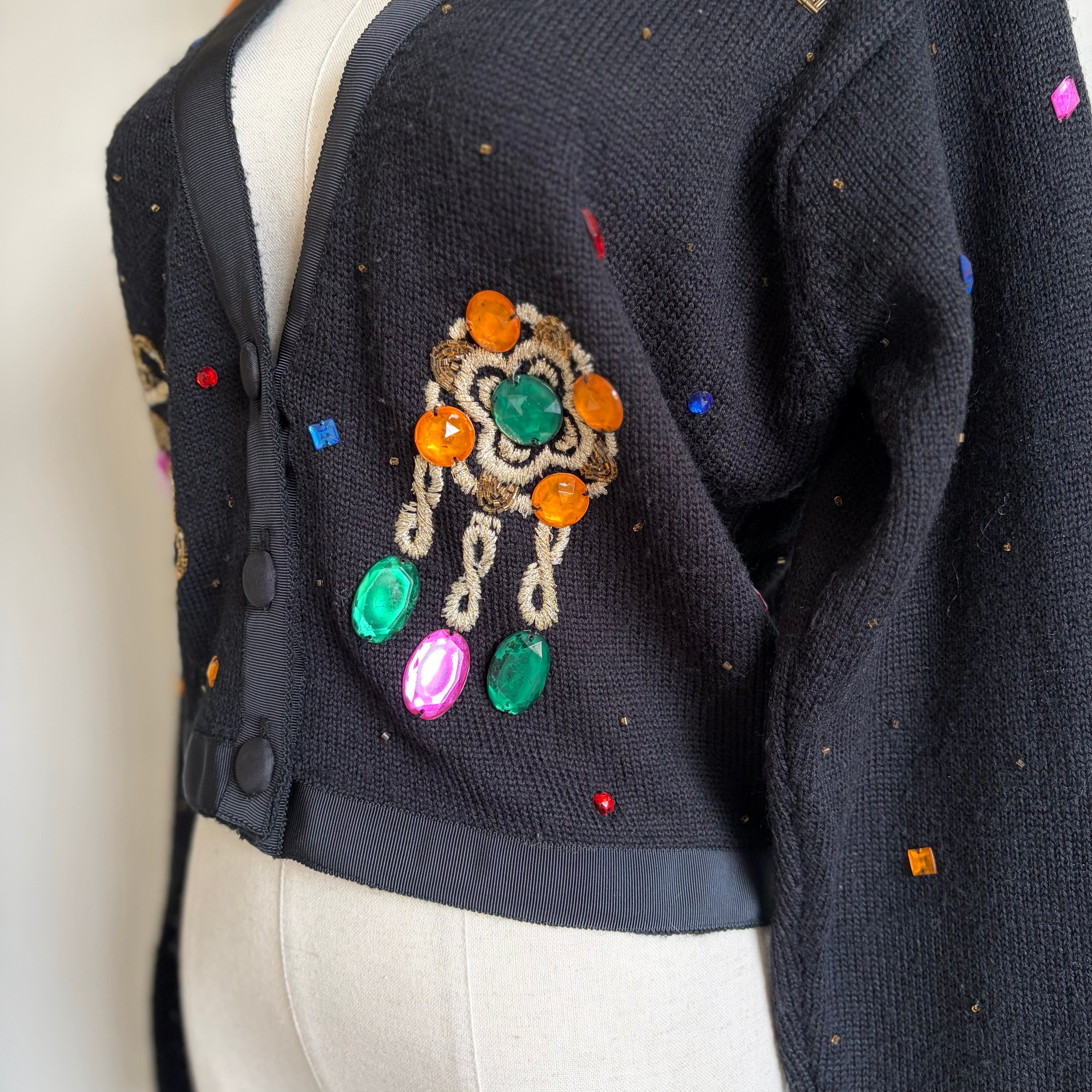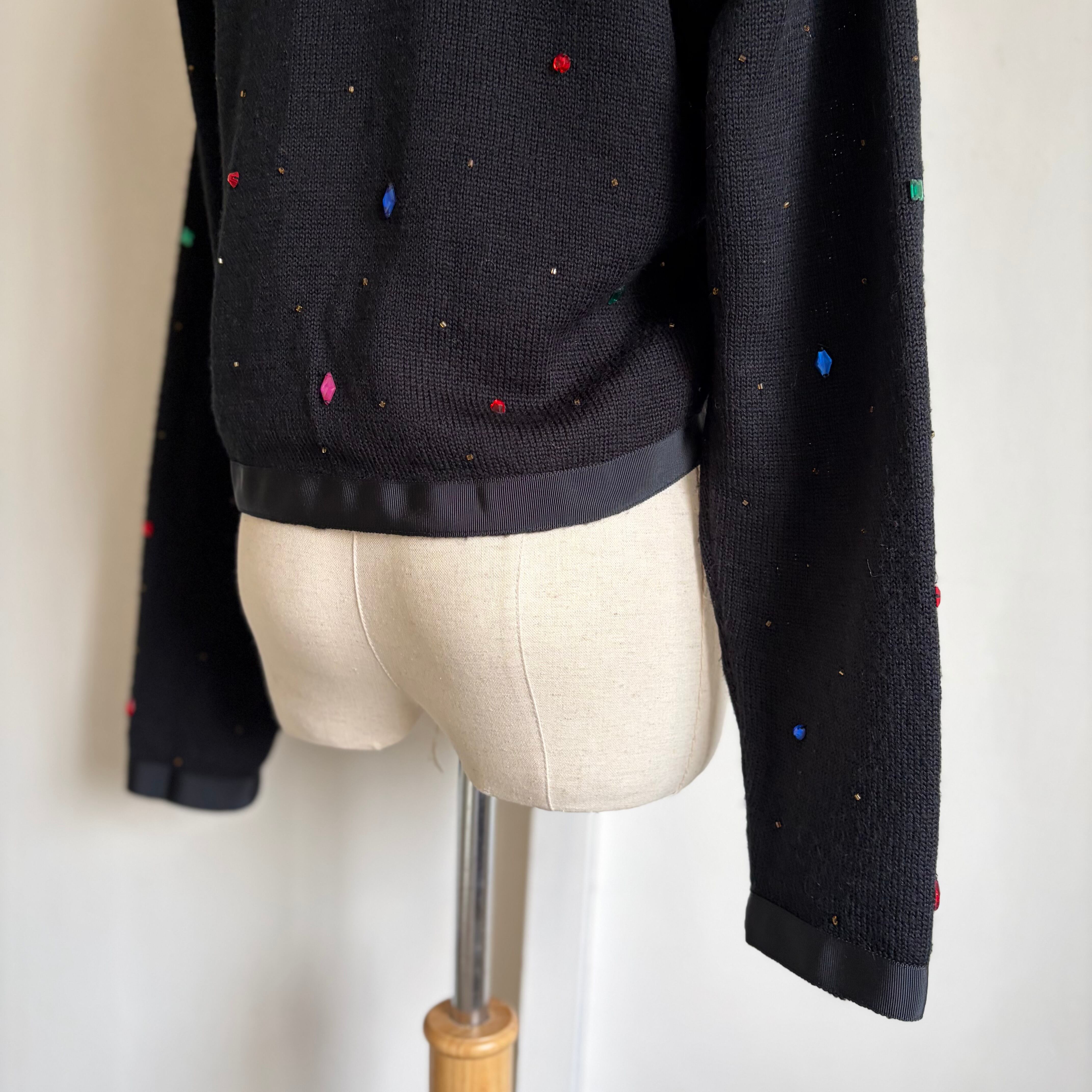 Bijou-Embellished Short Knit Cardigan 〈レトロ古着 ビジュー装飾 短丈 ニットカーディガン 香港製〉