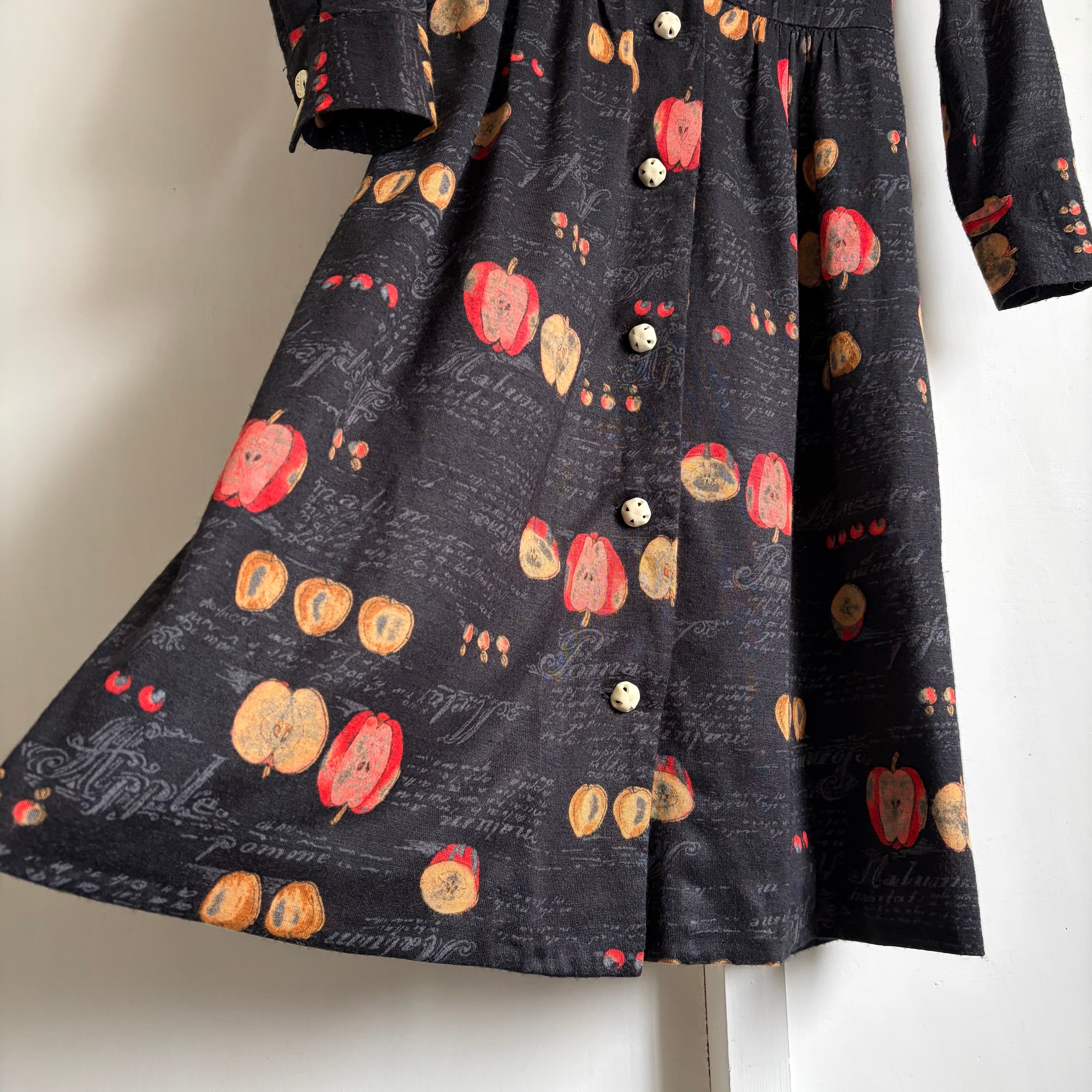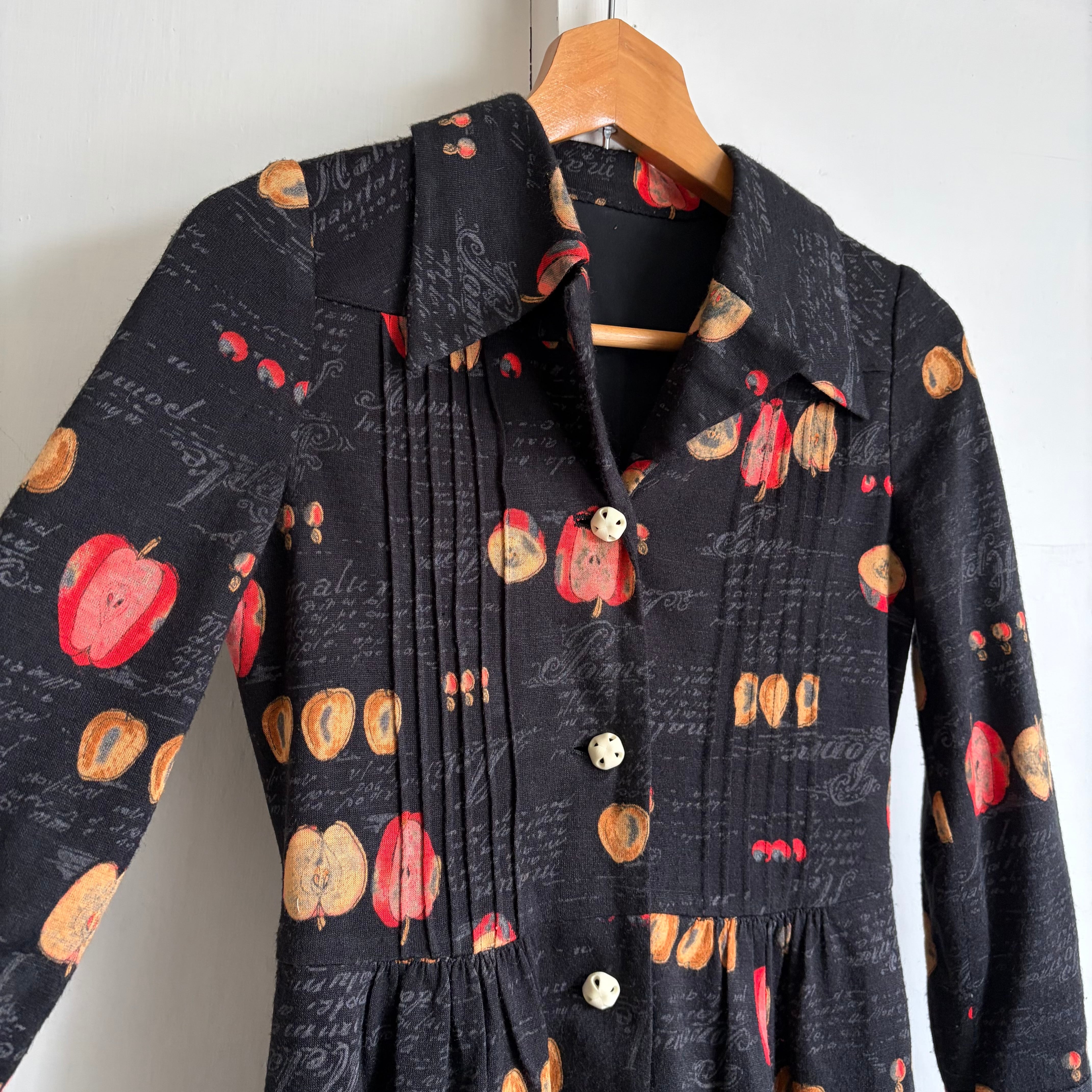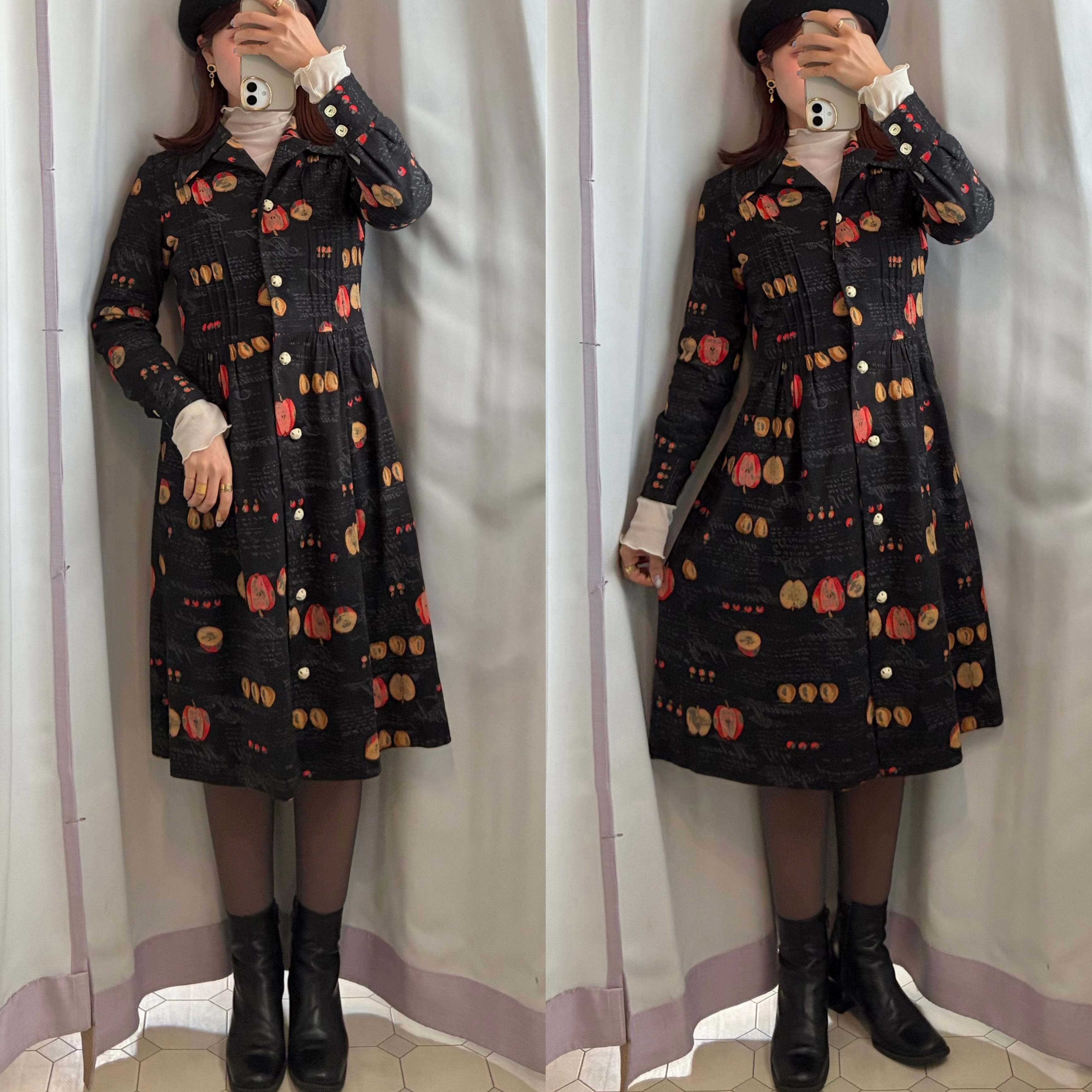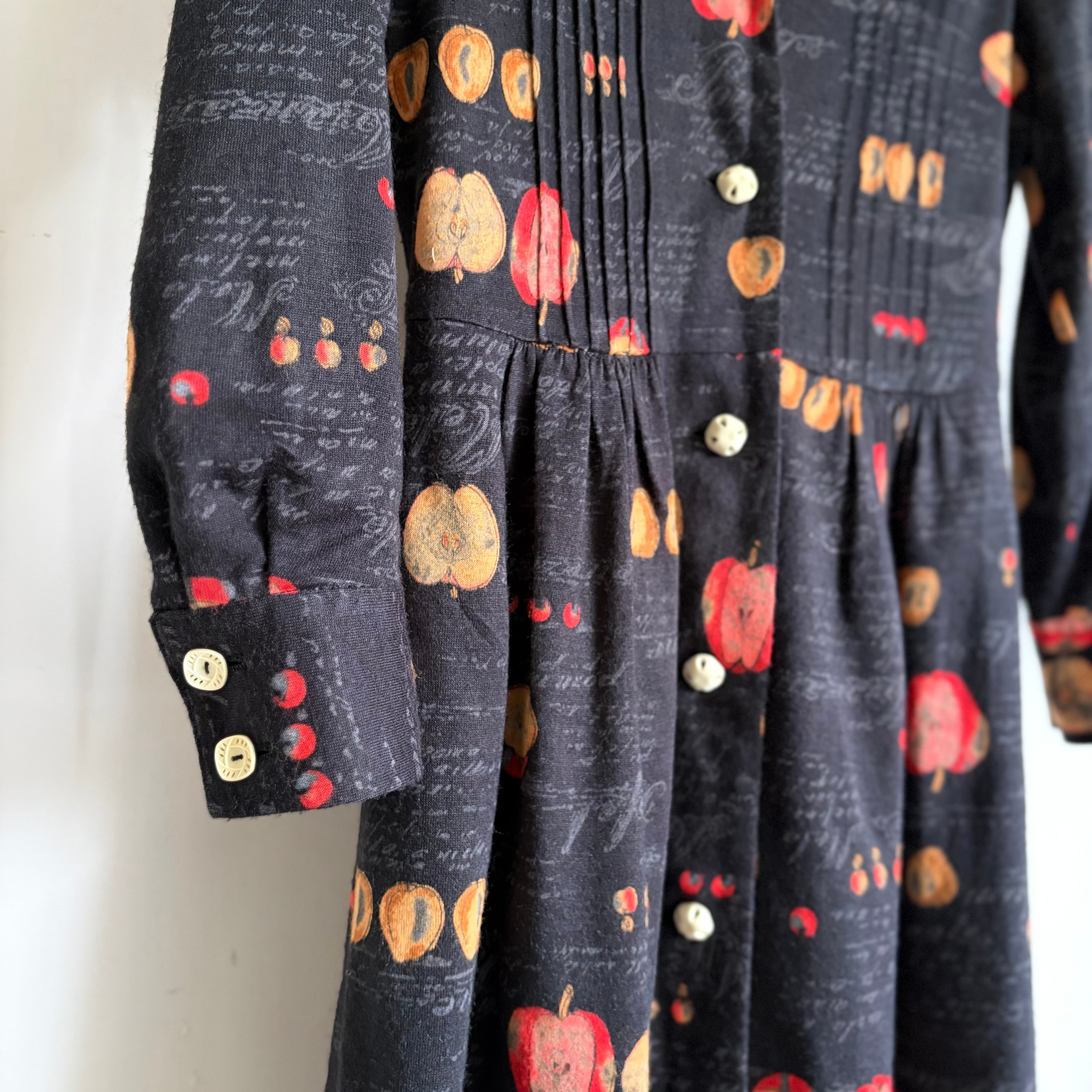 Apple Motif Open-Collar Dress〈レトロ古着 アップル柄 開襟ワンピース 林檎 ジャパンヴィンテージ Japan Vintage〉