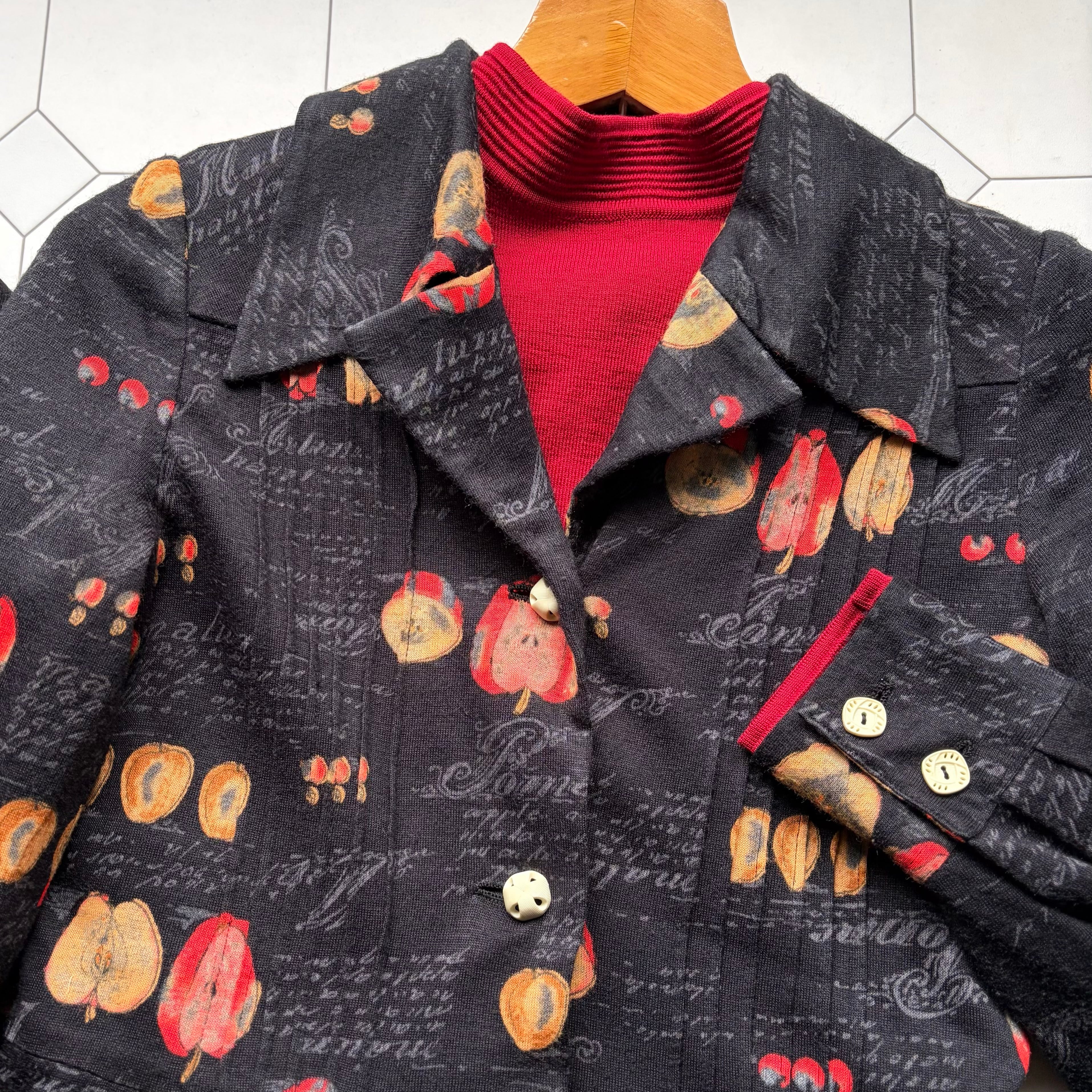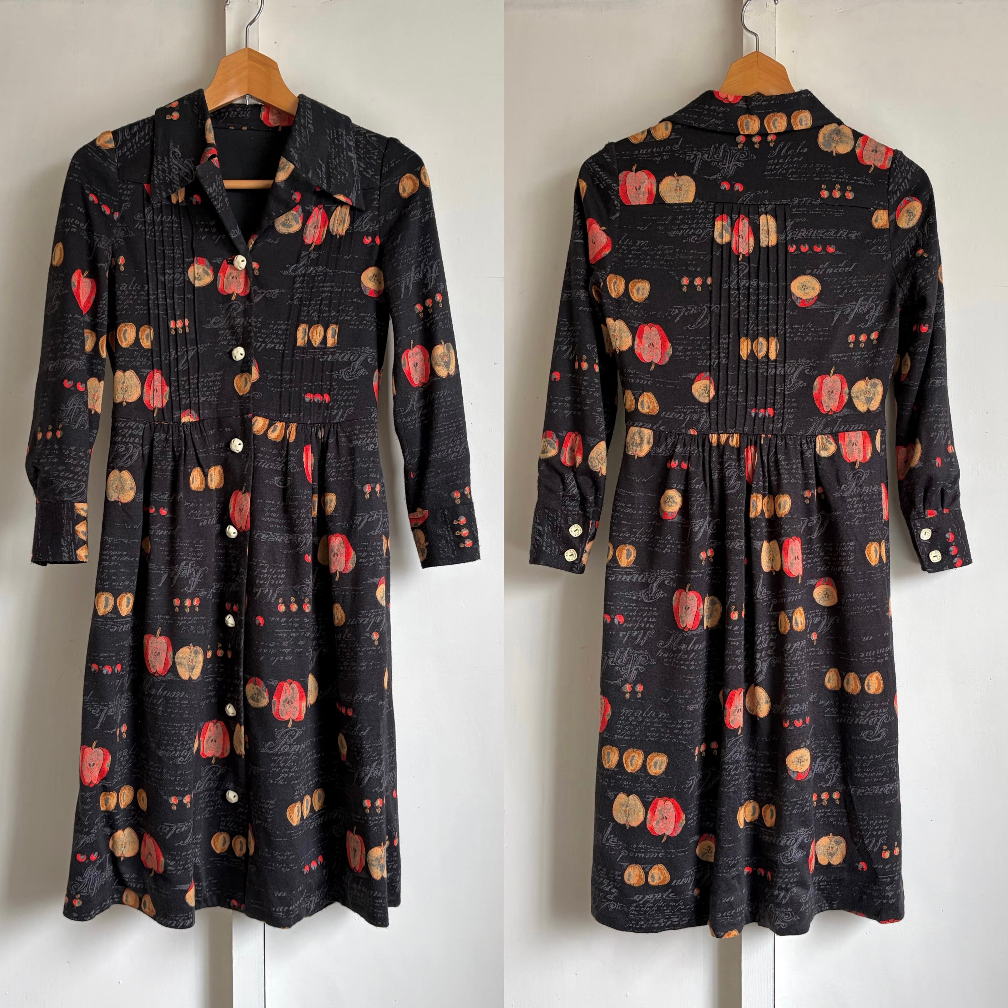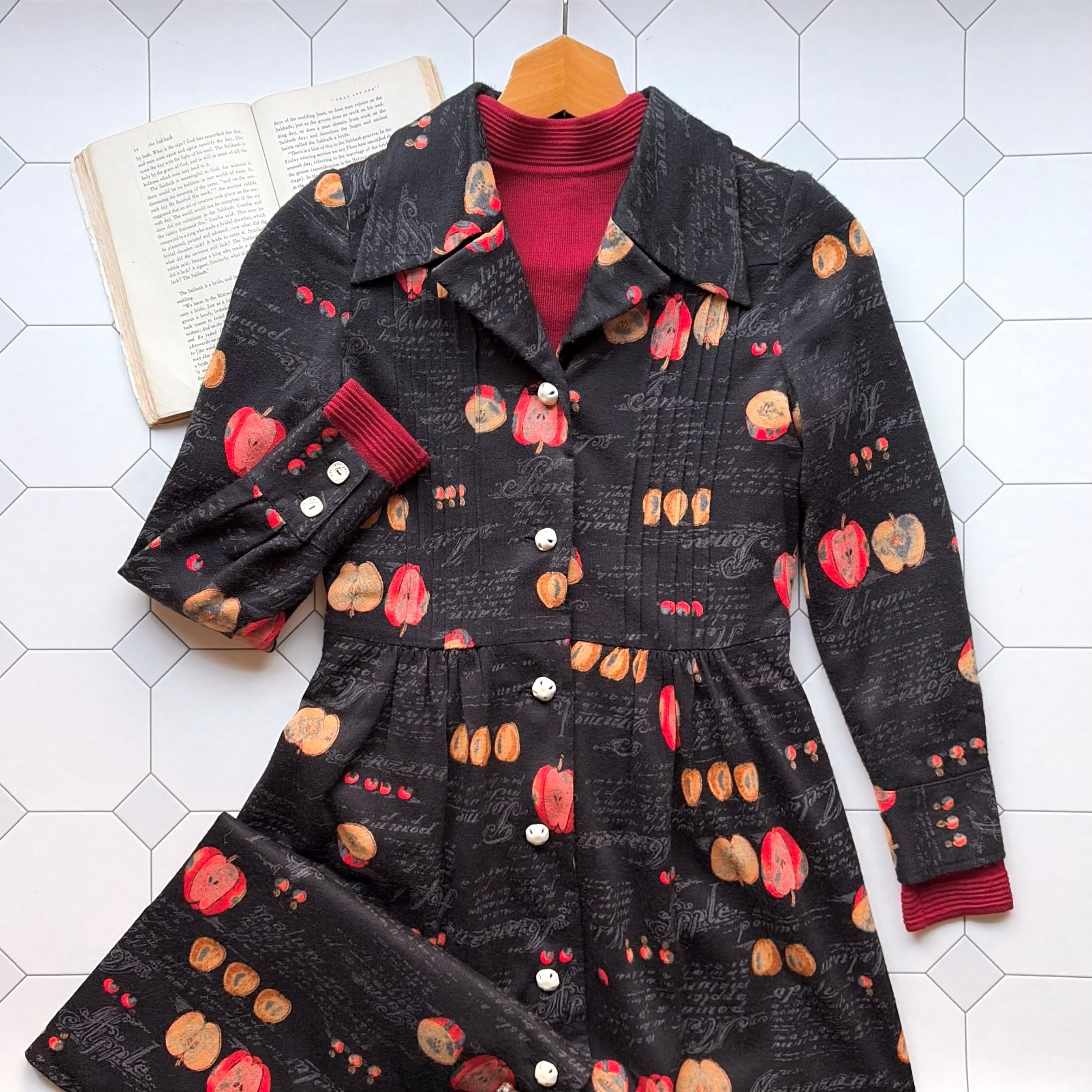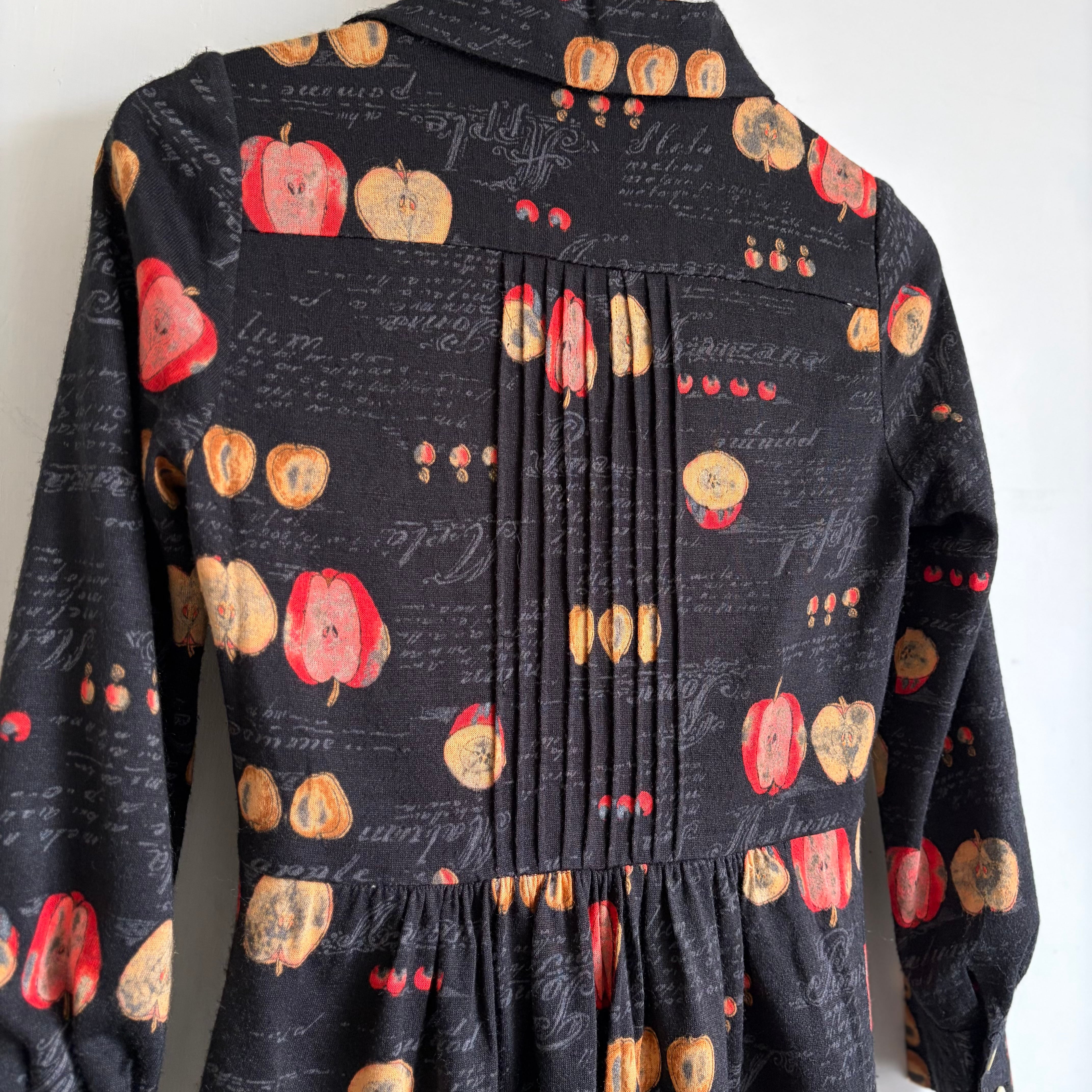 Apple Motif Open-Collar Dress〈レトロ古着 アップル柄 開襟ワンピース 林檎 ジャパンヴィンテージ Japan Vintage〉