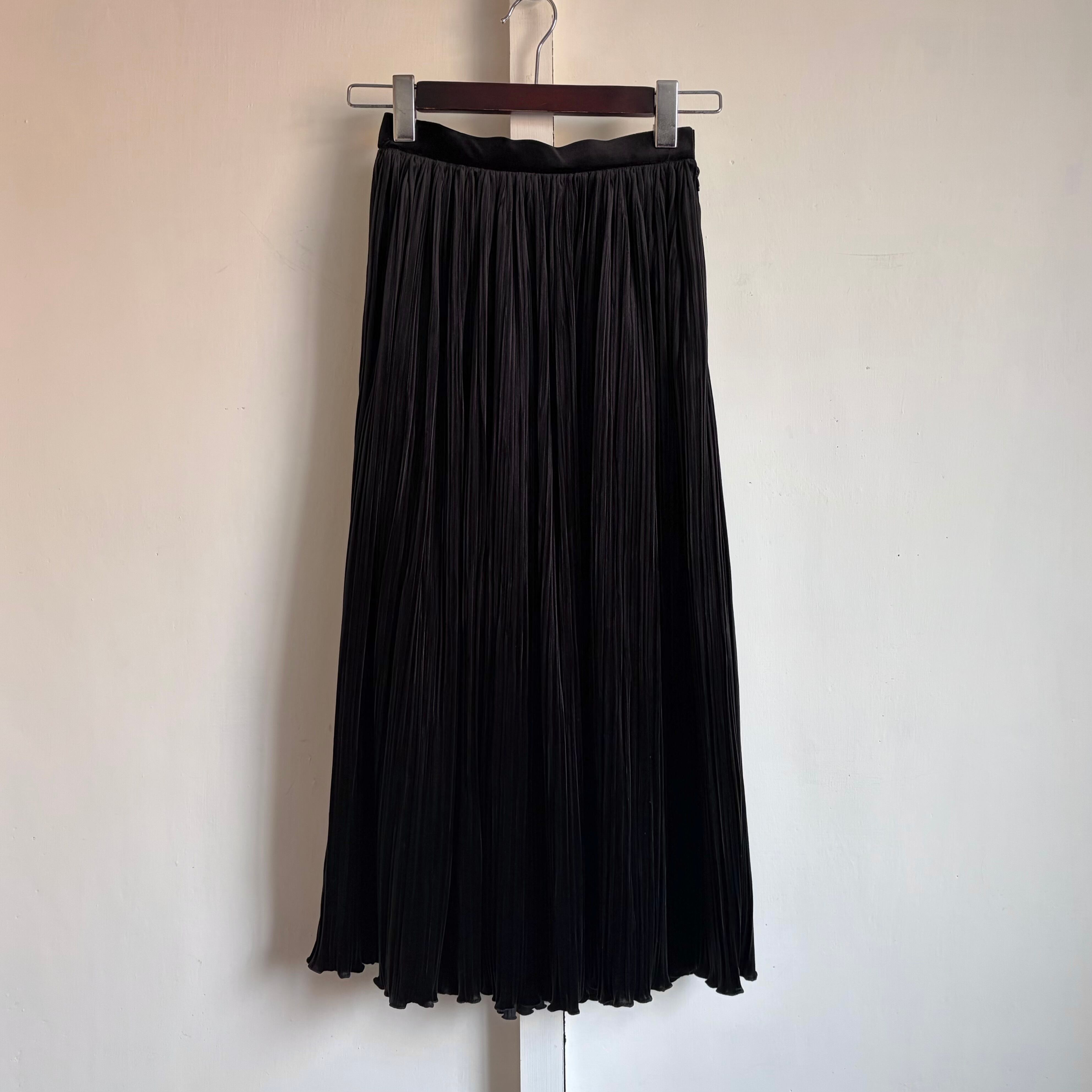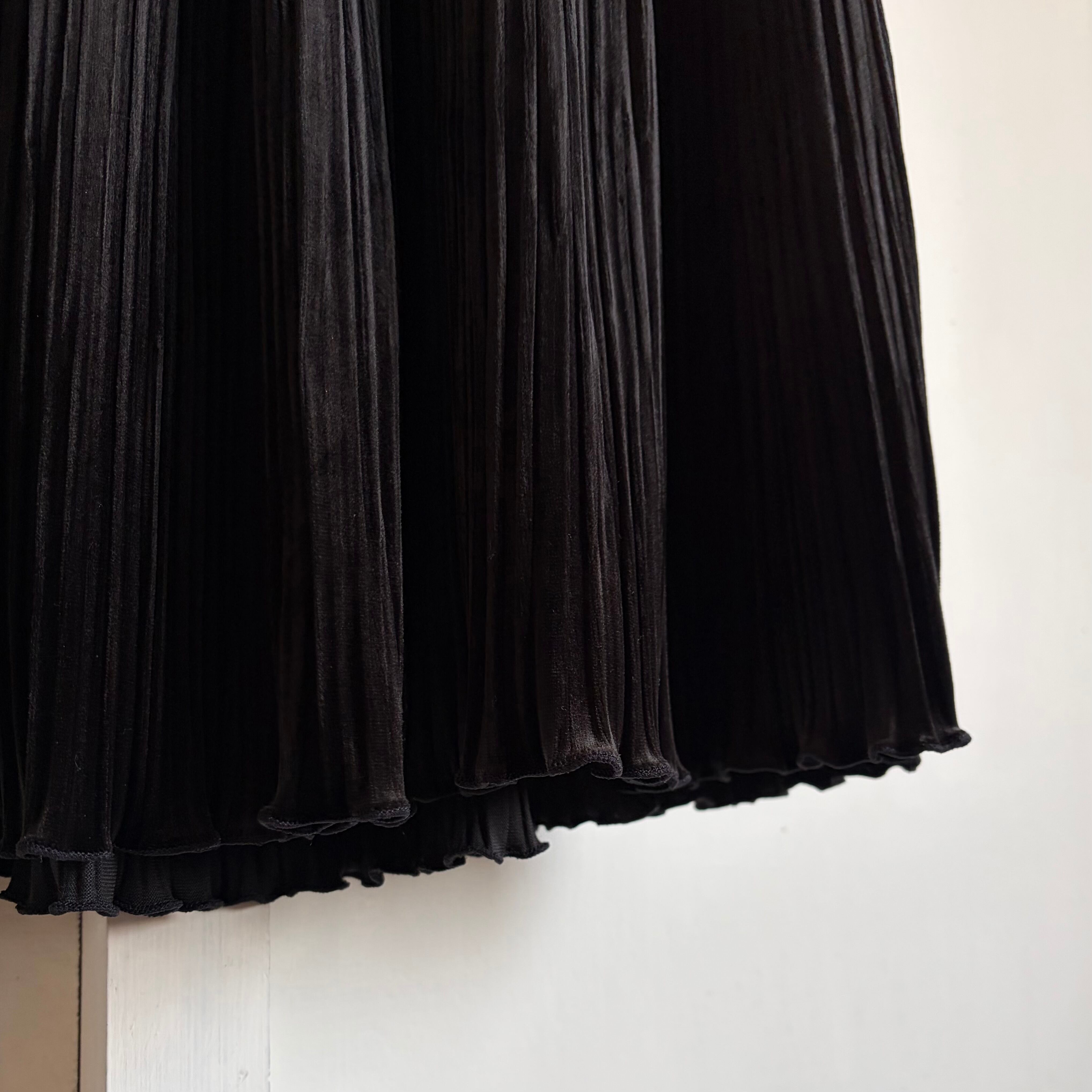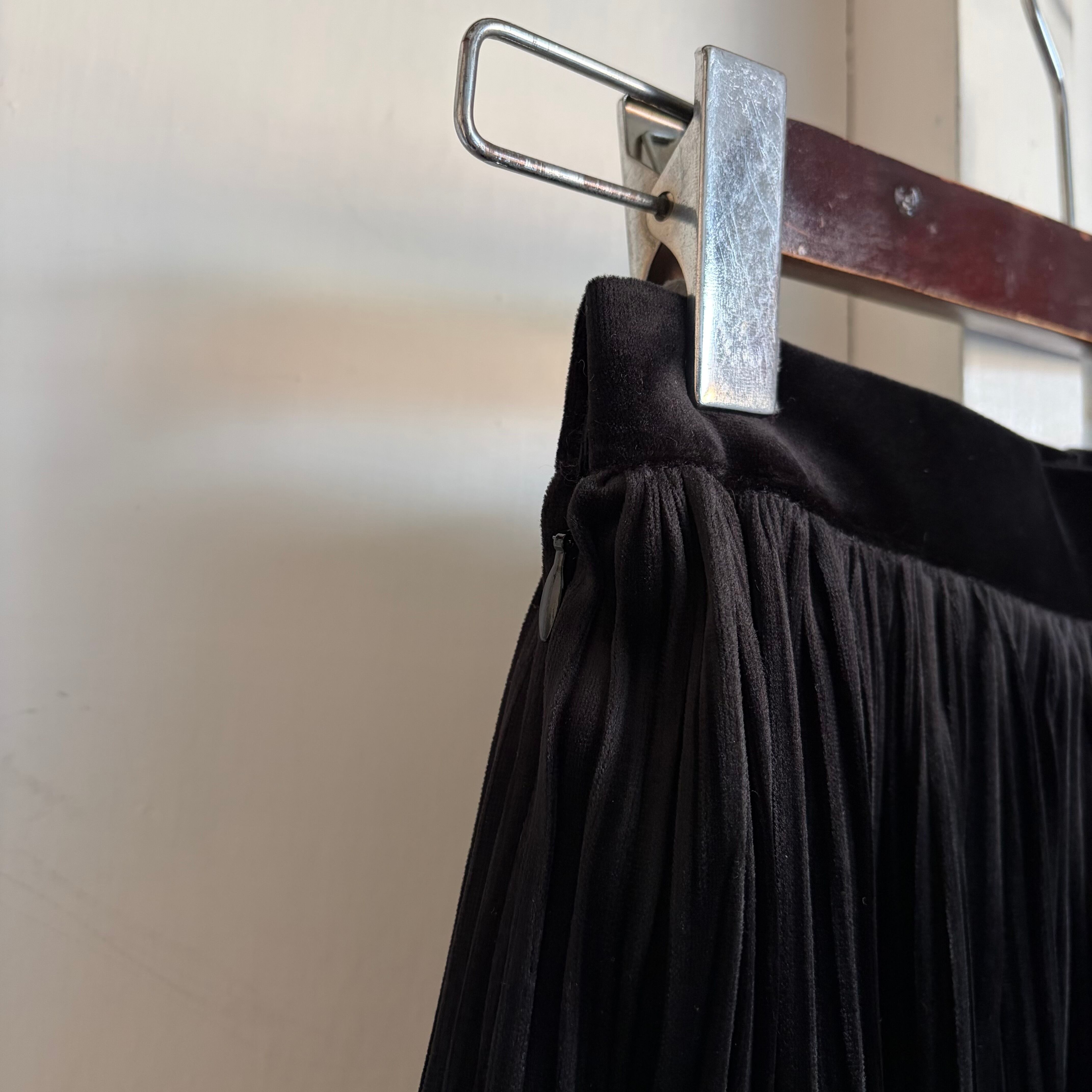 Velour Pleated Skirt 〈レトロ古着 ベロア プリーツスカート 黒 日本製 ジャパンヴィンテージ Japan Vintage〉