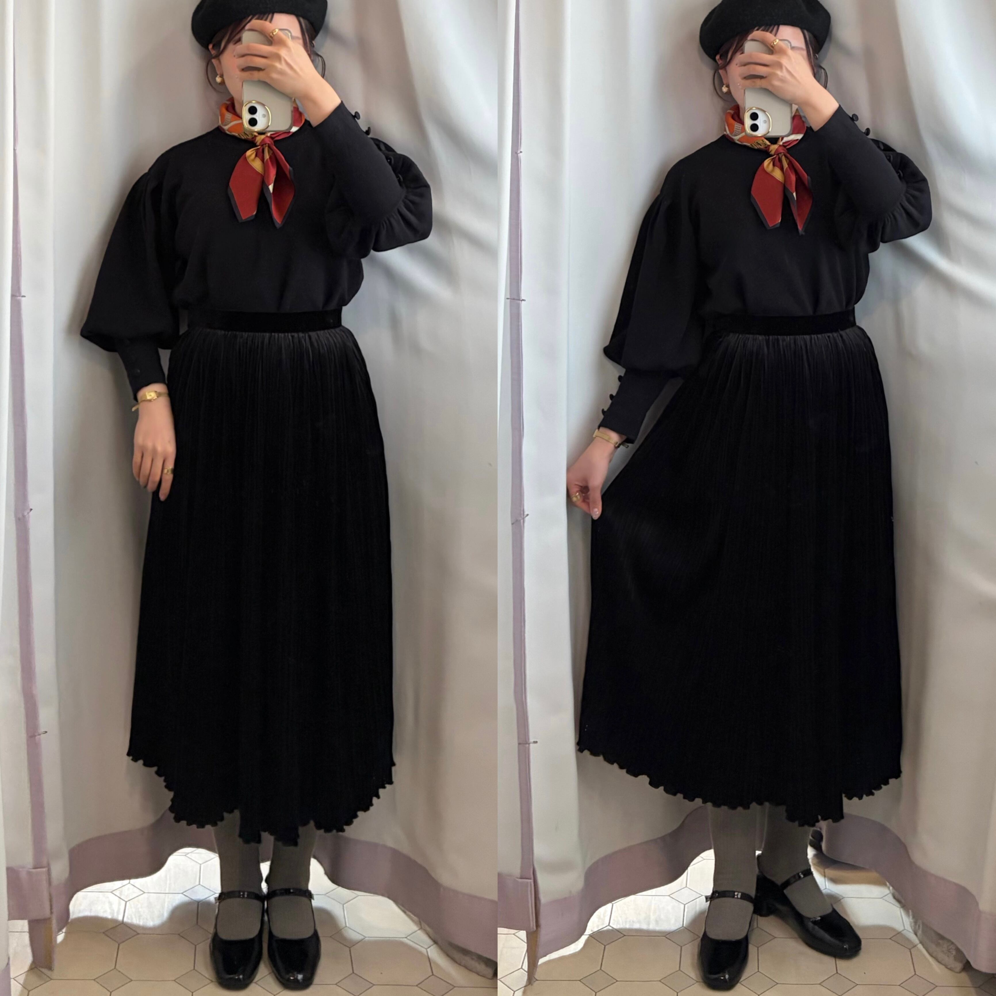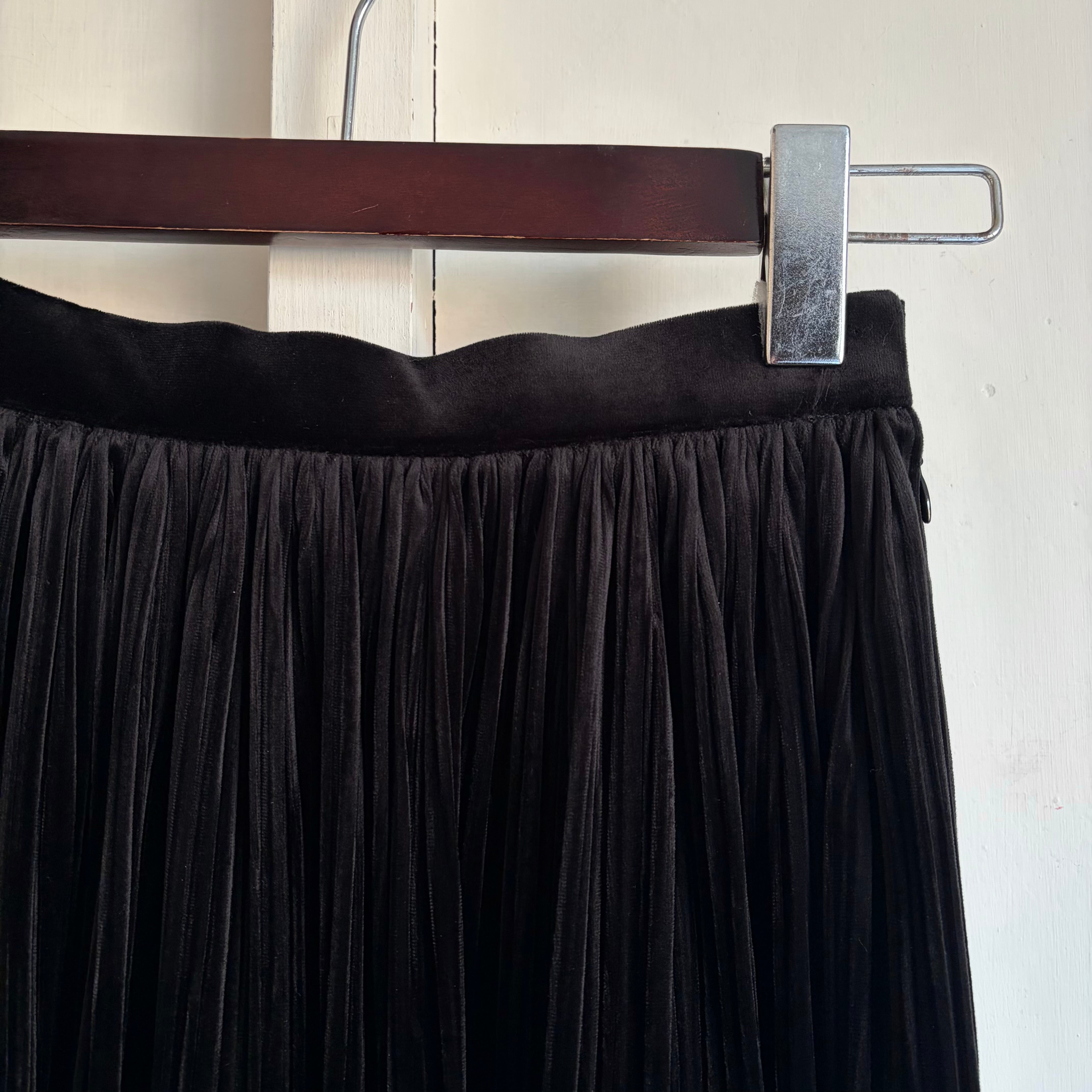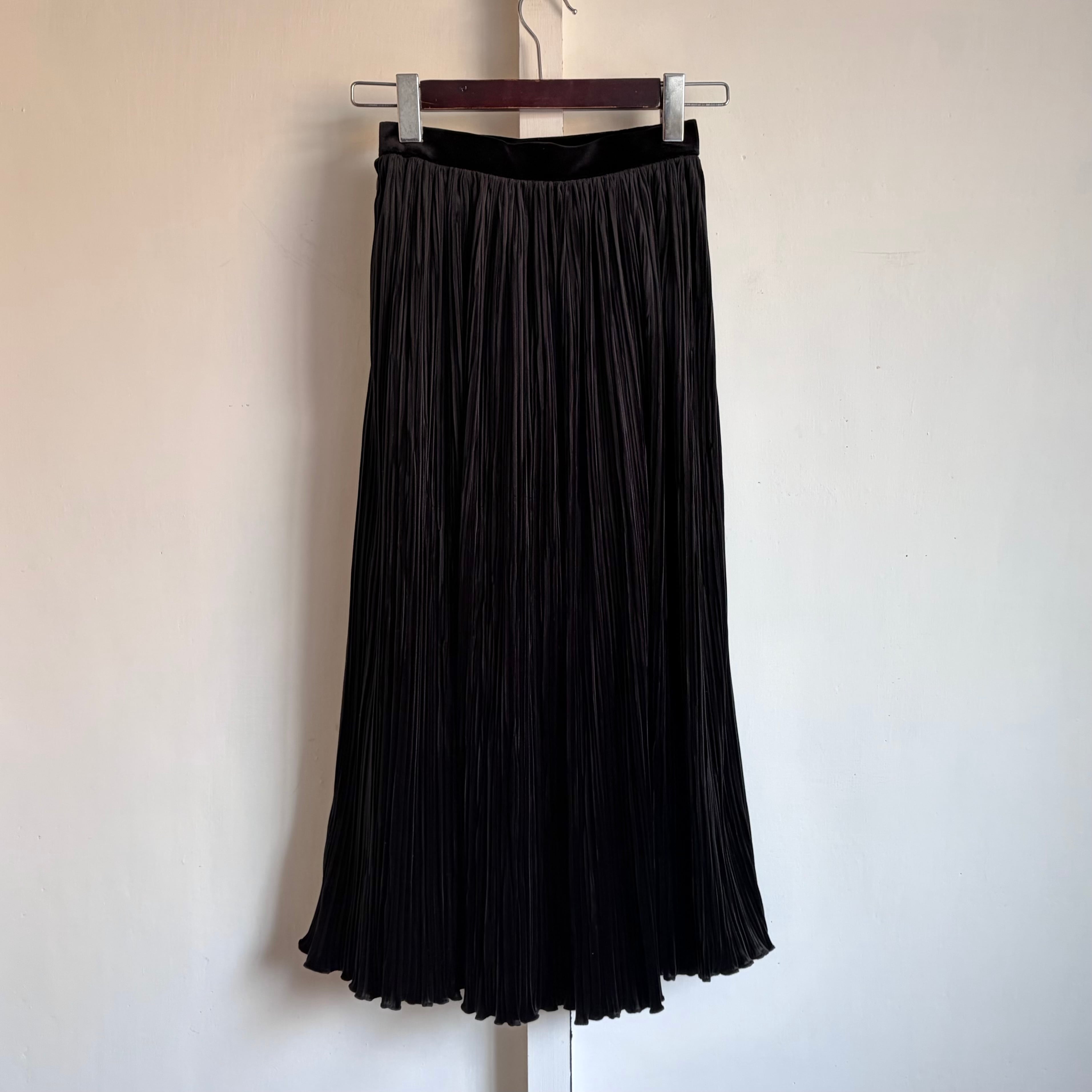 Velour Pleated Skirt 〈レトロ古着 ベロア プリーツスカート 黒 日本製 ジャパンヴィンテージ Japan Vintage〉