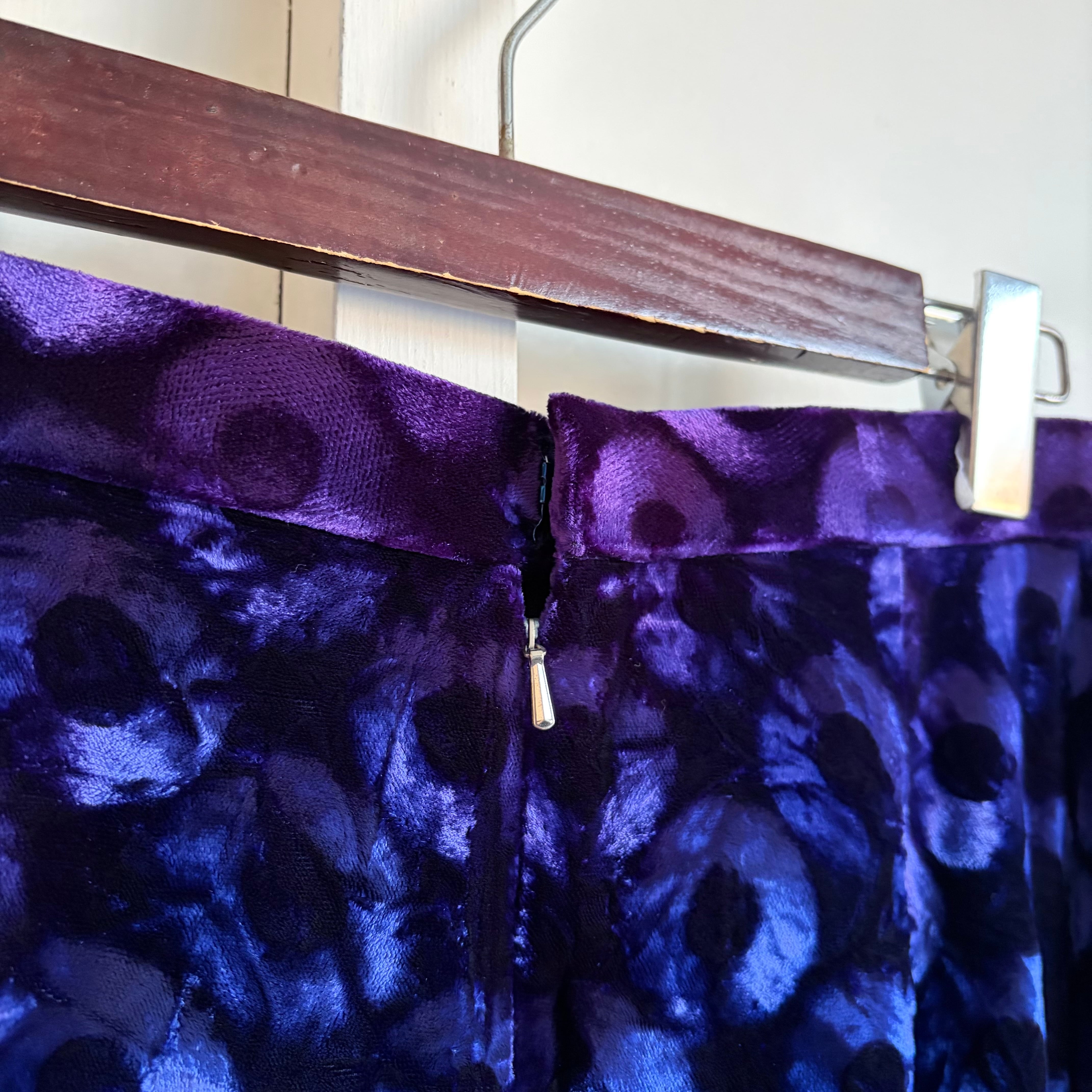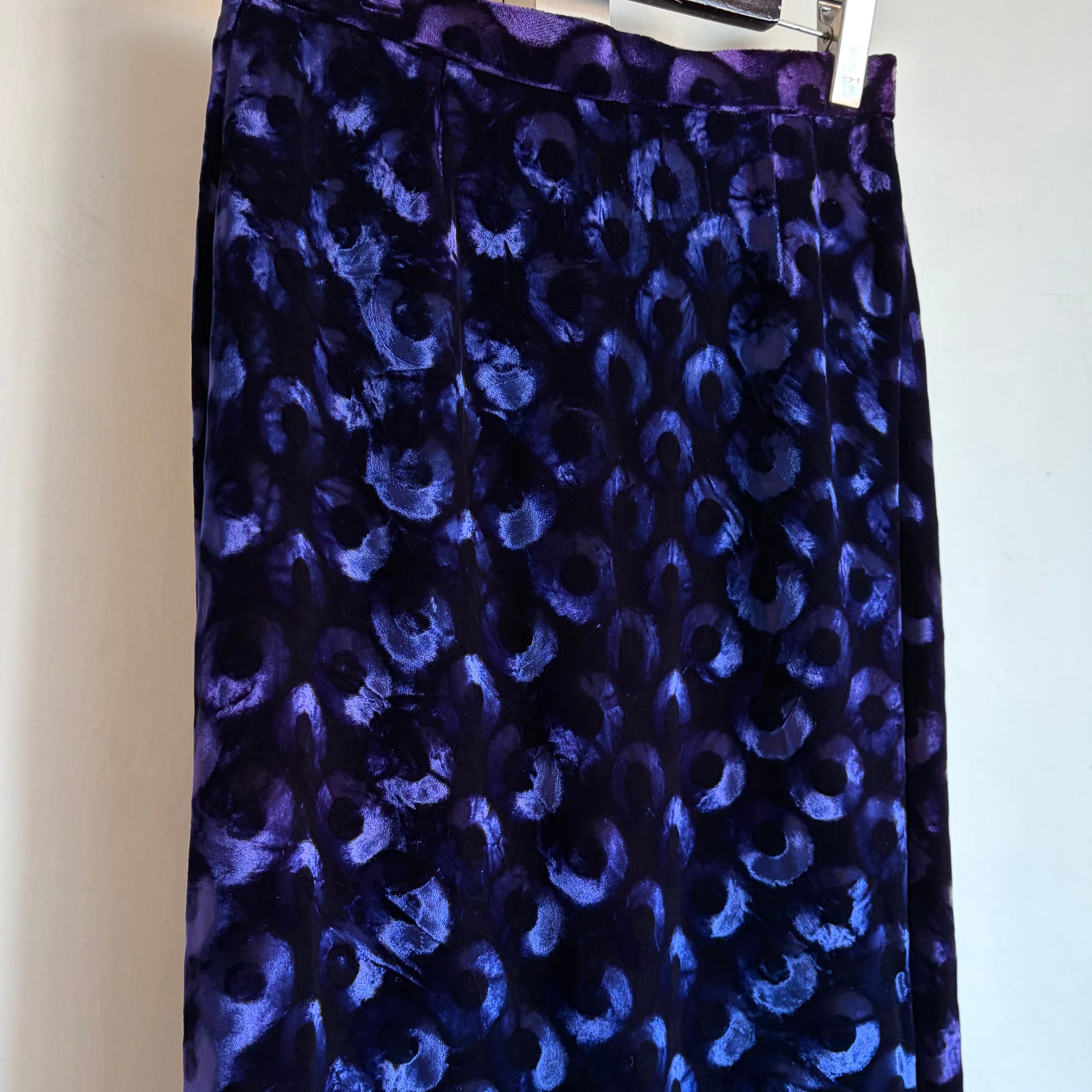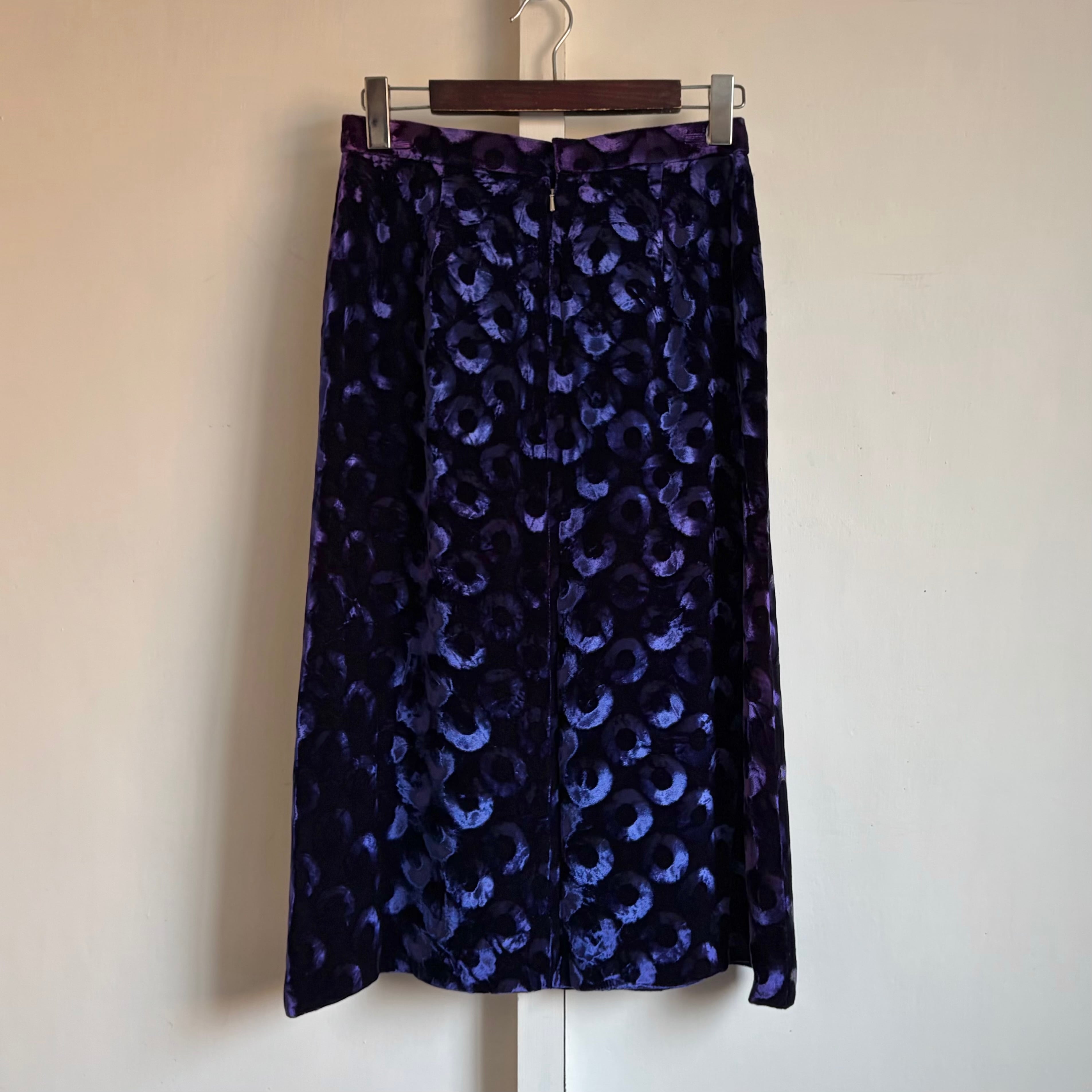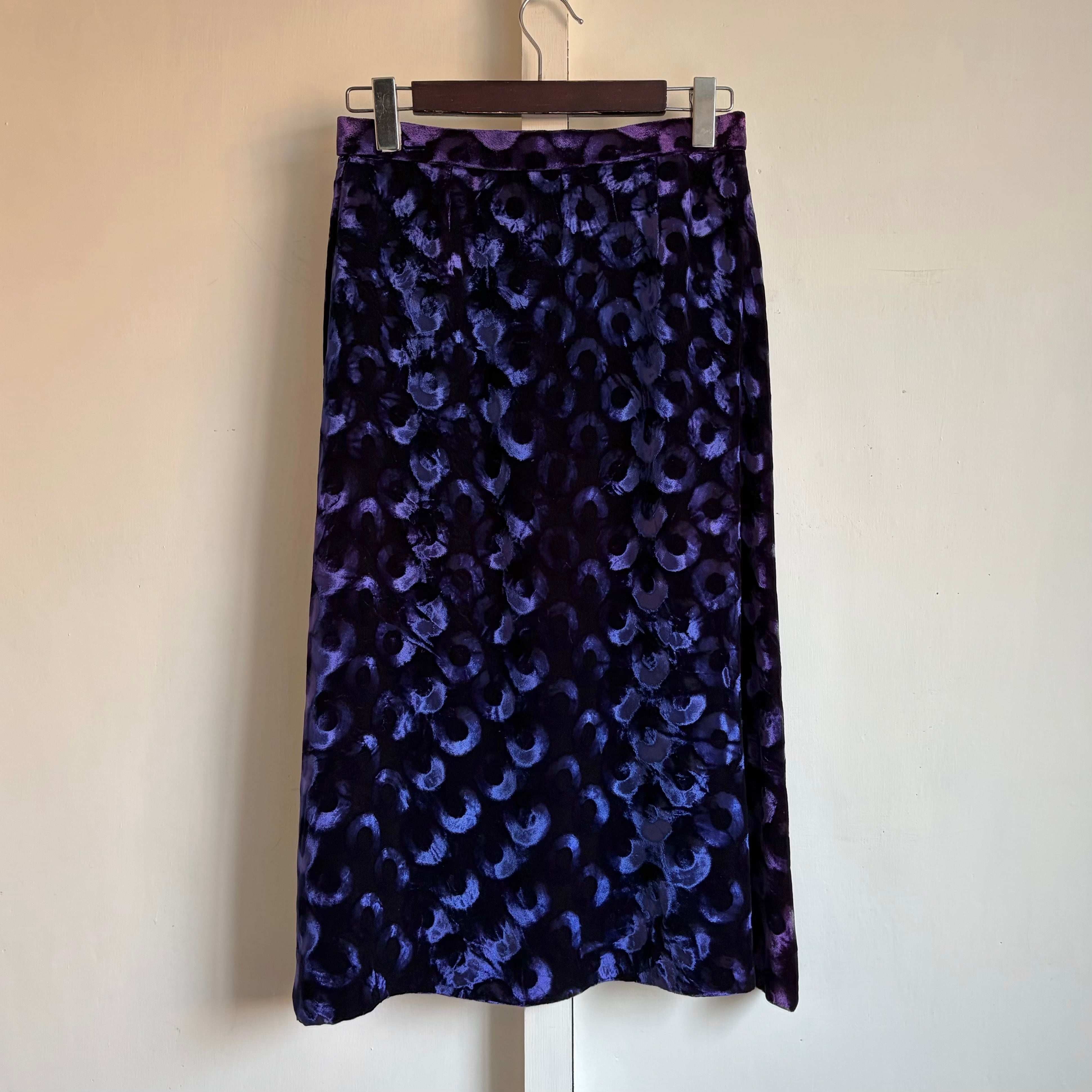 Deep Blue Circle Pattern Velvet Skirt 〈レトロ古着 ディープブルー サークル柄 ベルベットスカート 青 ジャパンヴィンテージ Japan Vintage〉