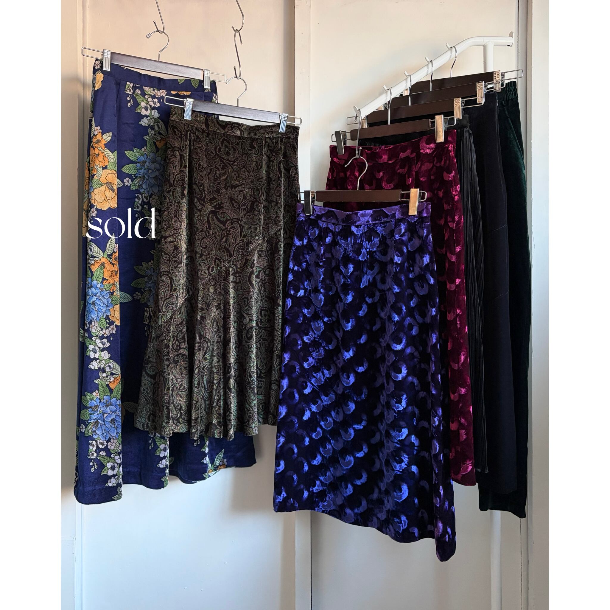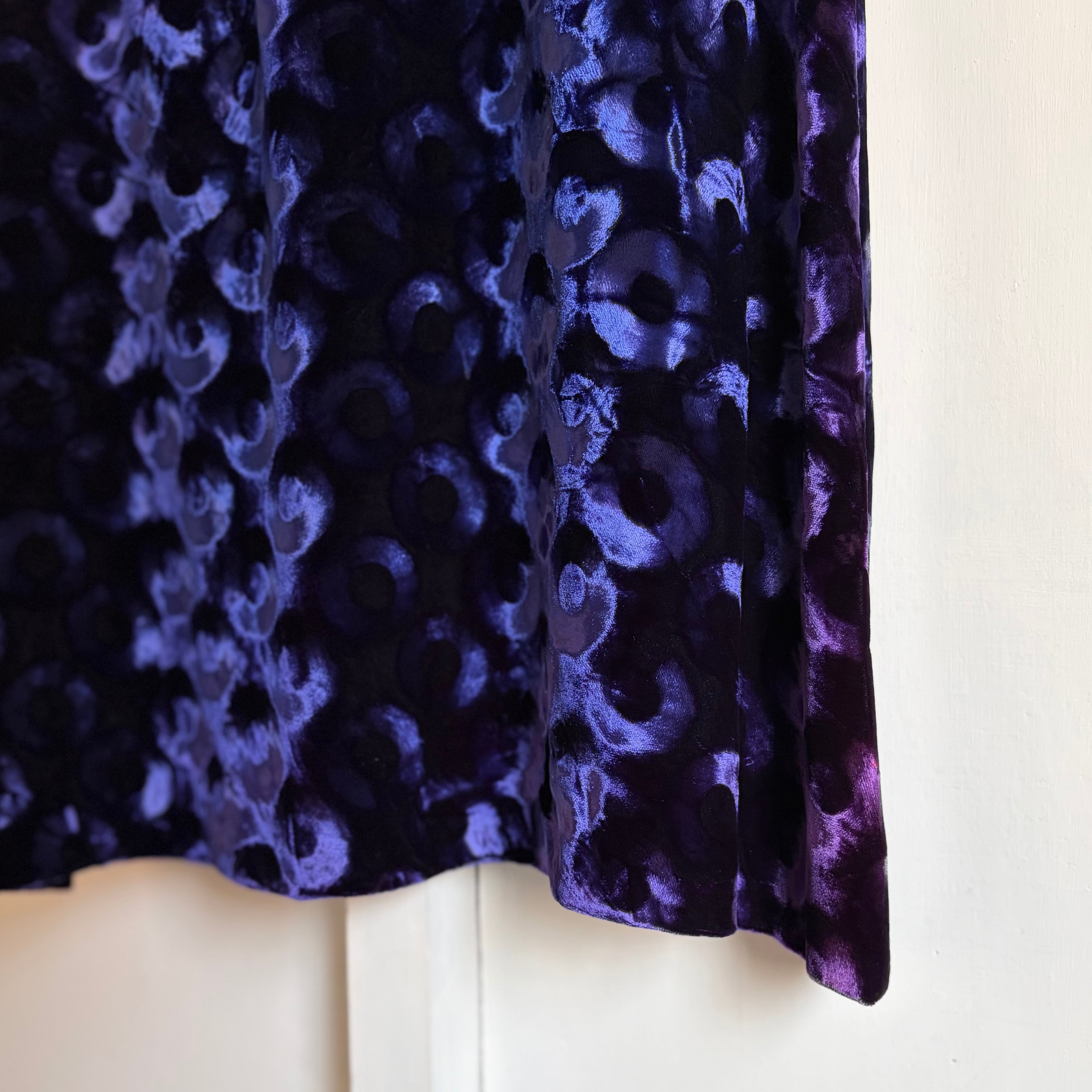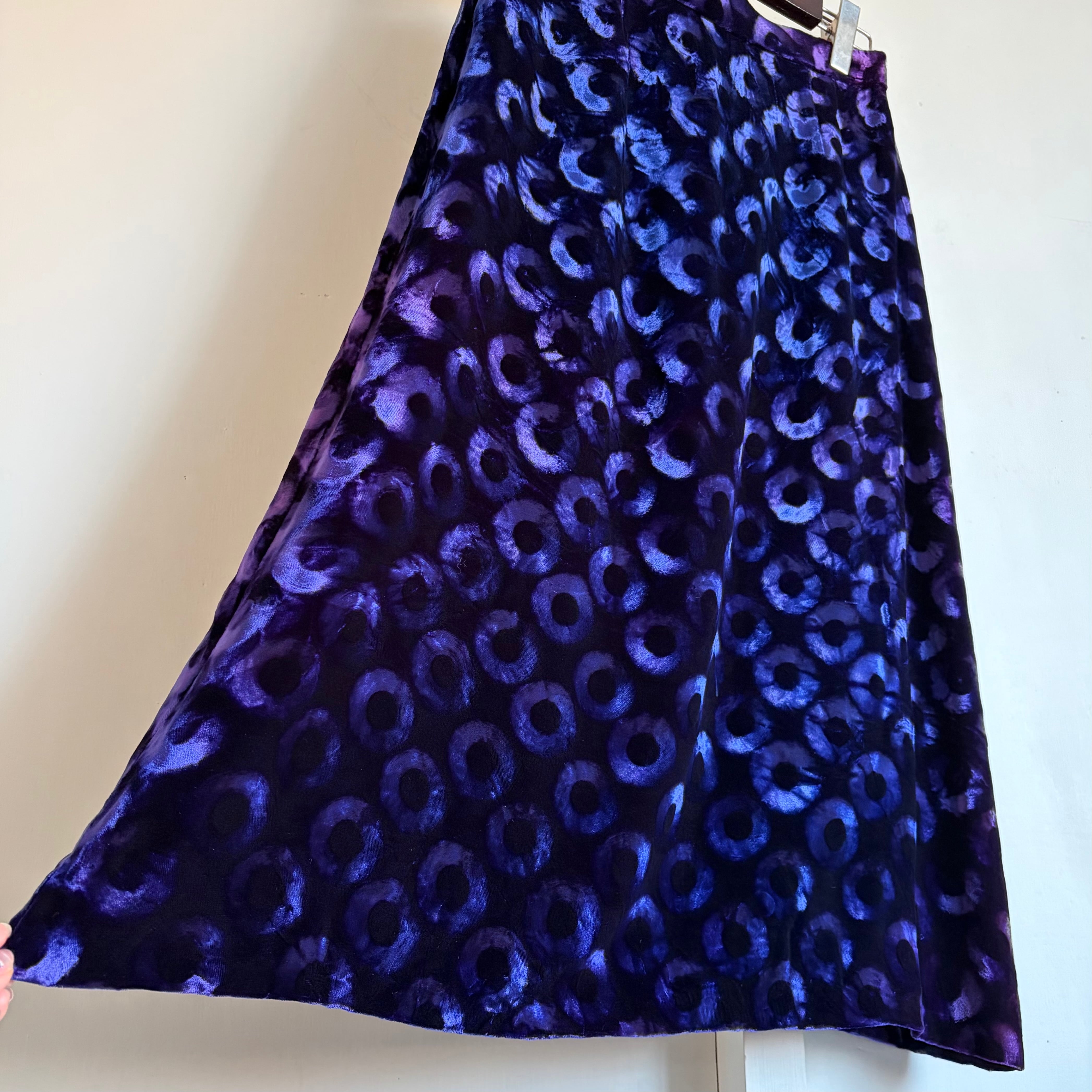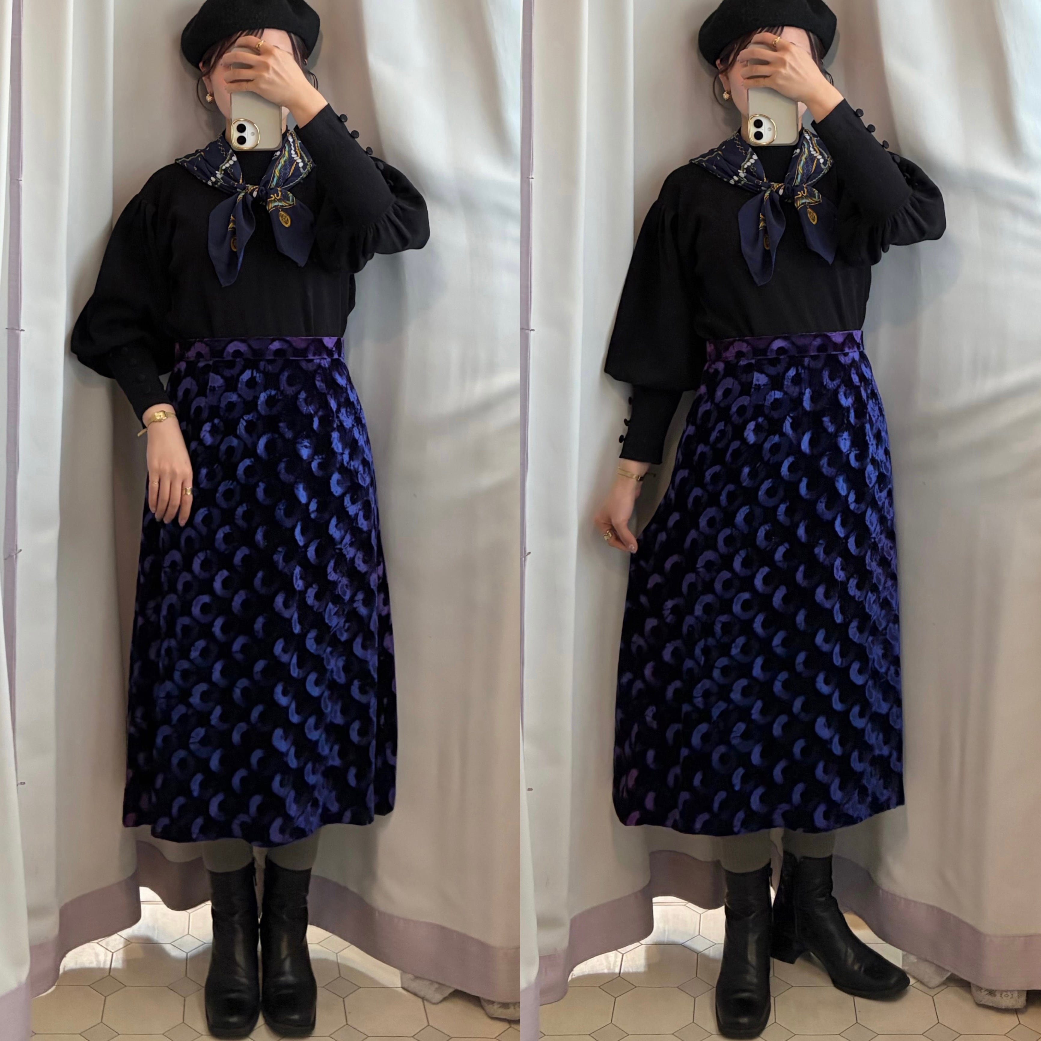 Deep Blue Circle Pattern Velvet Skirt 〈レトロ古着 ディープブルー サークル柄 ベルベットスカート 青 ジャパンヴィンテージ Japan Vintage〉