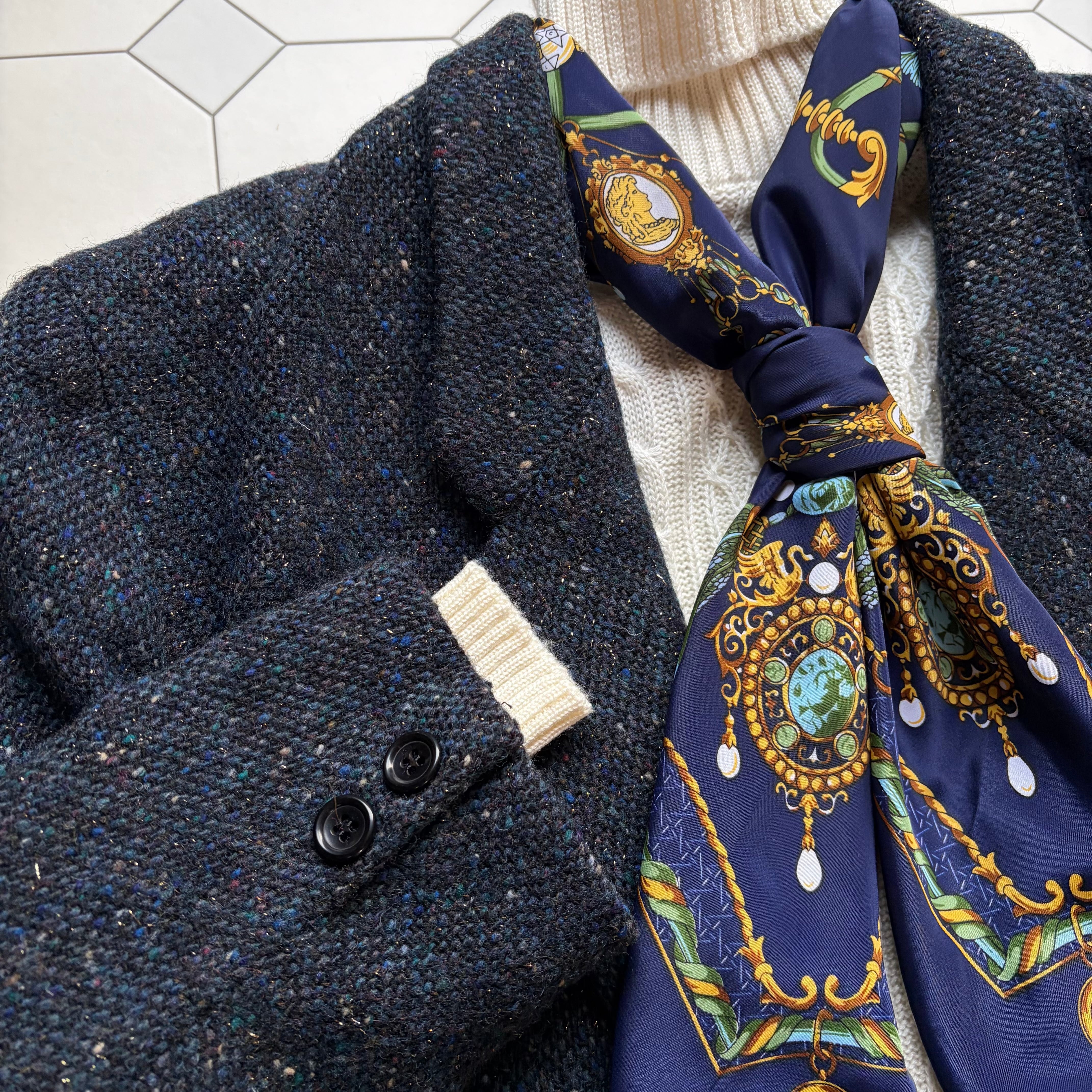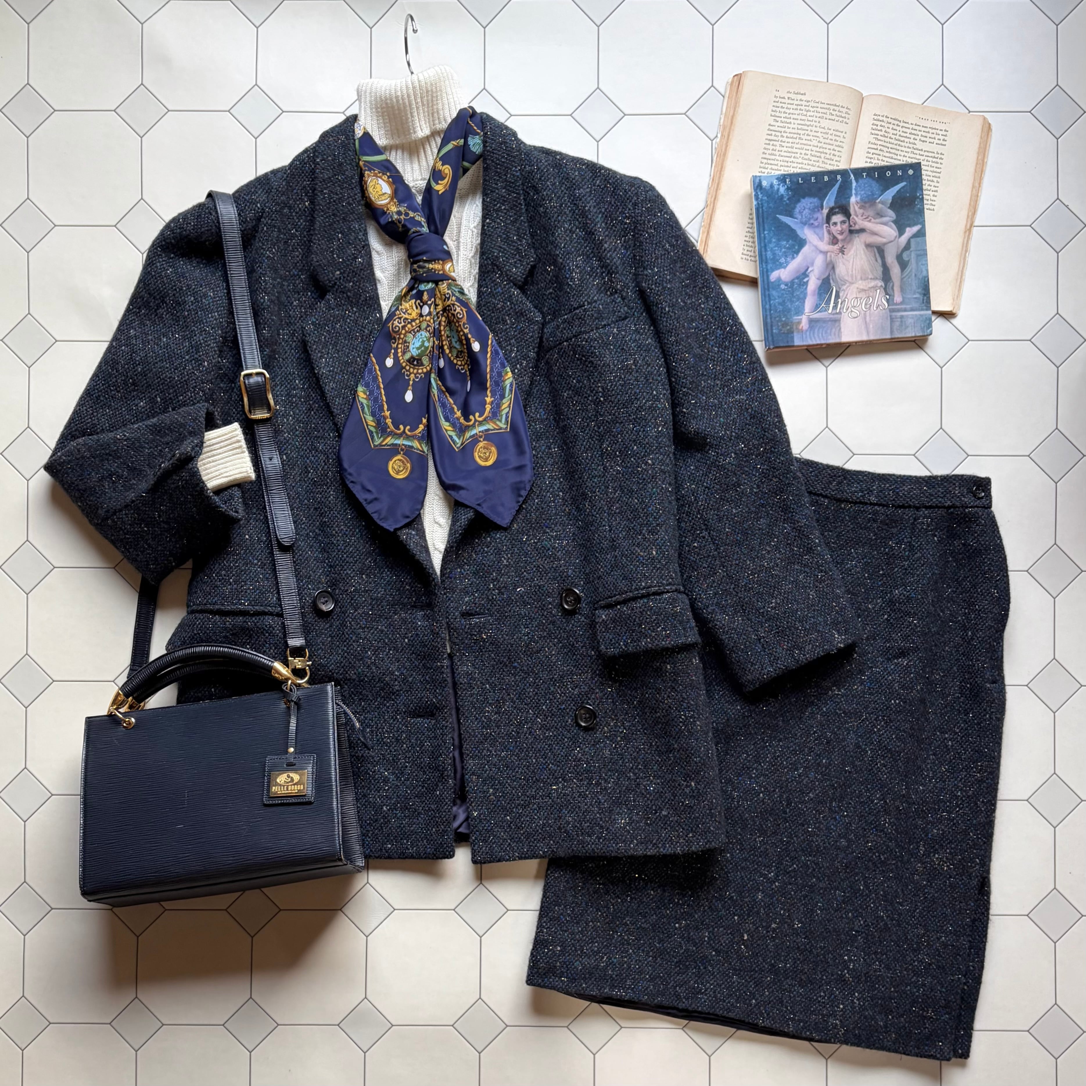 Nep Tweed Double Jacket & Tight Skirt〈レトロ古着 ネップツイード ダブルジャケット&タイトスカート renoma レノマ 日本製 セットアップ〉