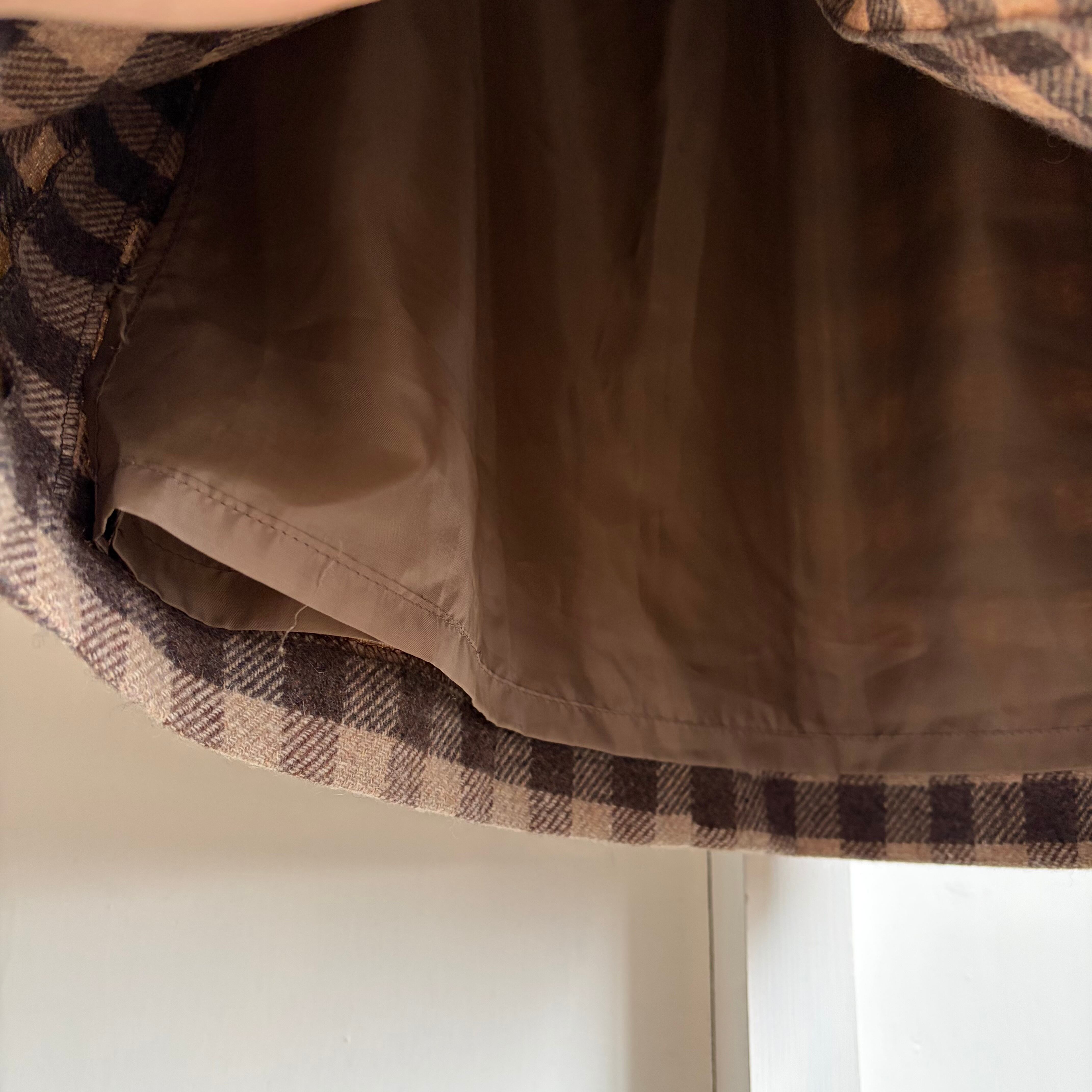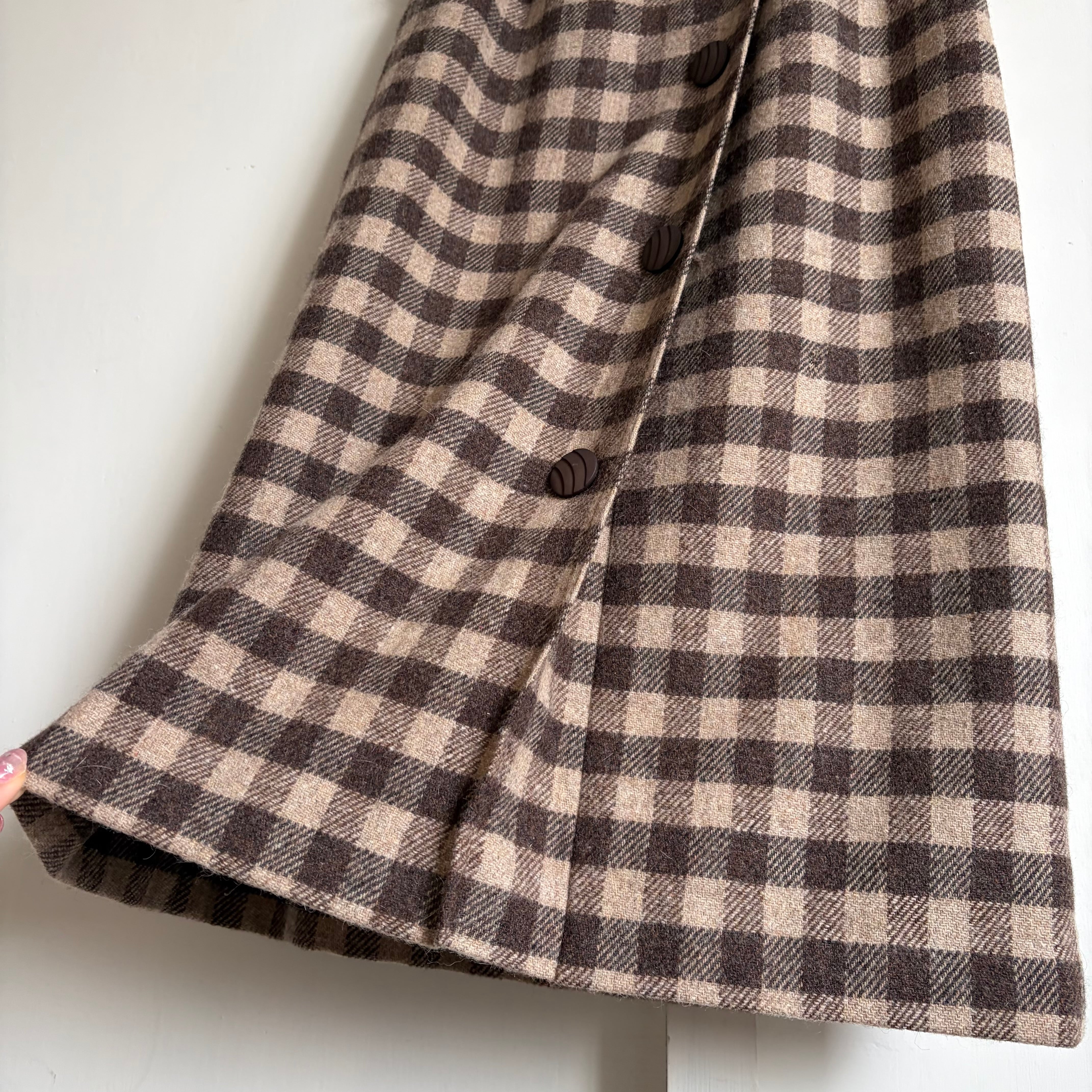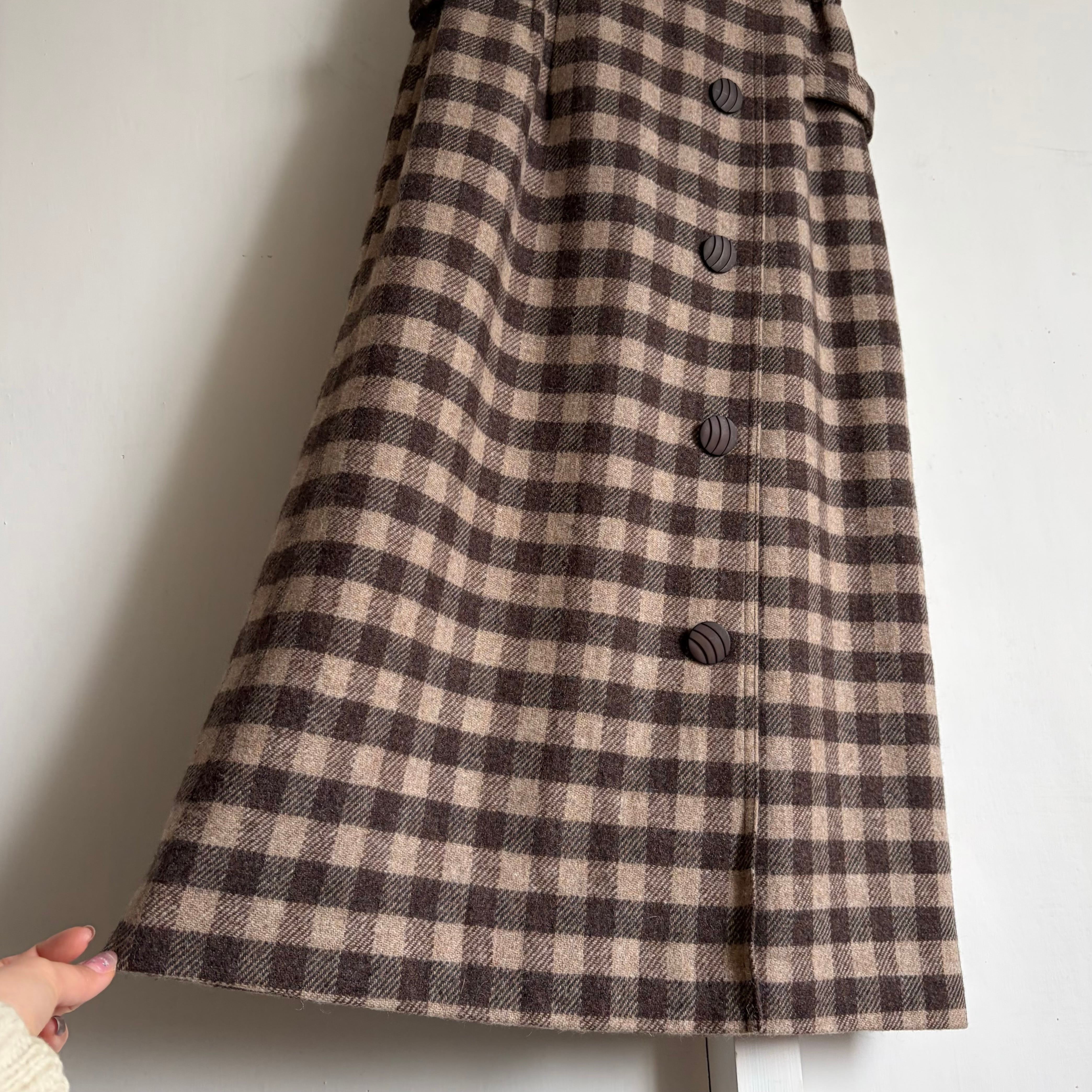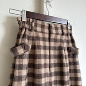 ダークブラウンとベージュのブロックチェック柄スカート