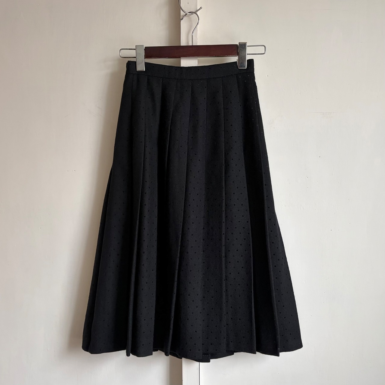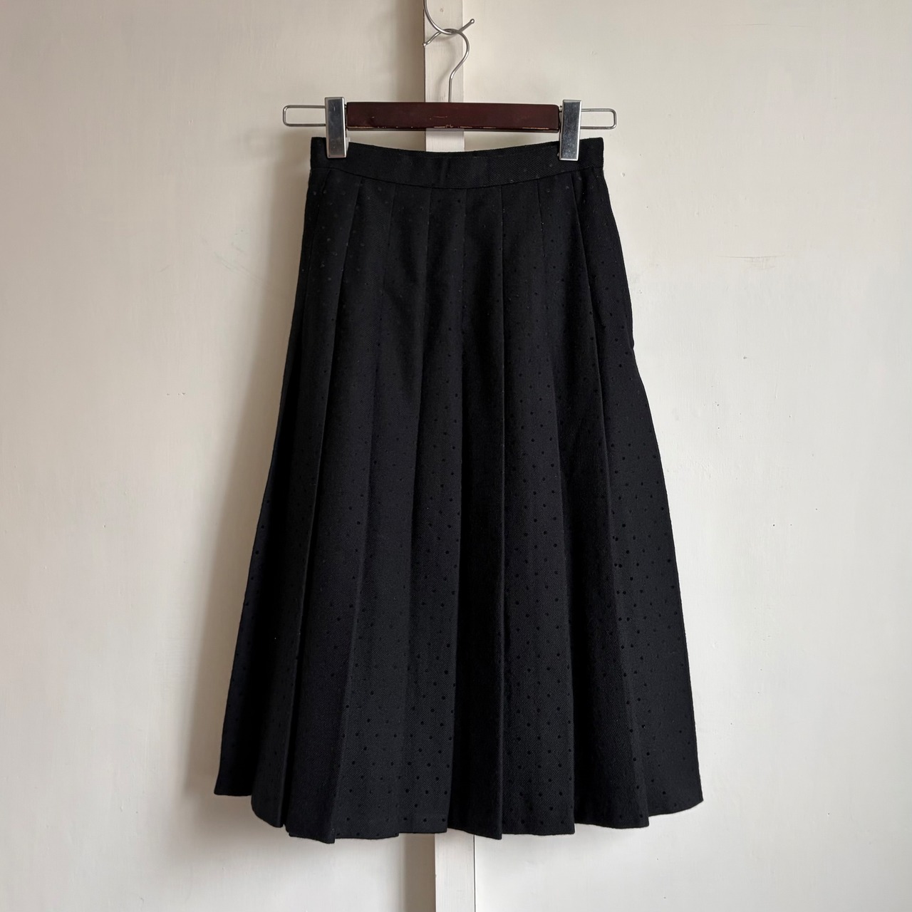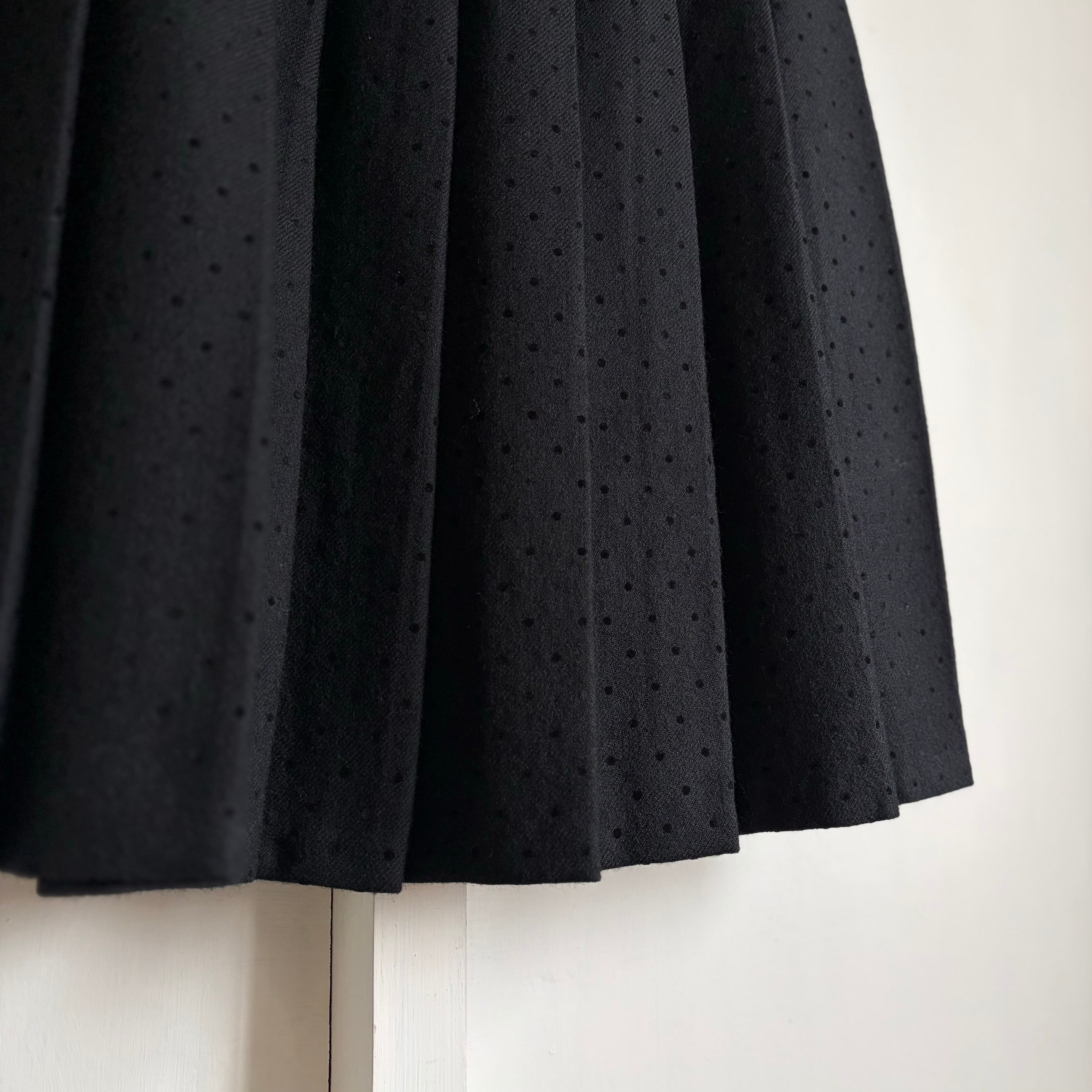 Flocked Dot Pleated Skirt〈レトロ古着 フロッキードット プリーツスカート 黒 ブラック ジャパンヴィンテージ Japan Vintage〉