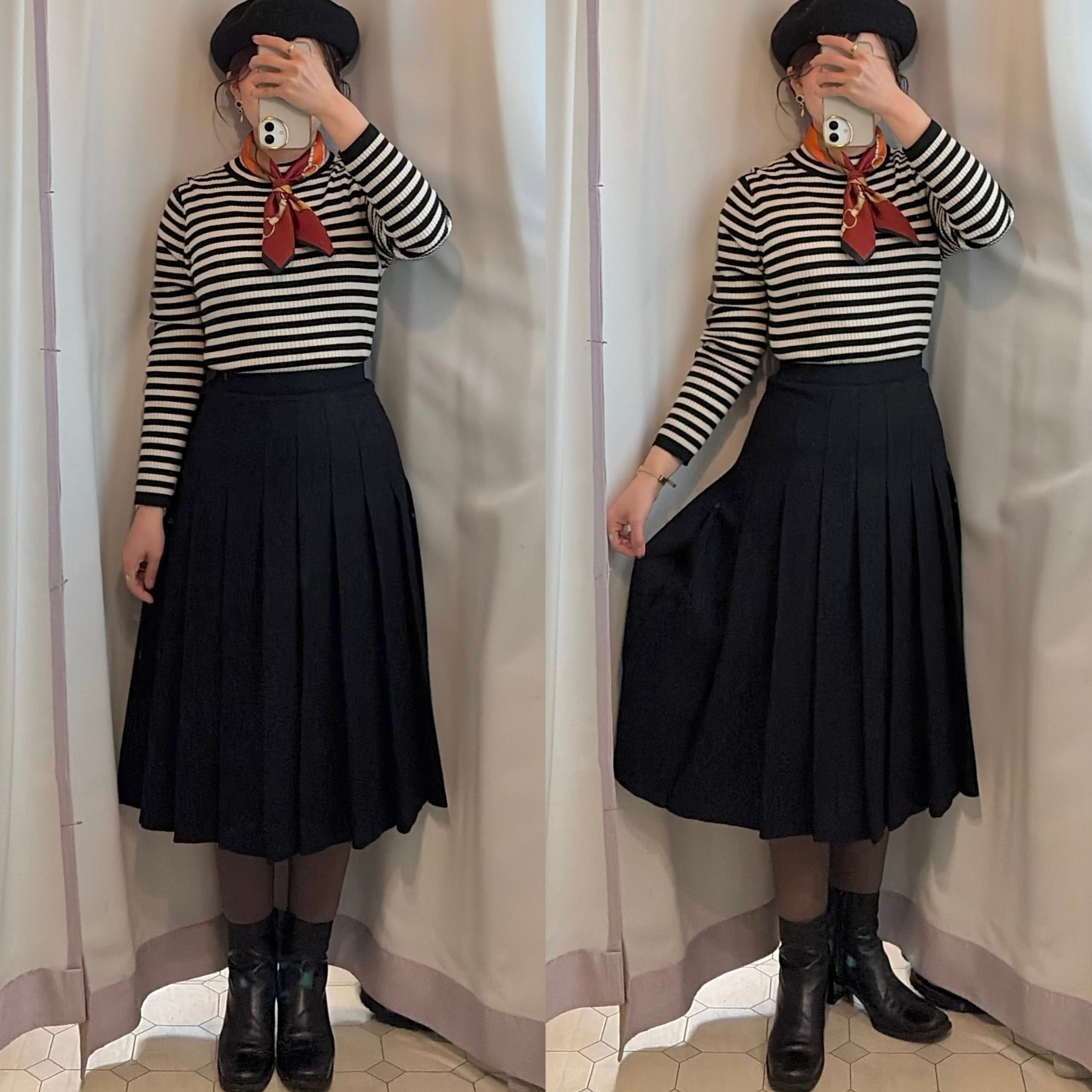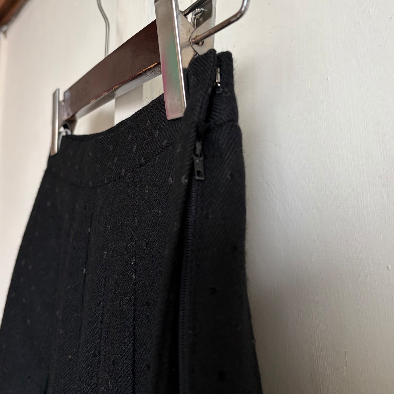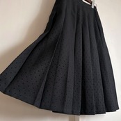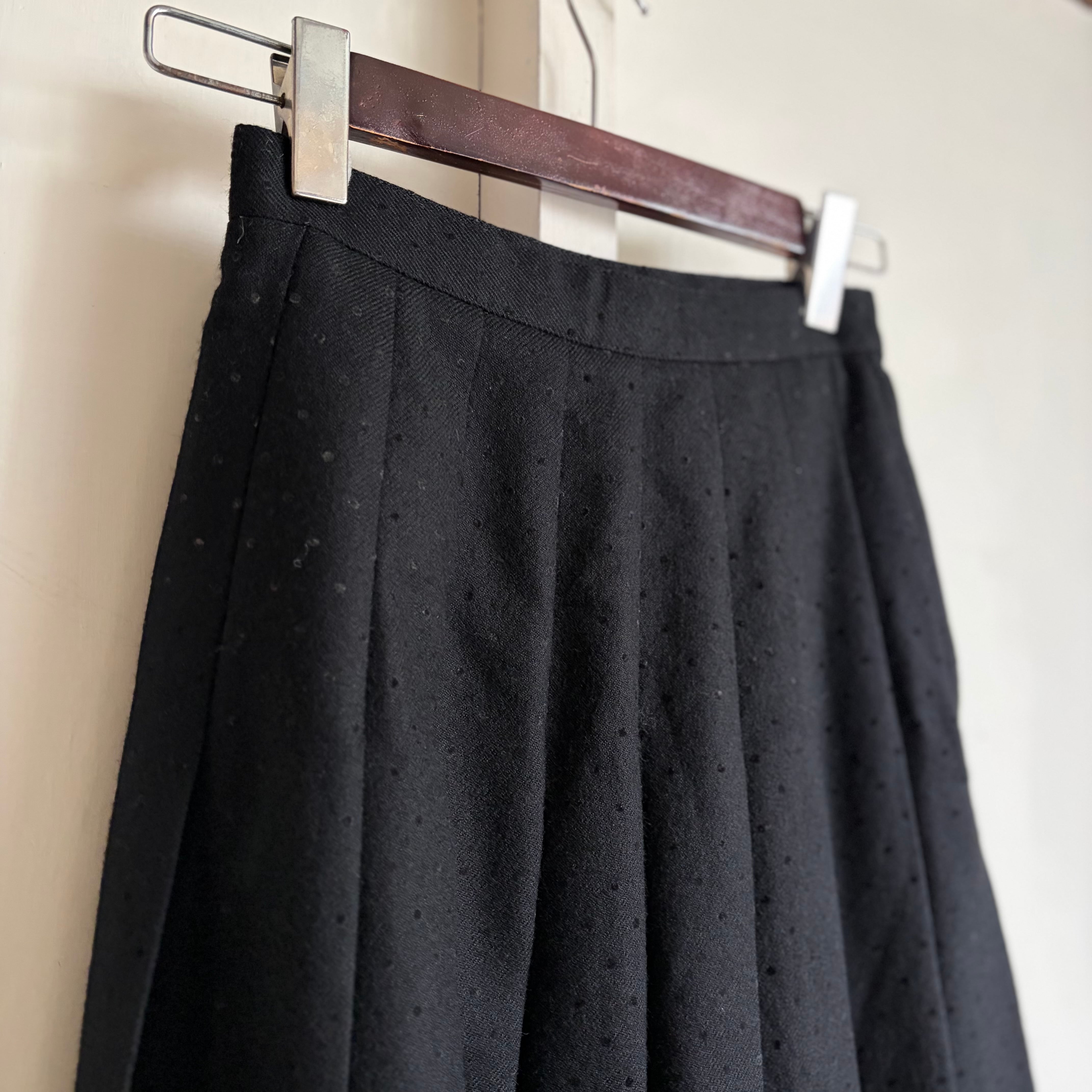 Flocked Dot Pleated Skirt〈レトロ古着 フロッキードット プリーツスカート 黒 ブラック ジャパンヴィンテージ Japan Vintage〉