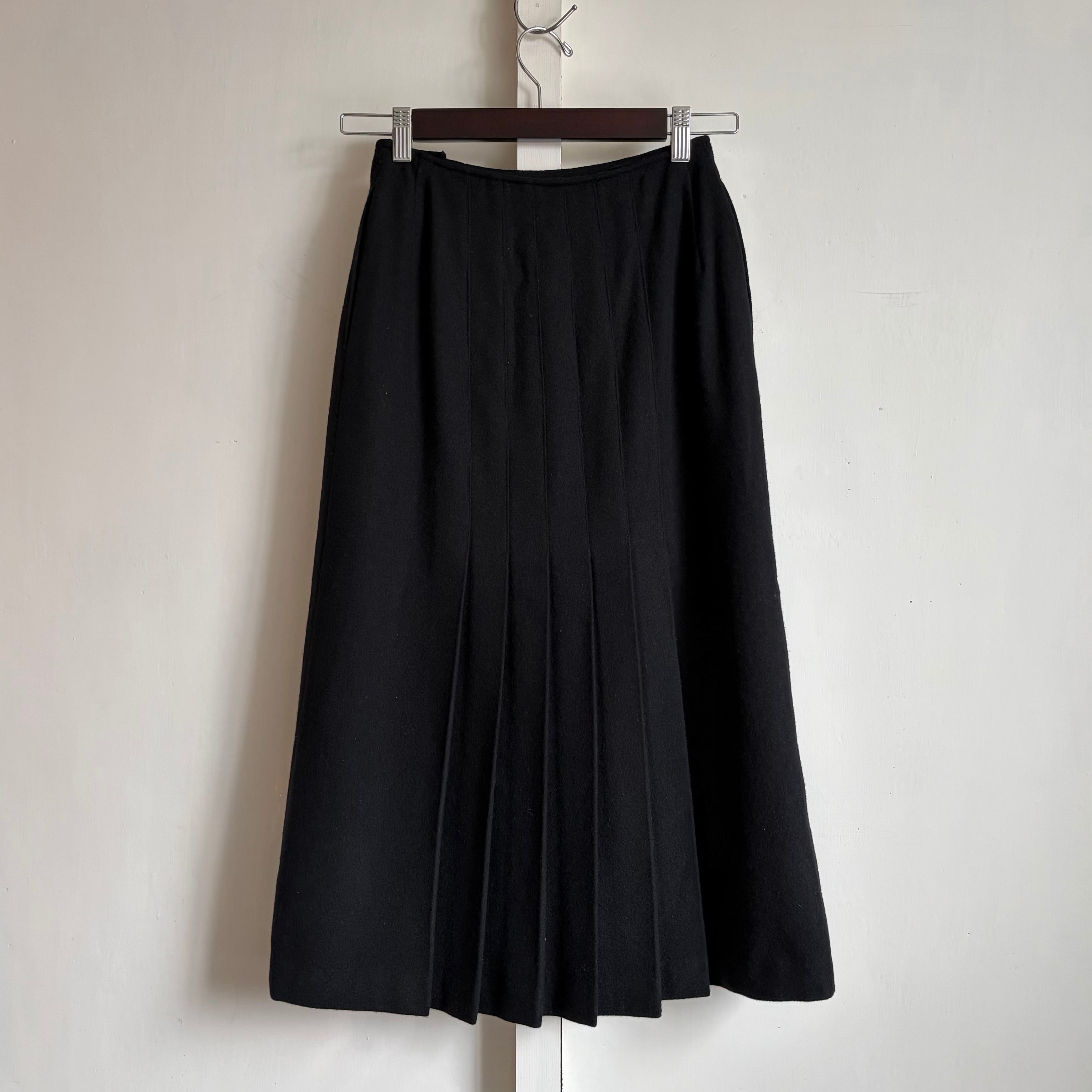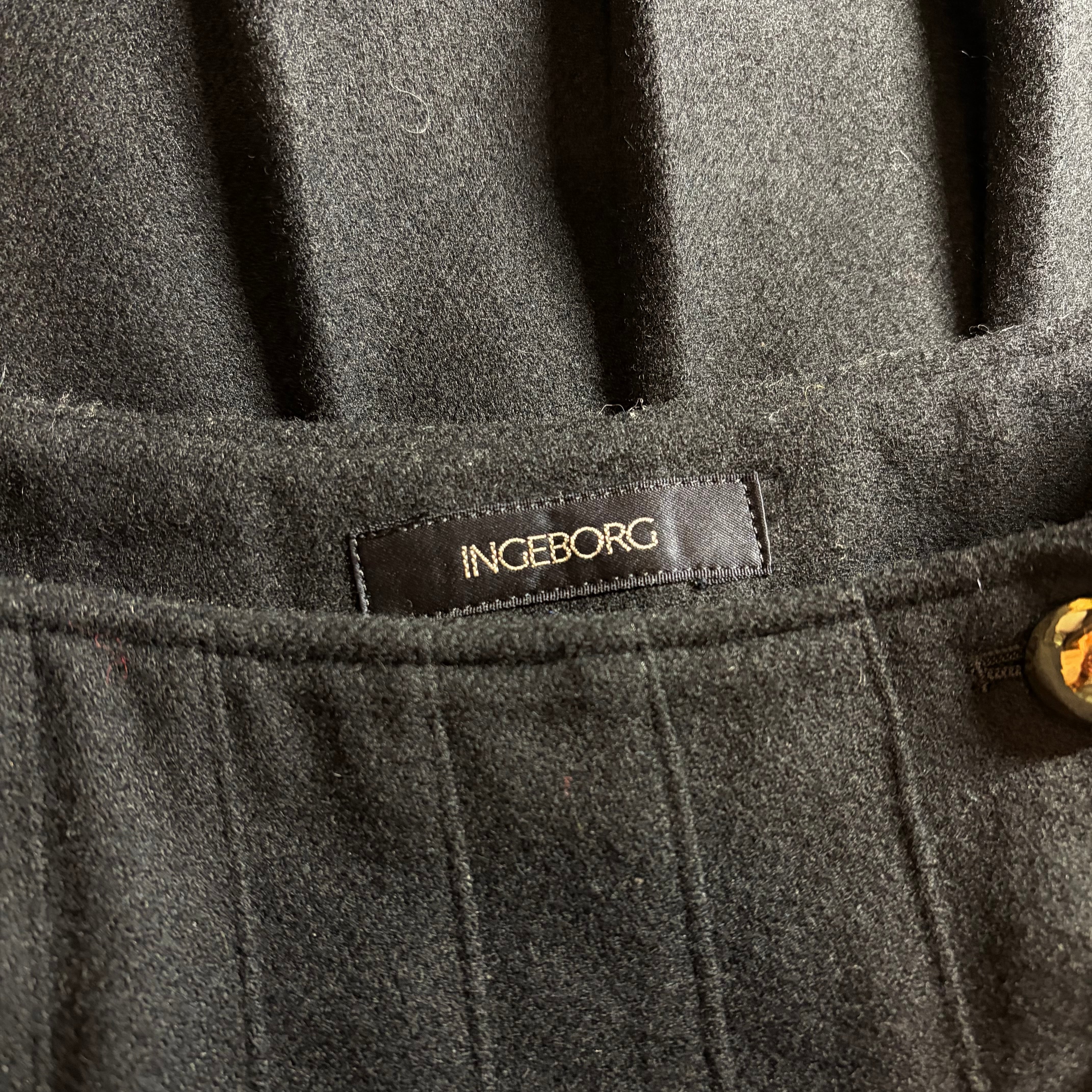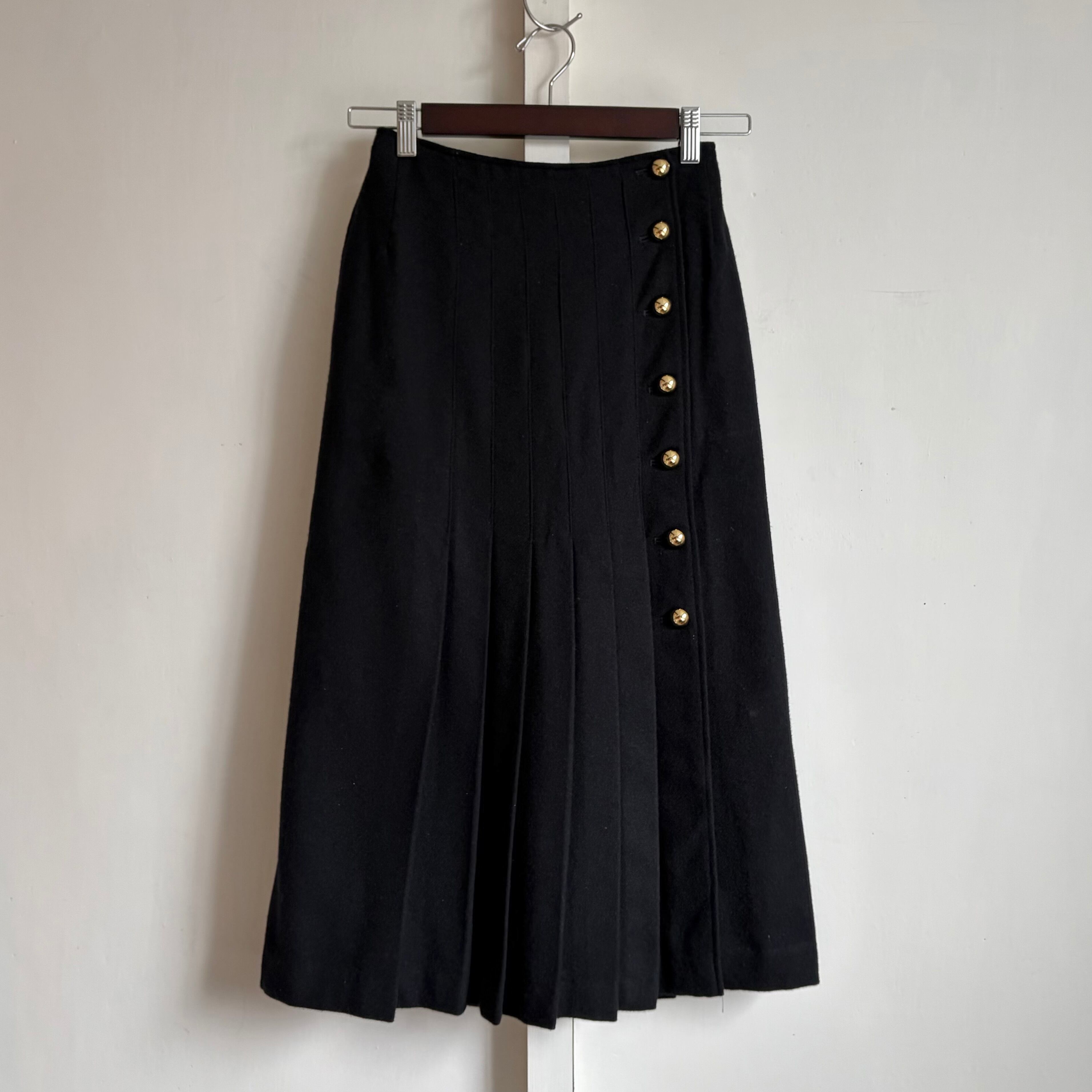 Side Button Pleated Wrap Skirt〈レトロ古着 サイドボタン プリーツ ラップスカート インゲボルグ 黒 ブラック ジャパンヴィンテージ Japan Vintage〉