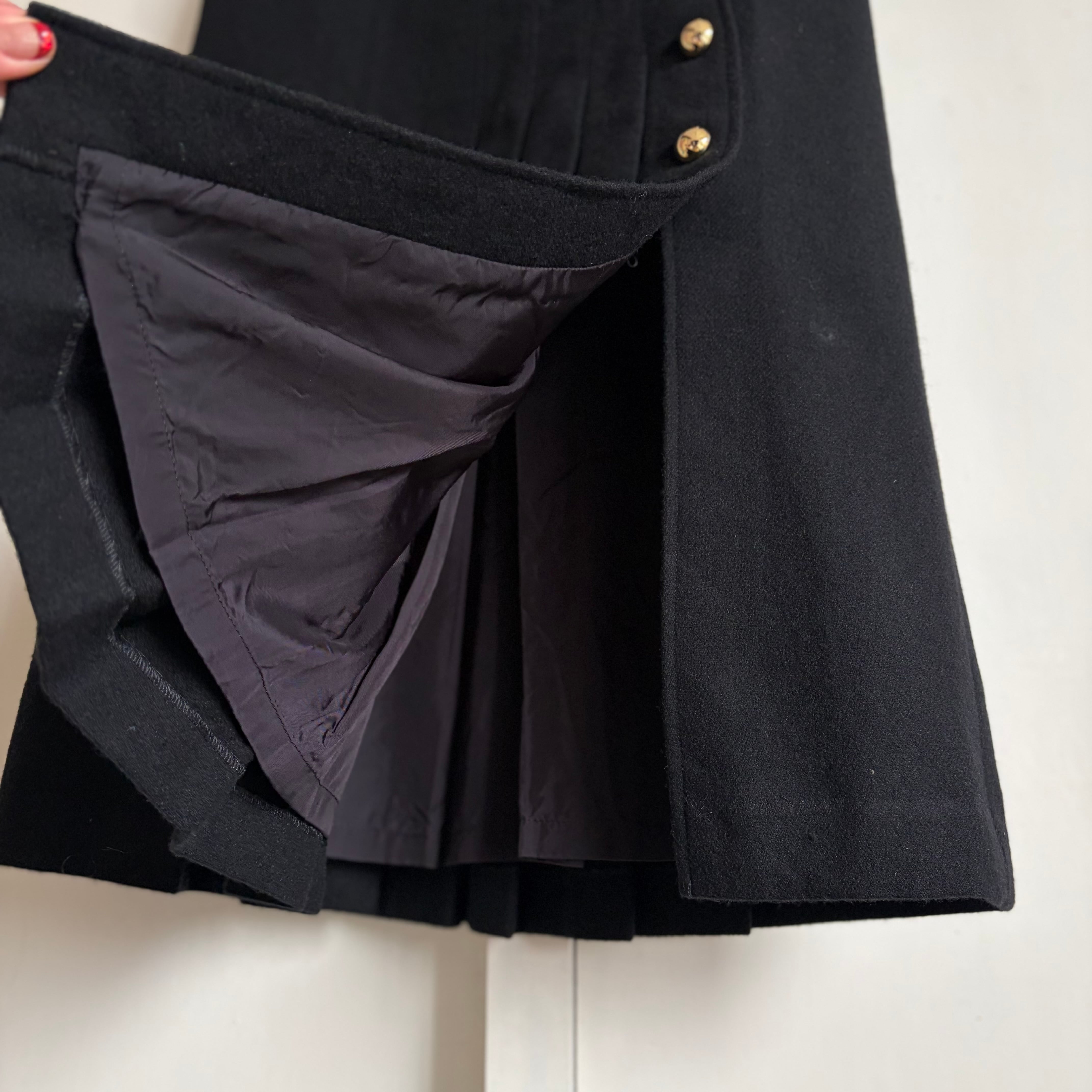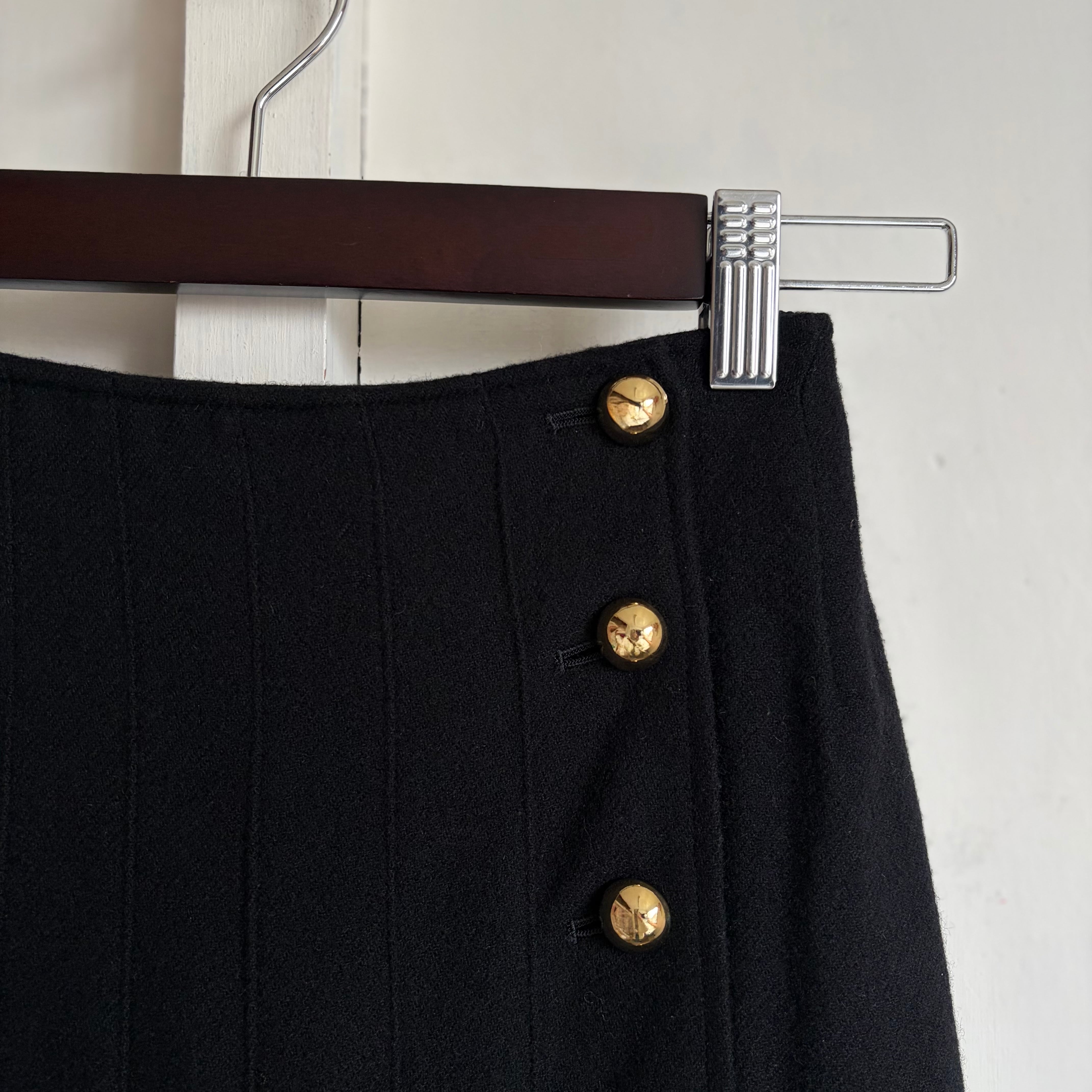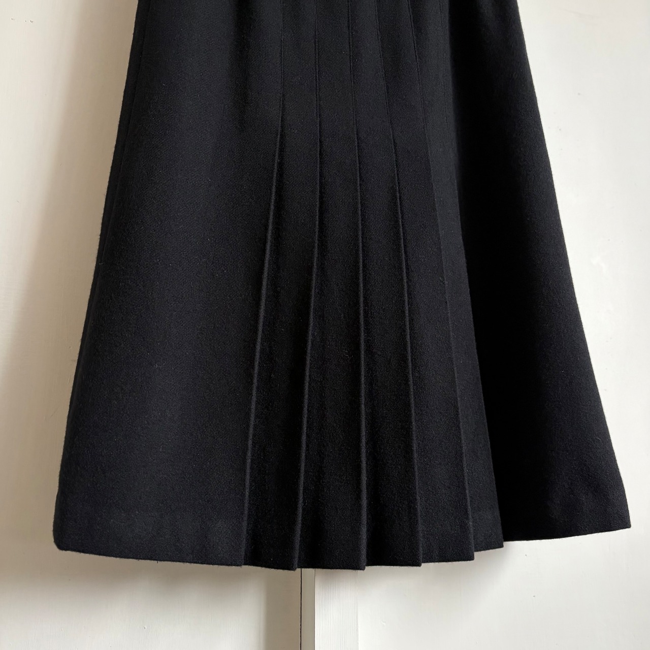 Side Button Pleated Wrap Skirt〈レトロ古着 サイドボタン プリーツ ラップスカート インゲボルグ 黒 ブラック ジャパンヴィンテージ Japan Vintage〉