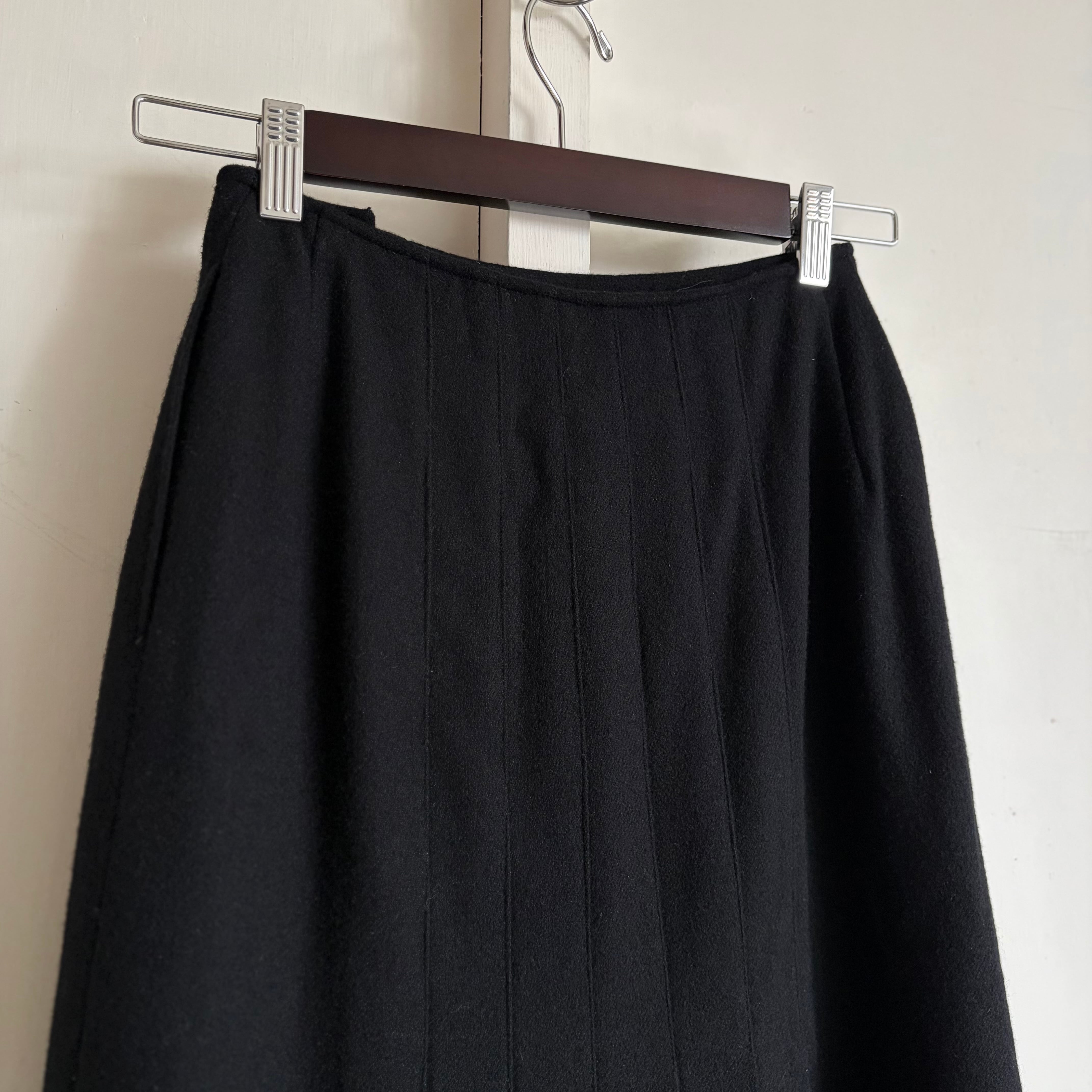 幅広く着回しやすいベーシックさと、しっかりとした素材感が魅力的なブラックのウールスカートが揃いました