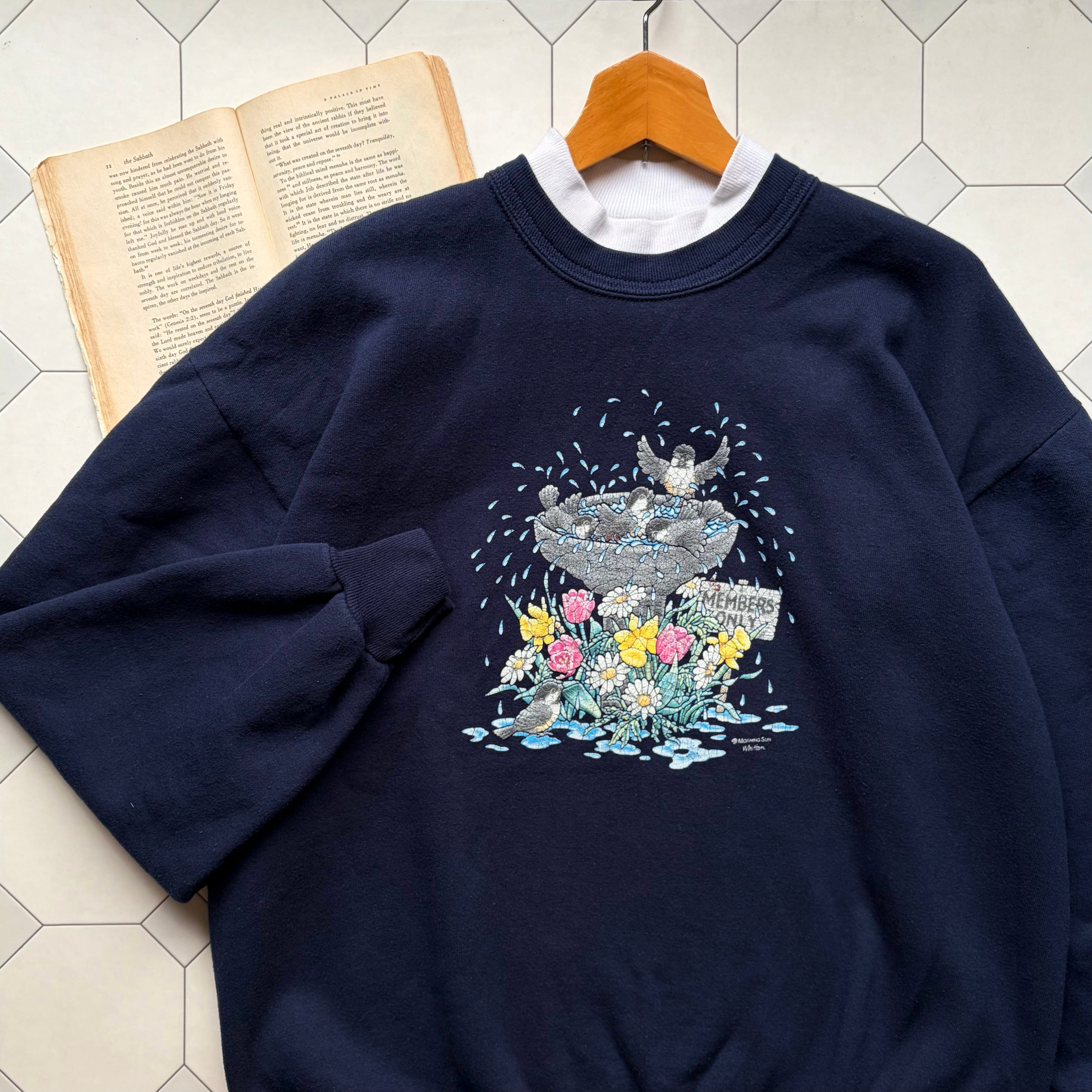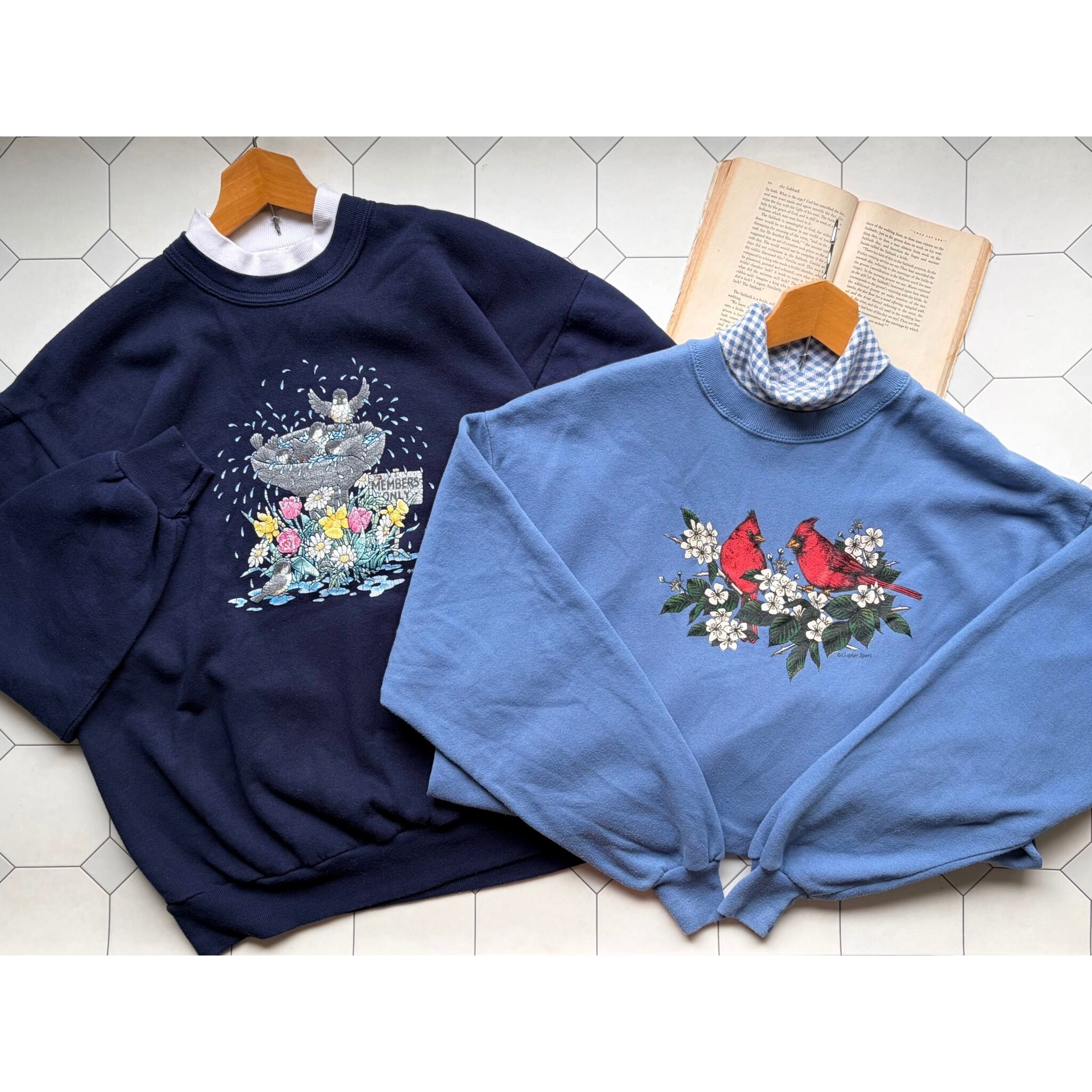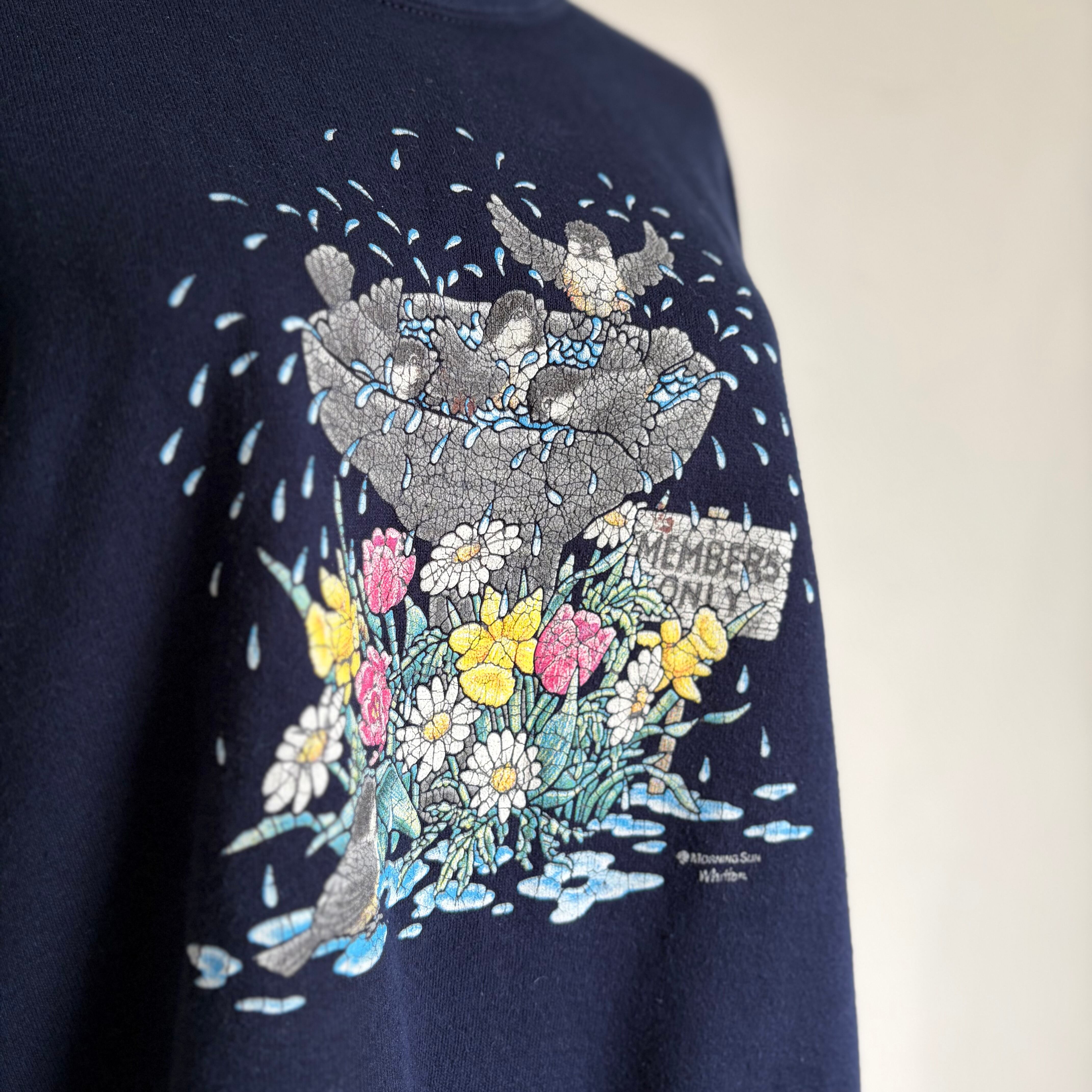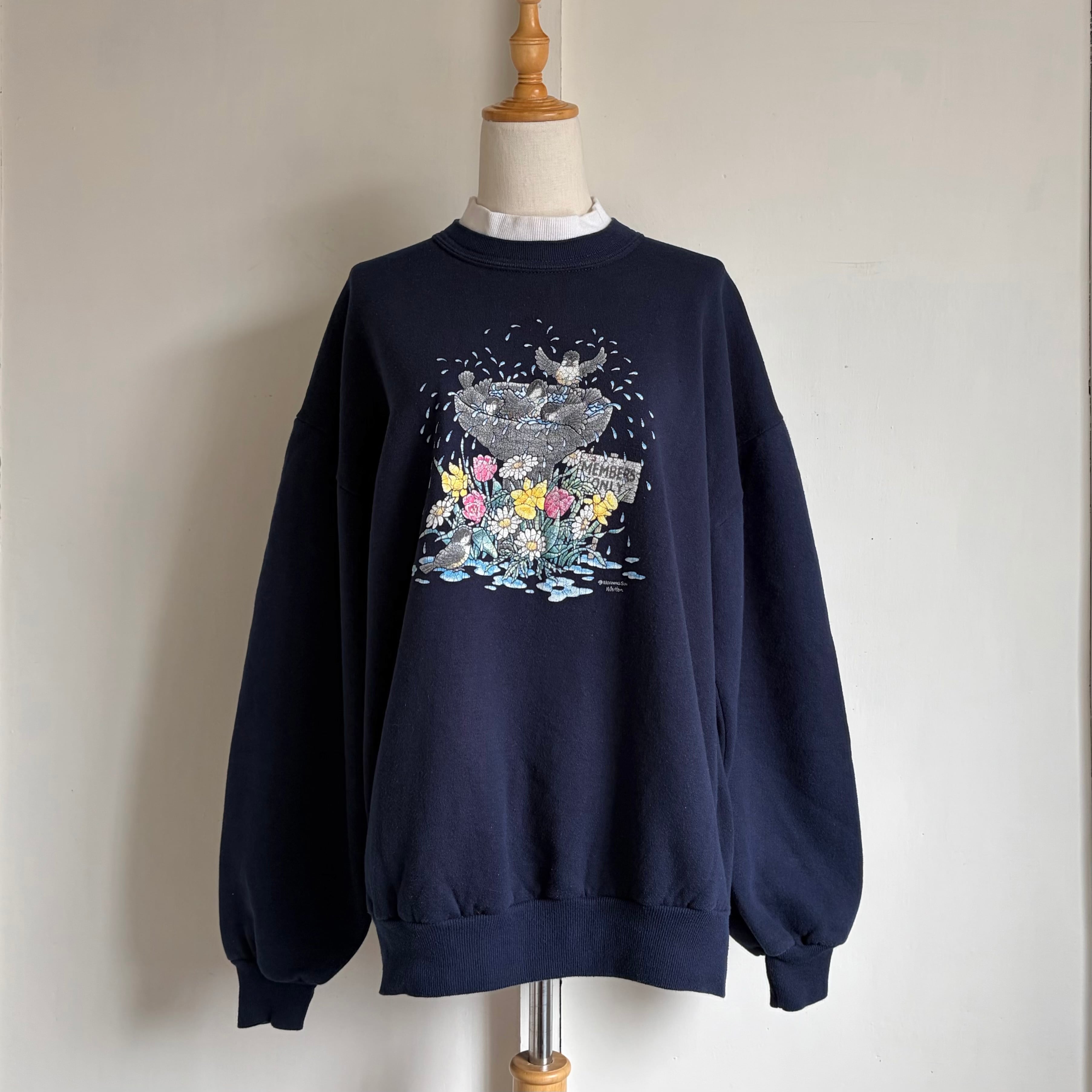 Splashing Birds Sweatshirt〈レトロ古着 小鳥&フラワー プリント スウェット アメリカ製 USA製 90s 90年代〉