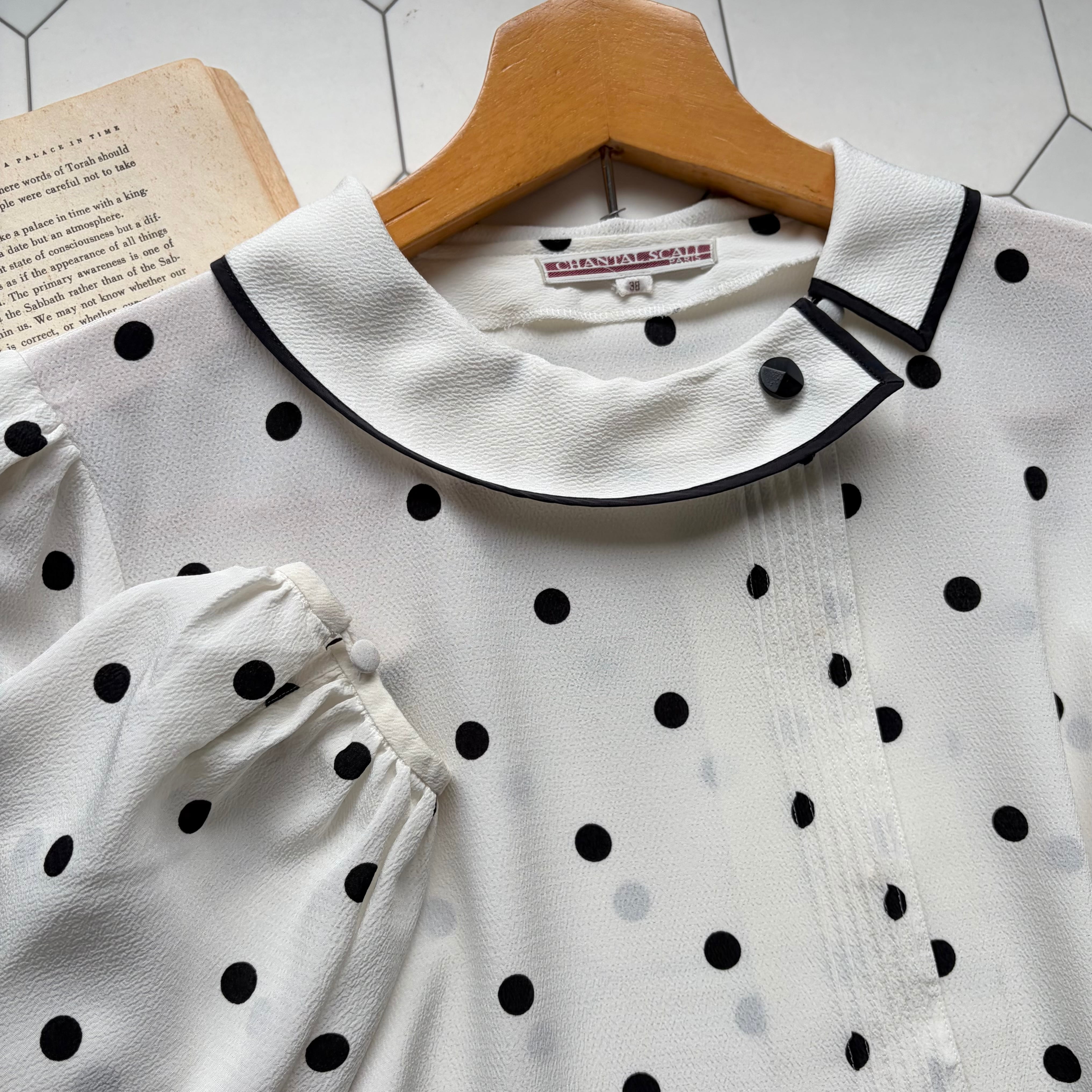 Polka Dot Roll Collar Blouse 〈レトロ古着 ポルカドット ロールカラーブラウス ジャパンヴィンテージ Japan Vintage〉