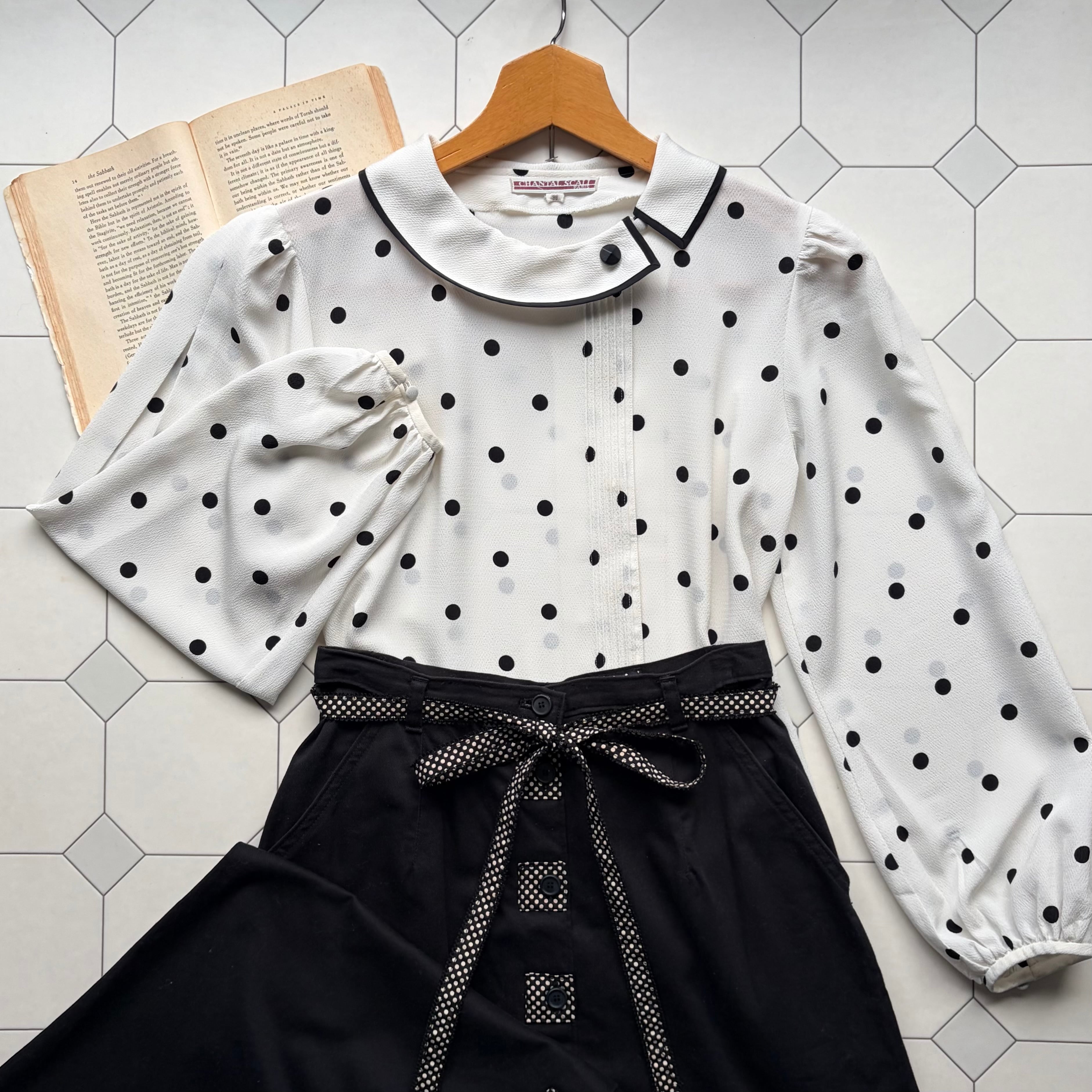レトロなポルカドットが印象的なブラウス