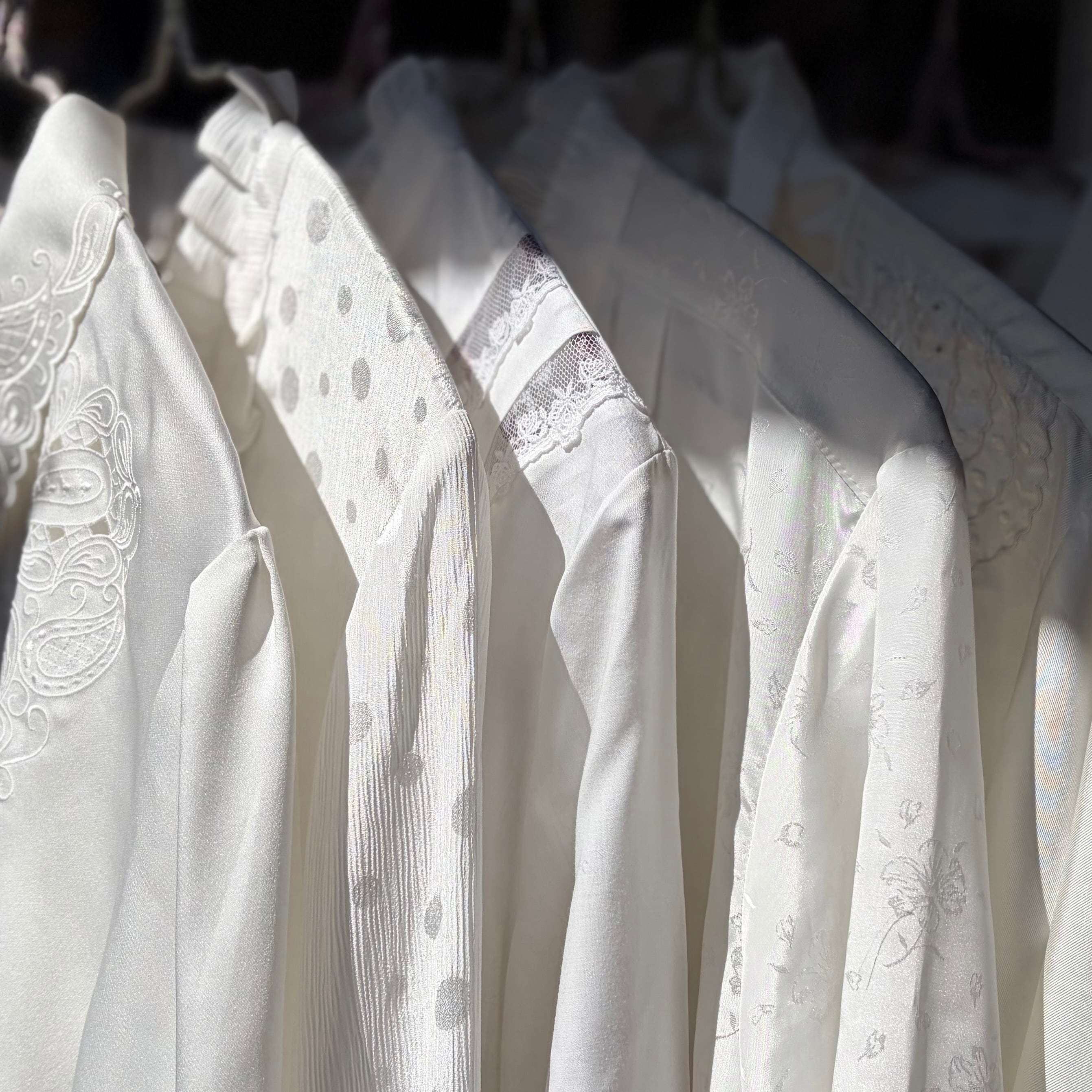 光の加減で表情が変わる、素敵なジャガード生地のホワイトブラウスが揃いました