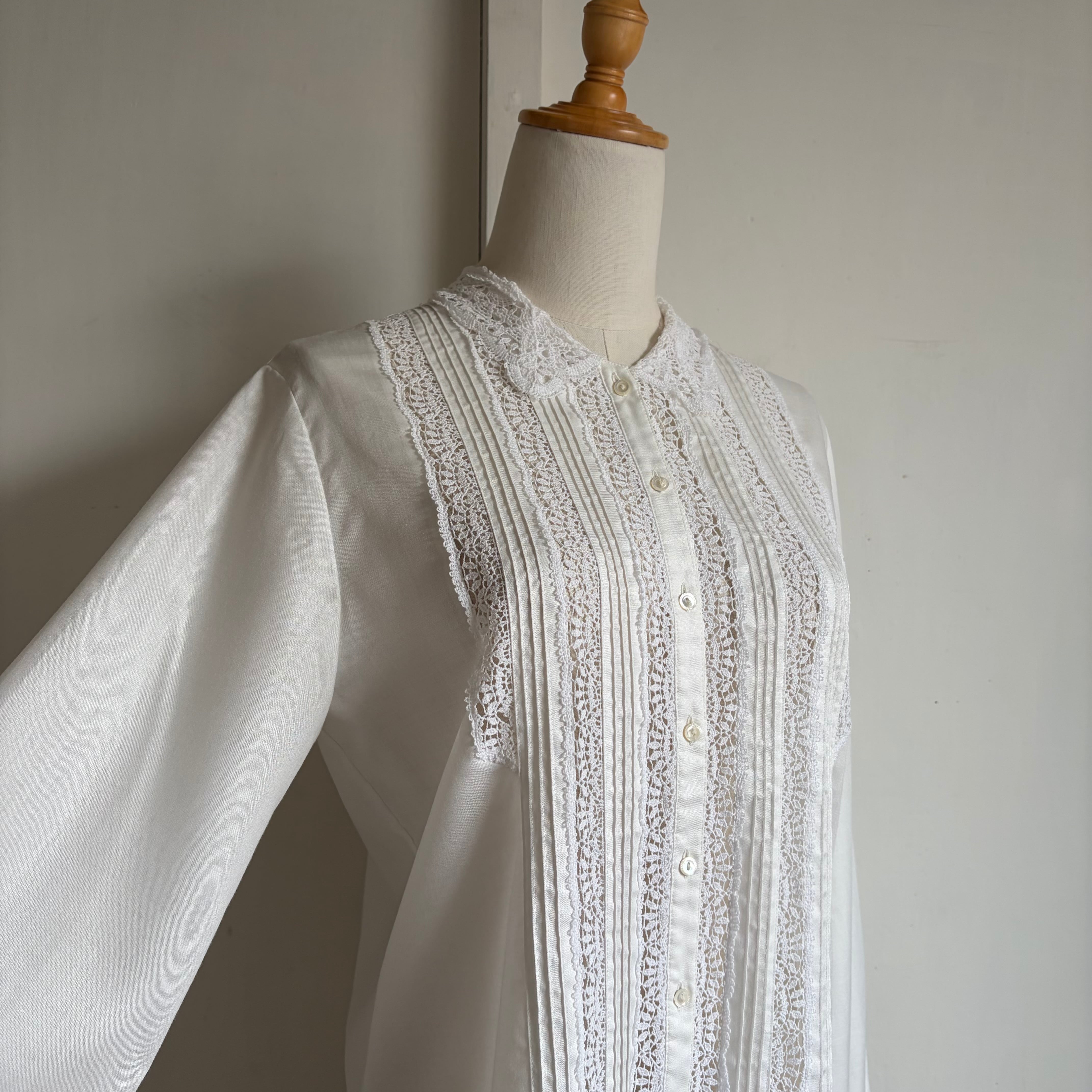Torchon Lace Pintuck Blouse 〈レトロ古着 トーションレース ピンタックブラウス 白 ジャパンヴィンテージ Japan Vintage〉