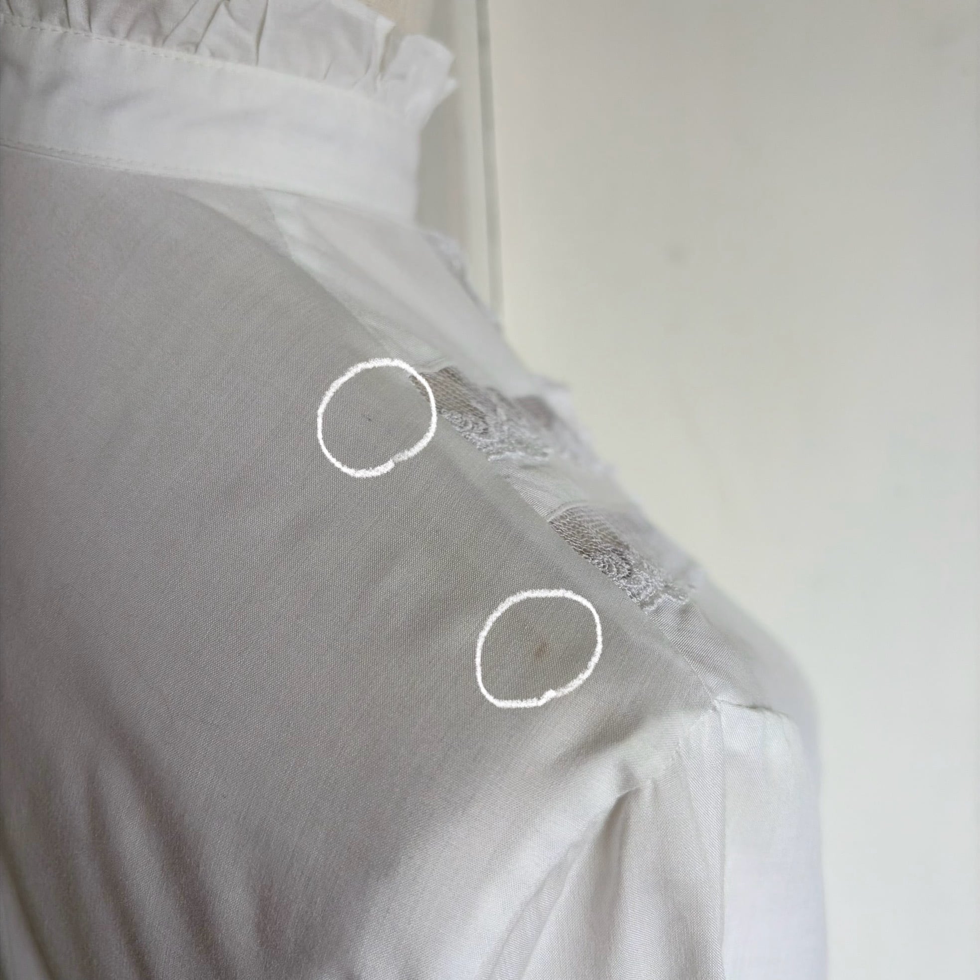 薔薇をモチーフにした繊細なレースをあしらったホワイトブラウス