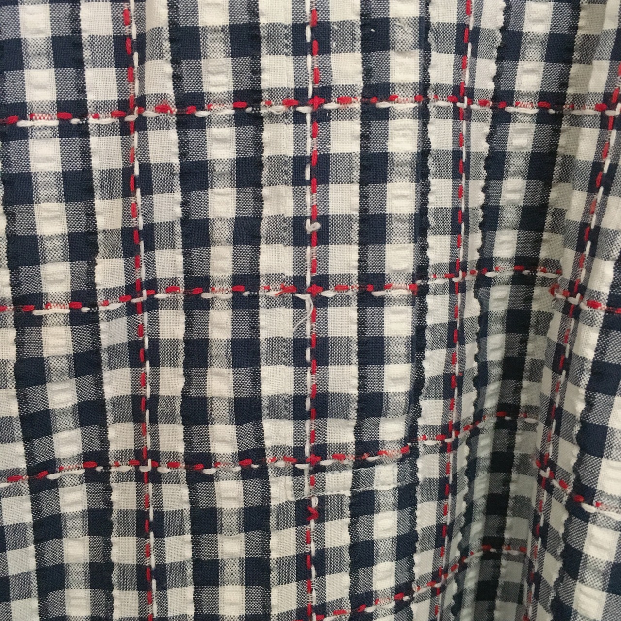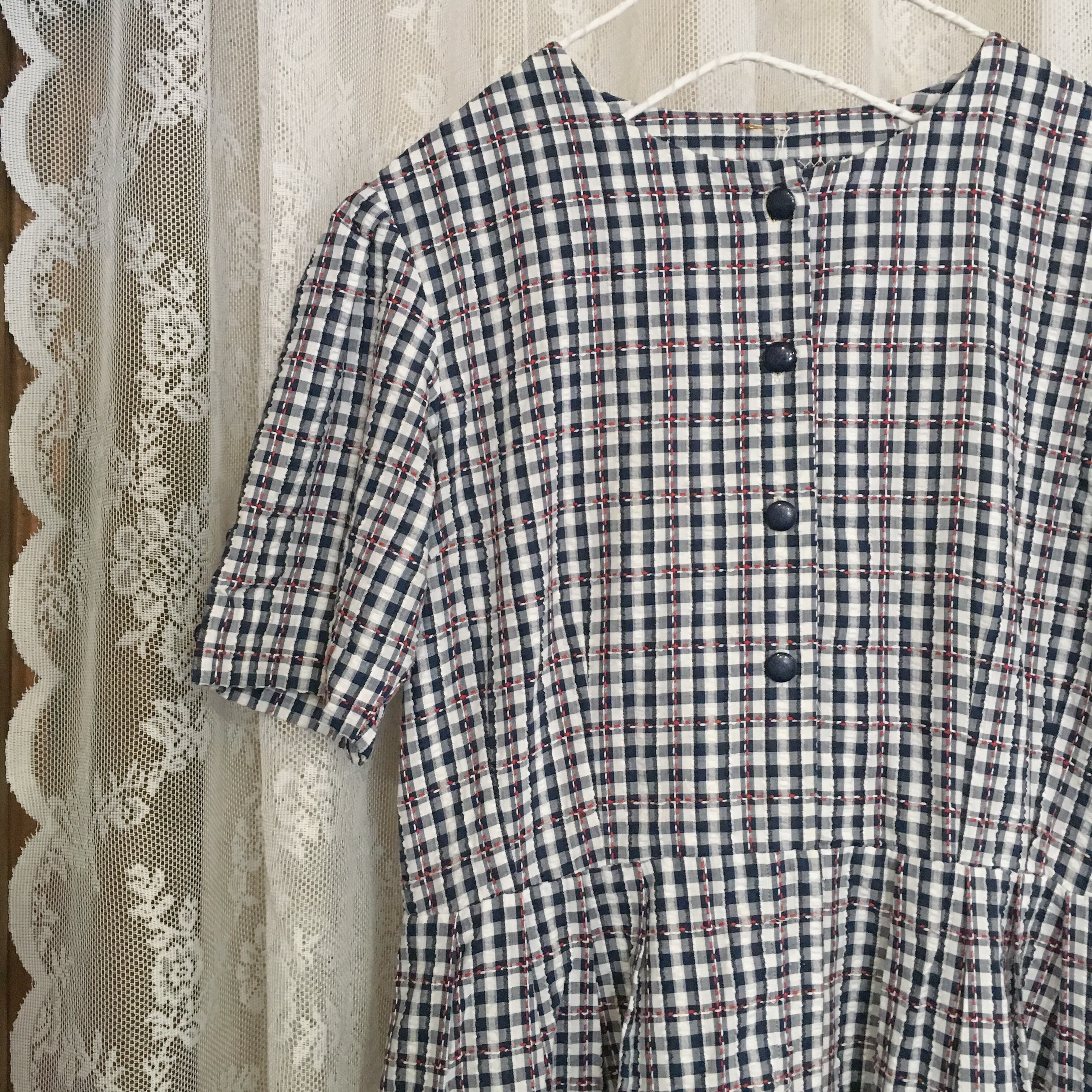 ギンガムチェック柄の夏らしいワンピースです。シボの入ったサッカー生地で涼しく着ていただけます。
