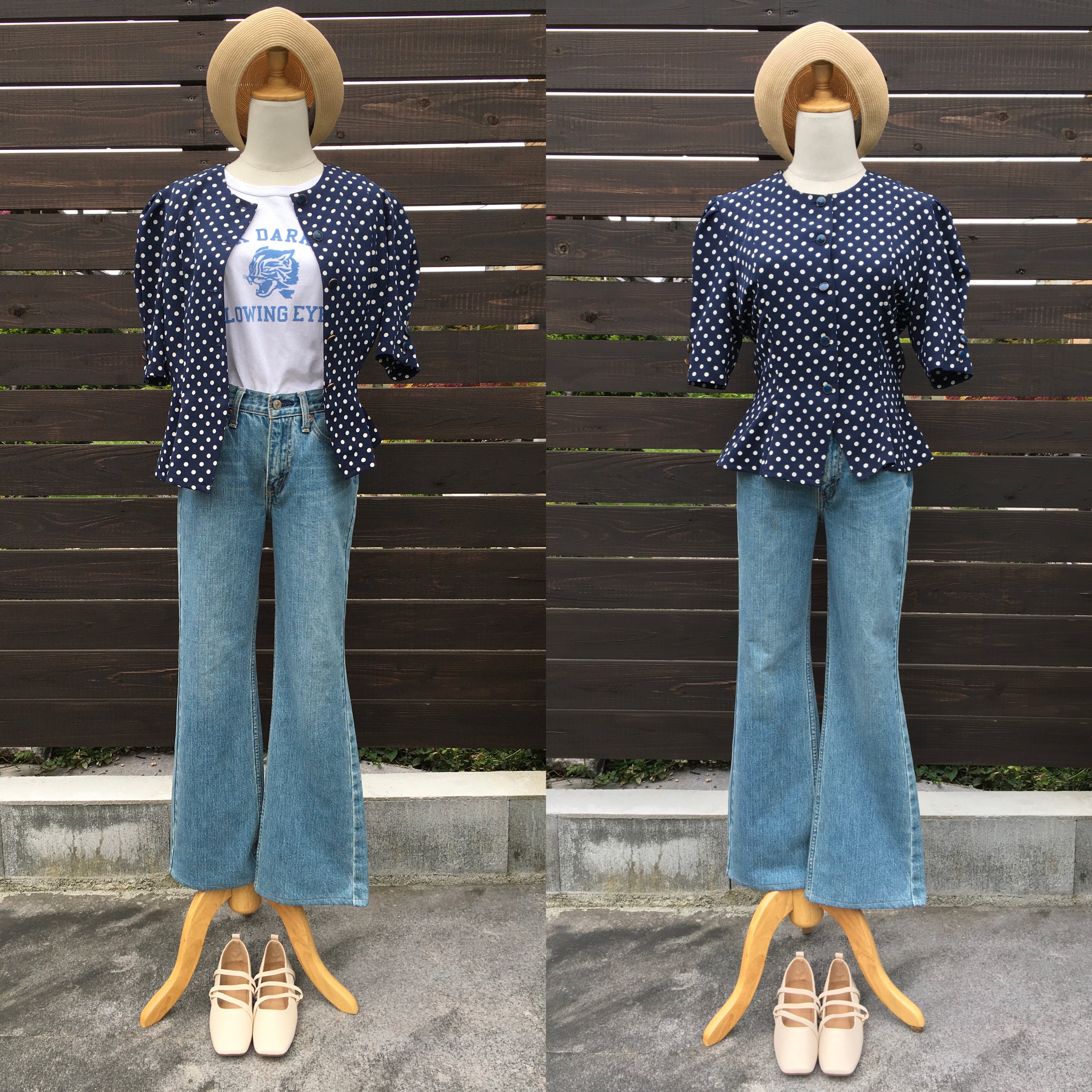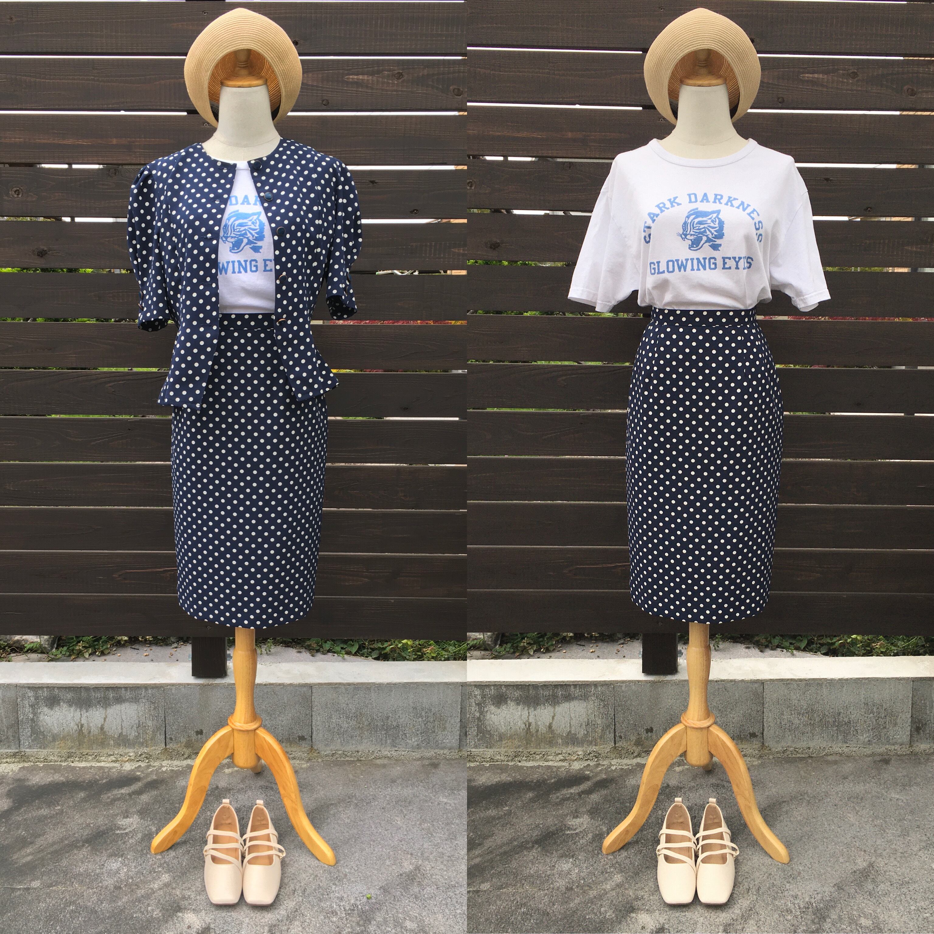 navy dot setup〈レトロ古着 ネイビードッセットアップ〉