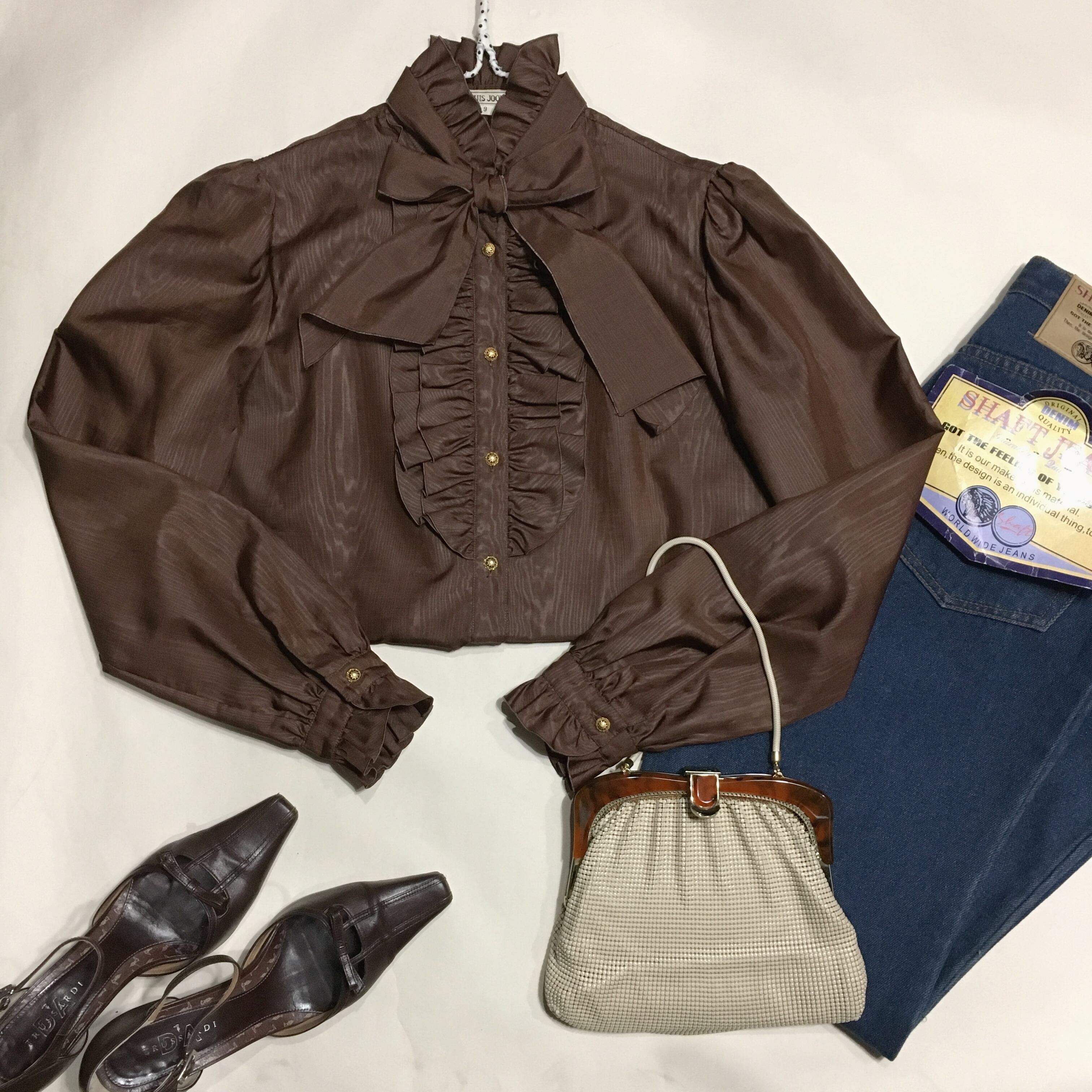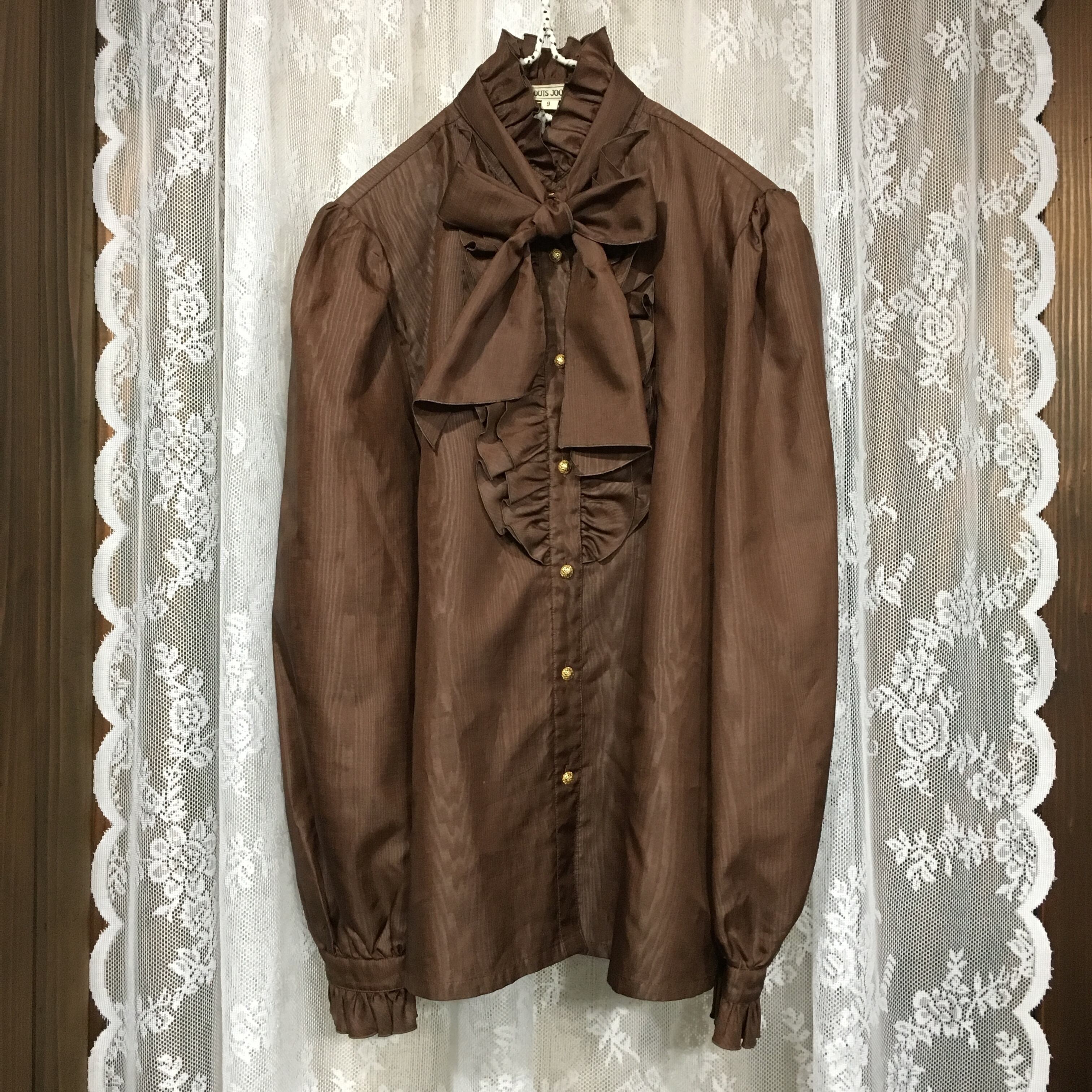 brown bowtie blouse 〈古着 ブラウンボウタイブラウス〉