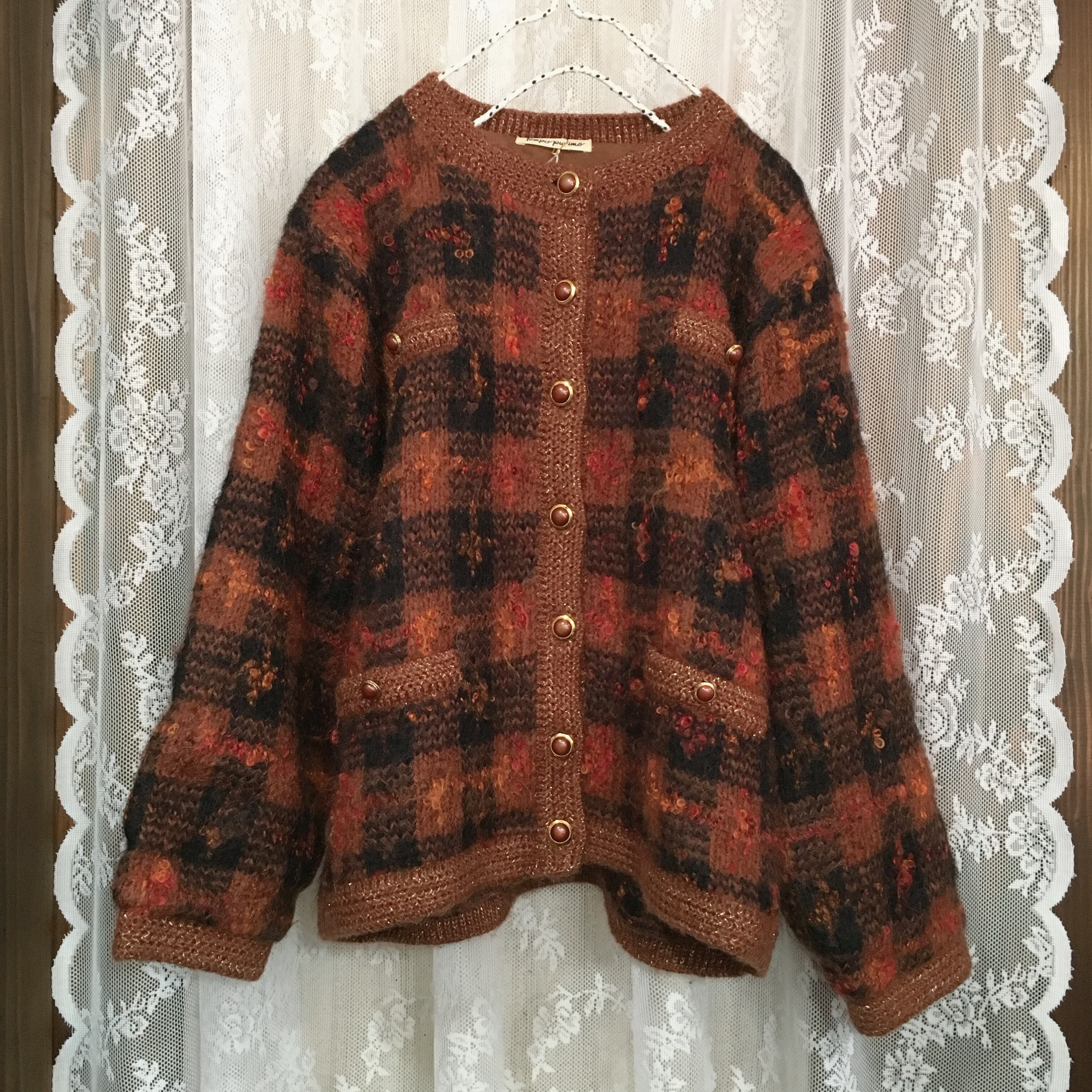 check knit cardigan 〈古着 チェックニットカーディガン〉