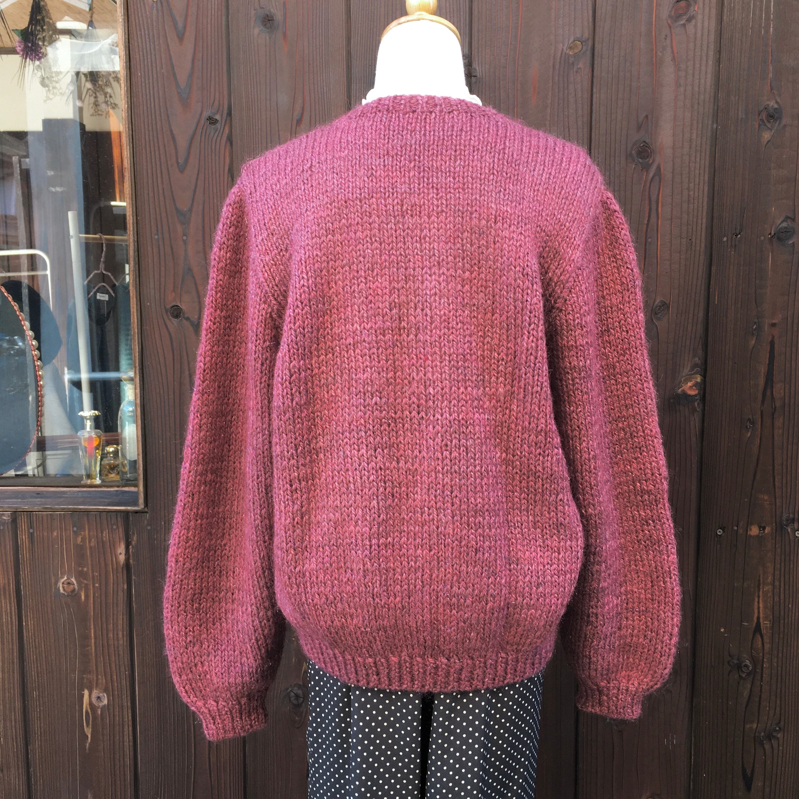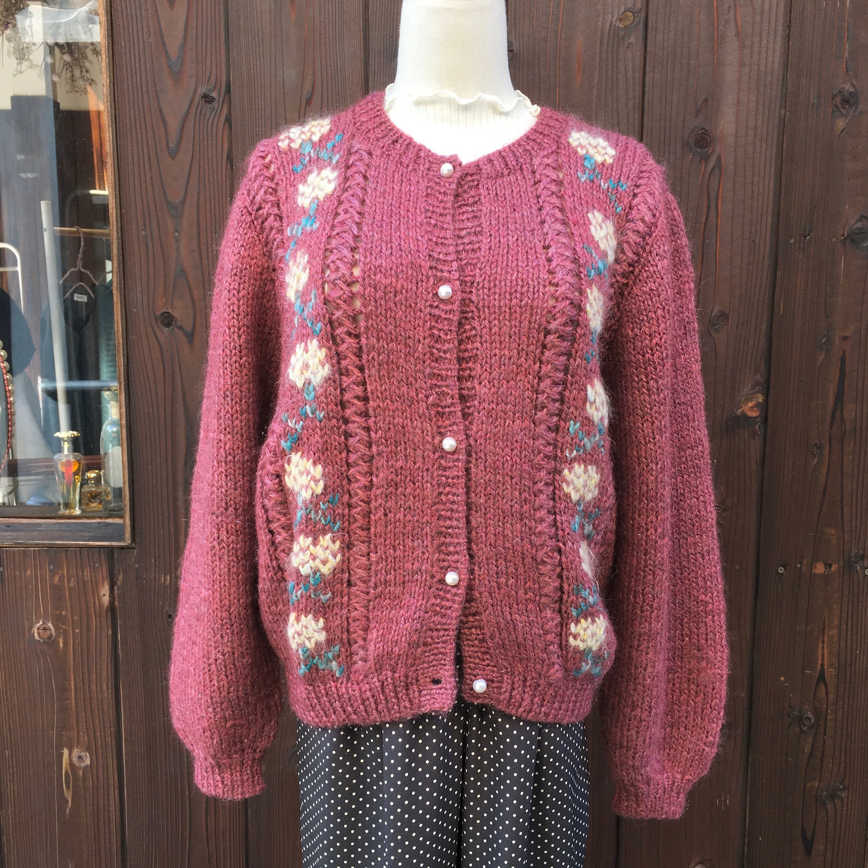 手編み感やお花のモチーフがレトロなニットカーディガン
