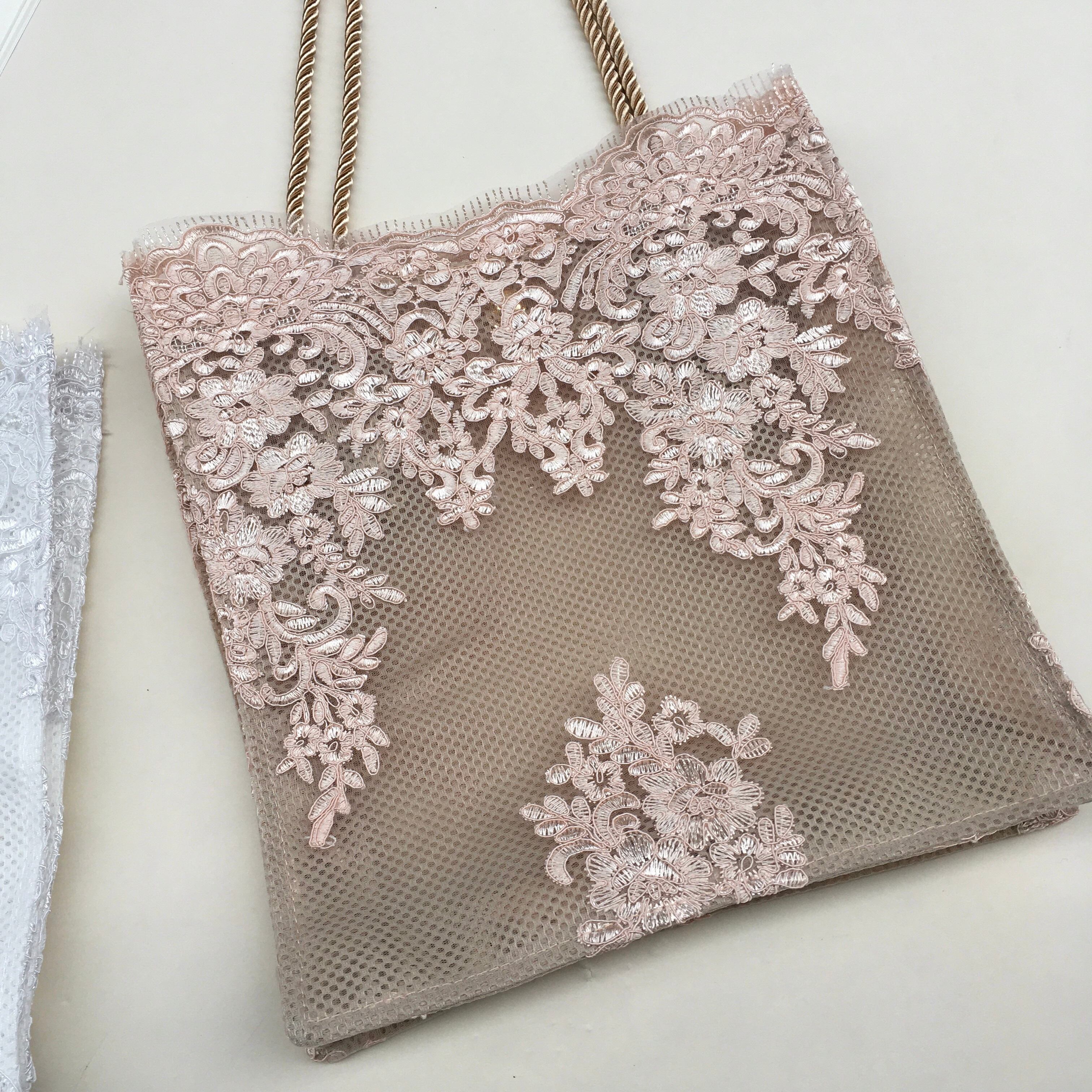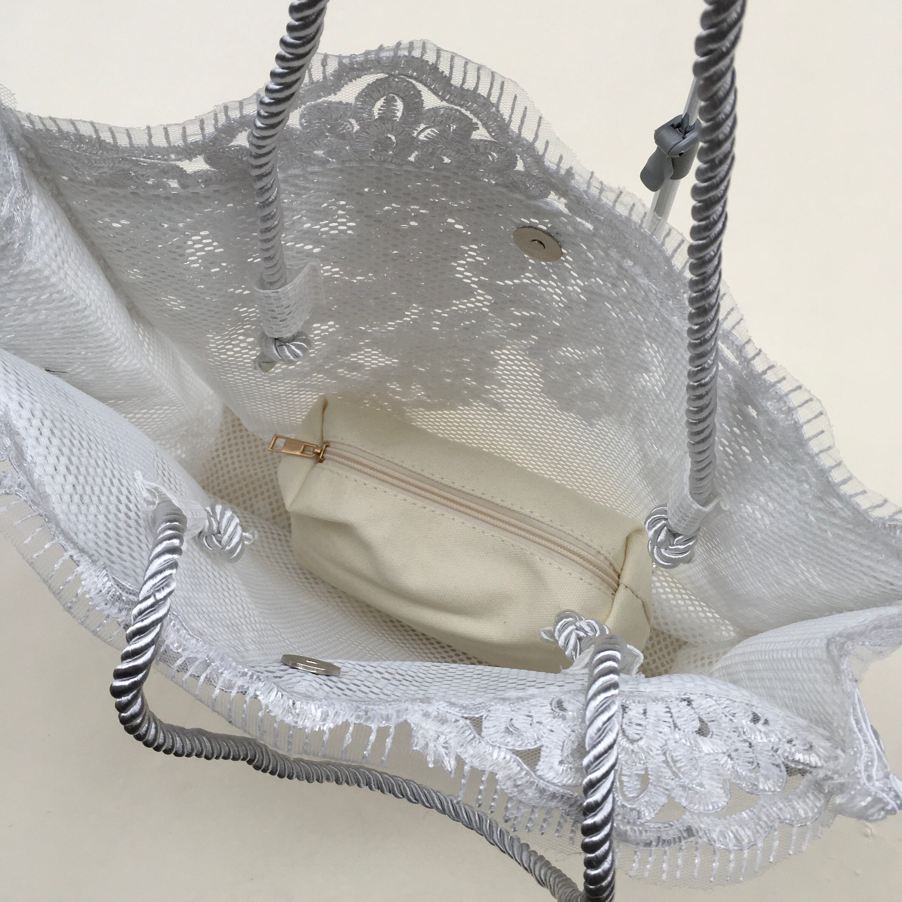 ヴィンテージライクなレースとトレンドのメッシュのトートバッグ(ミニポーチ付き)