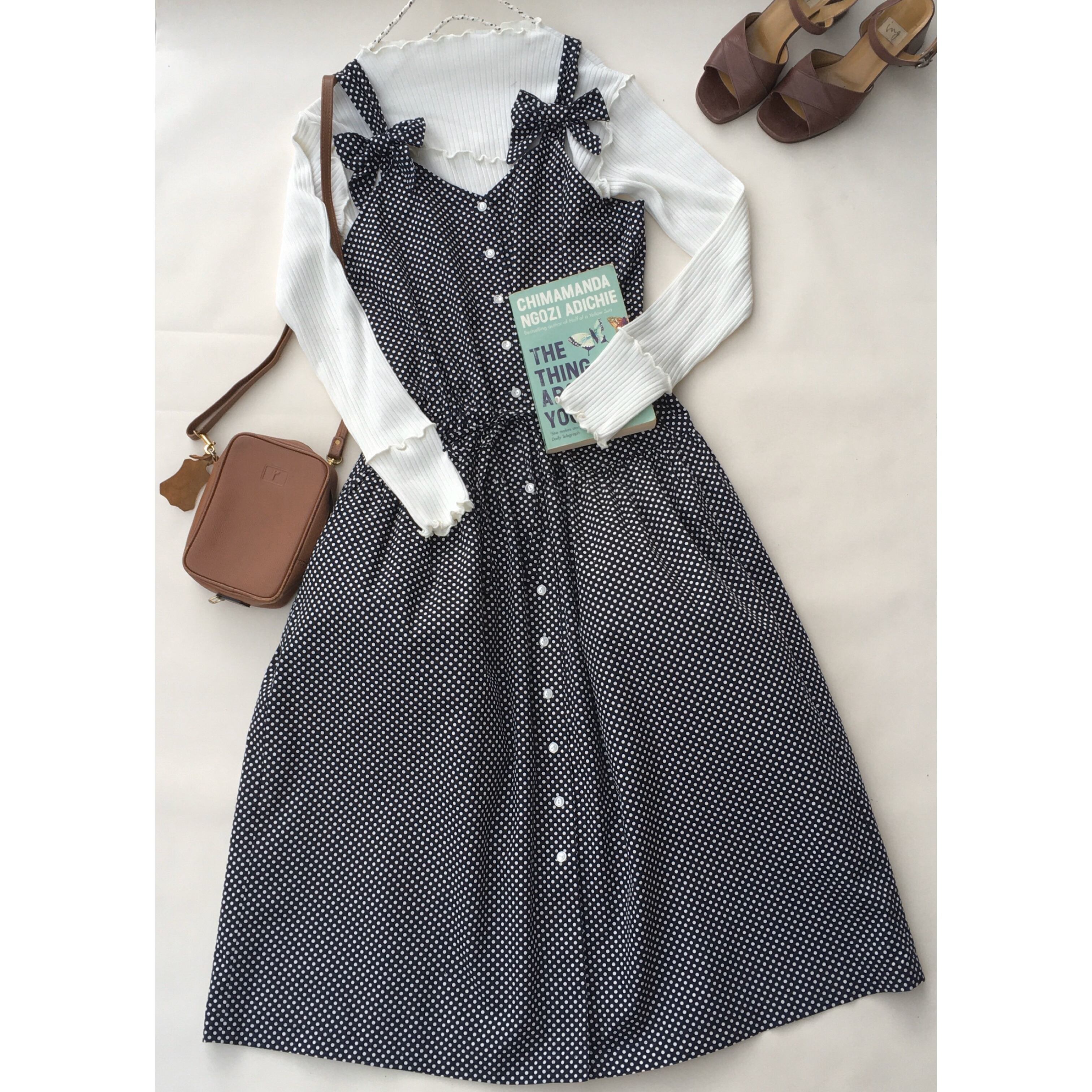 dot × ribbon jumper skirt〈レトロ古着 ドット×リボン ジャンパースカート ワンピース〉
