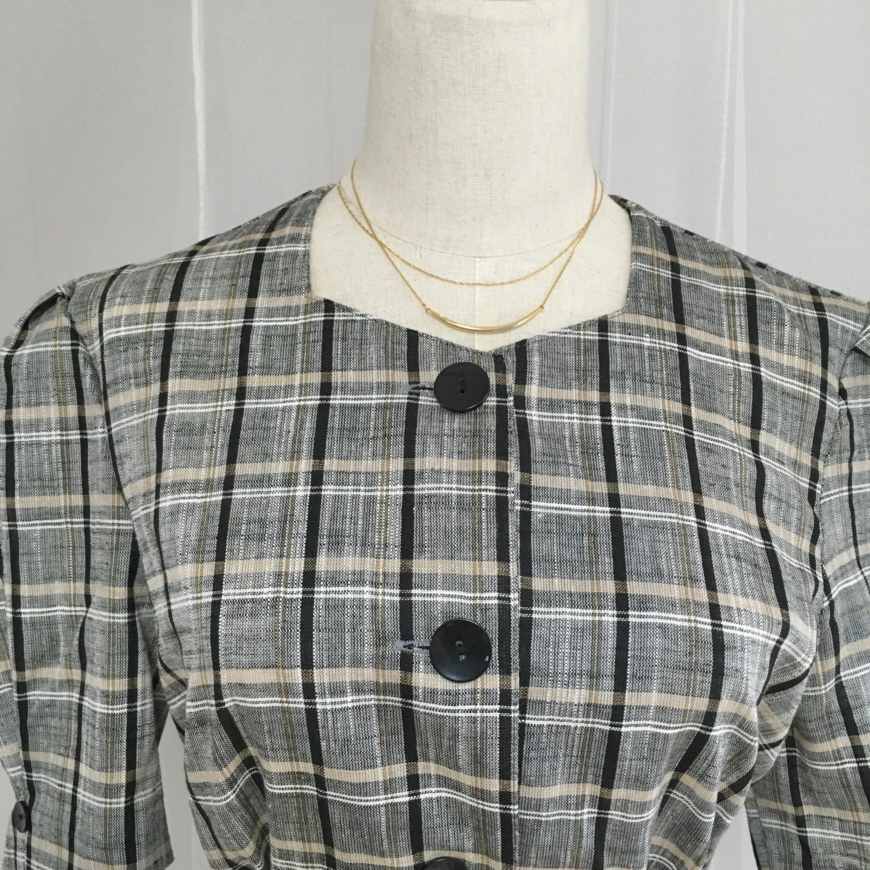monotone check tight one piece 〈レトロ古着 モノトーンチェックタイトワンピース〉
