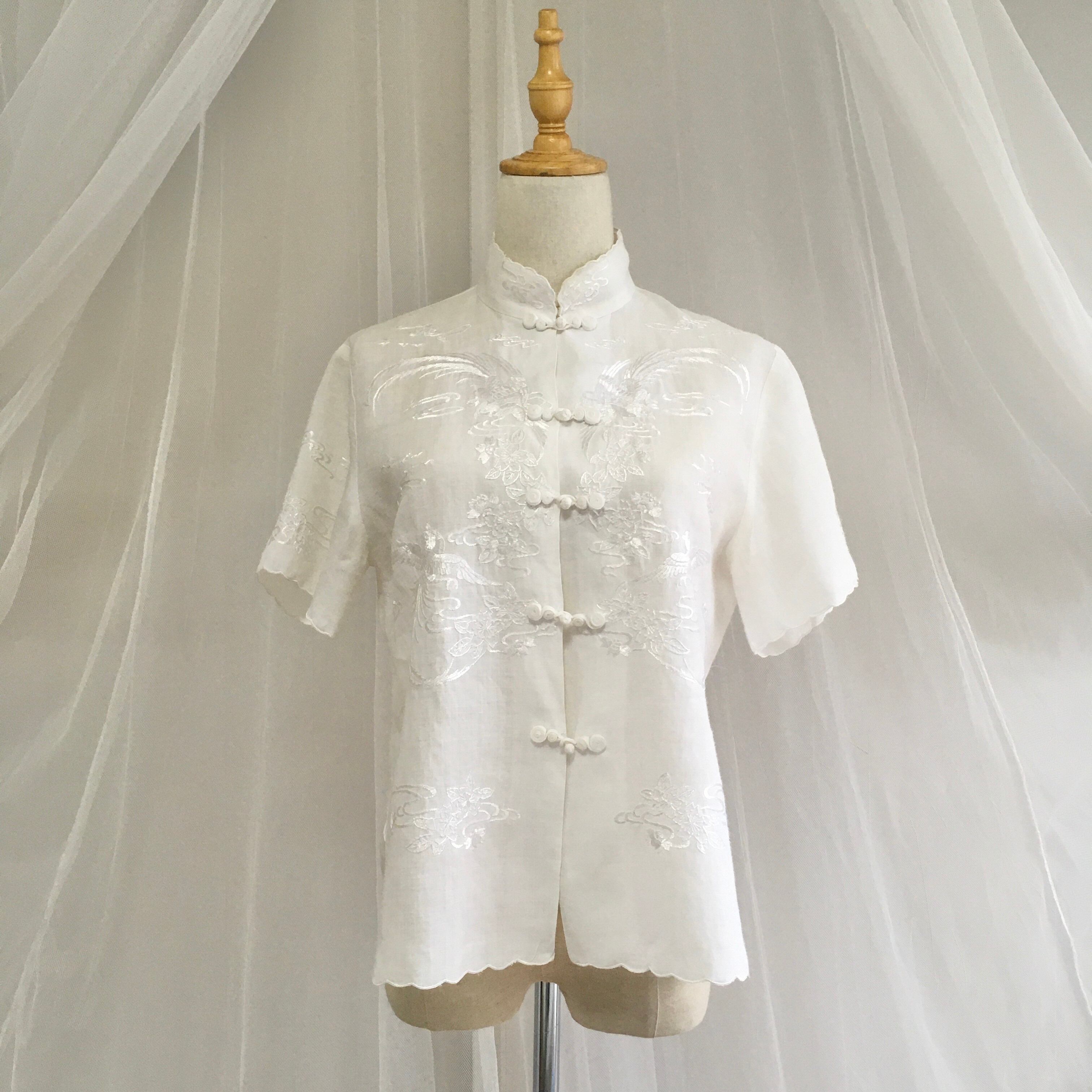 embroidered kung fu shirt〈レトロ古着 刺繍入りカンフーシャツ チャイナブラウス〉