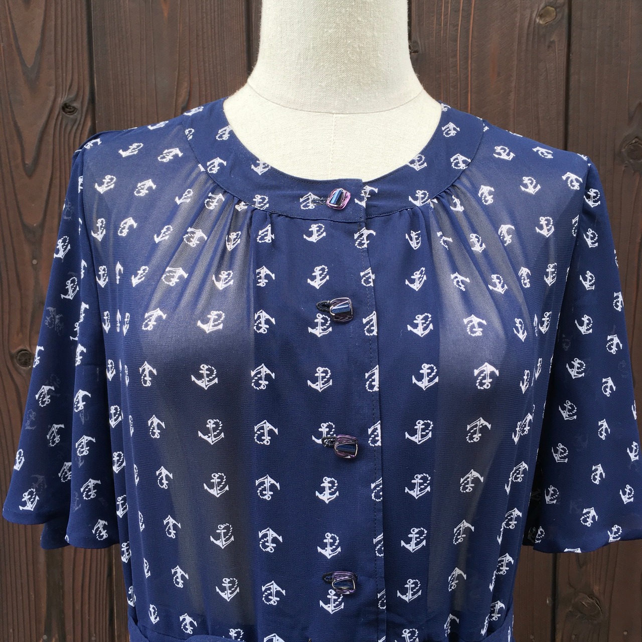 squid pattern marine one piece 〈レトロ古着 イカリ柄マリンワンピース〉