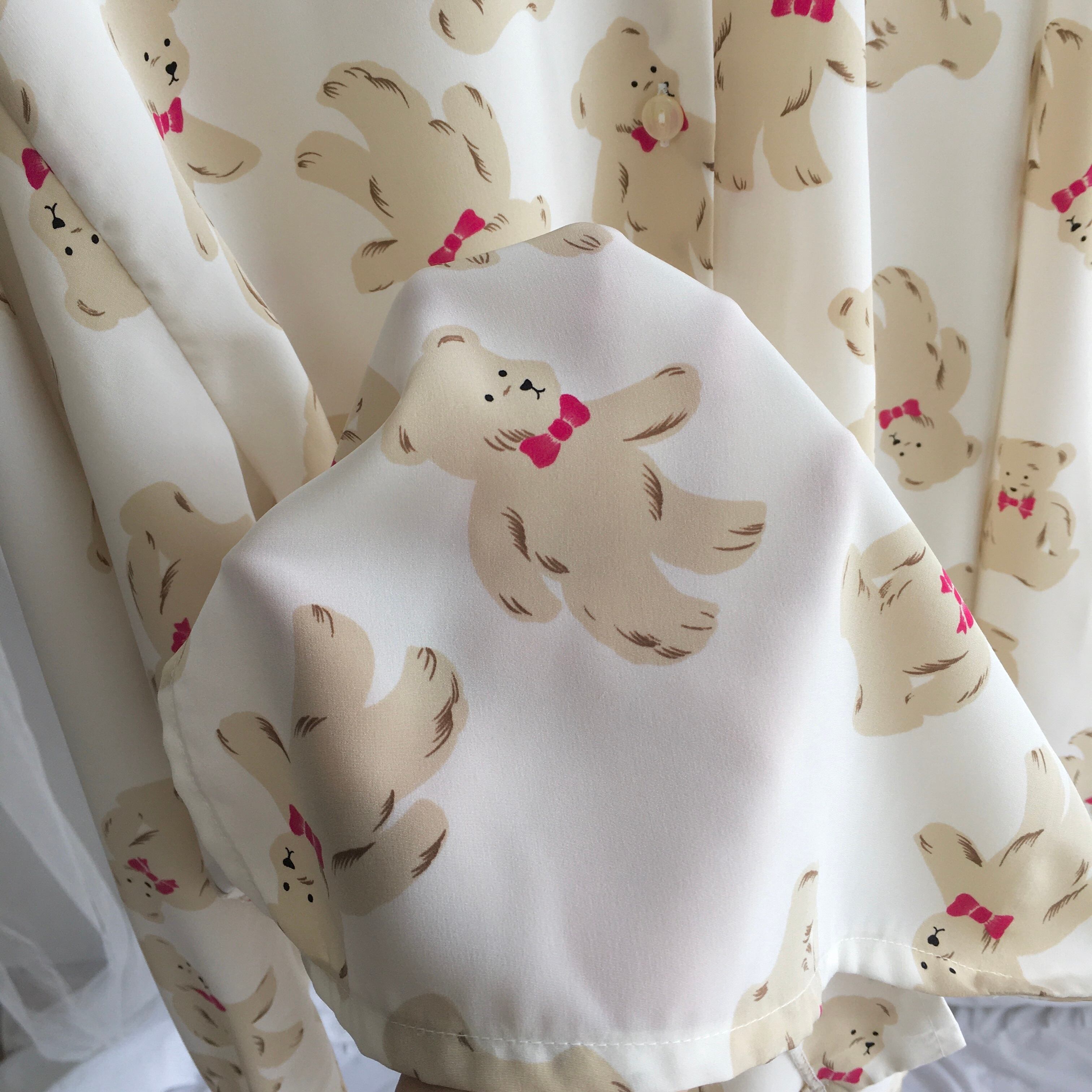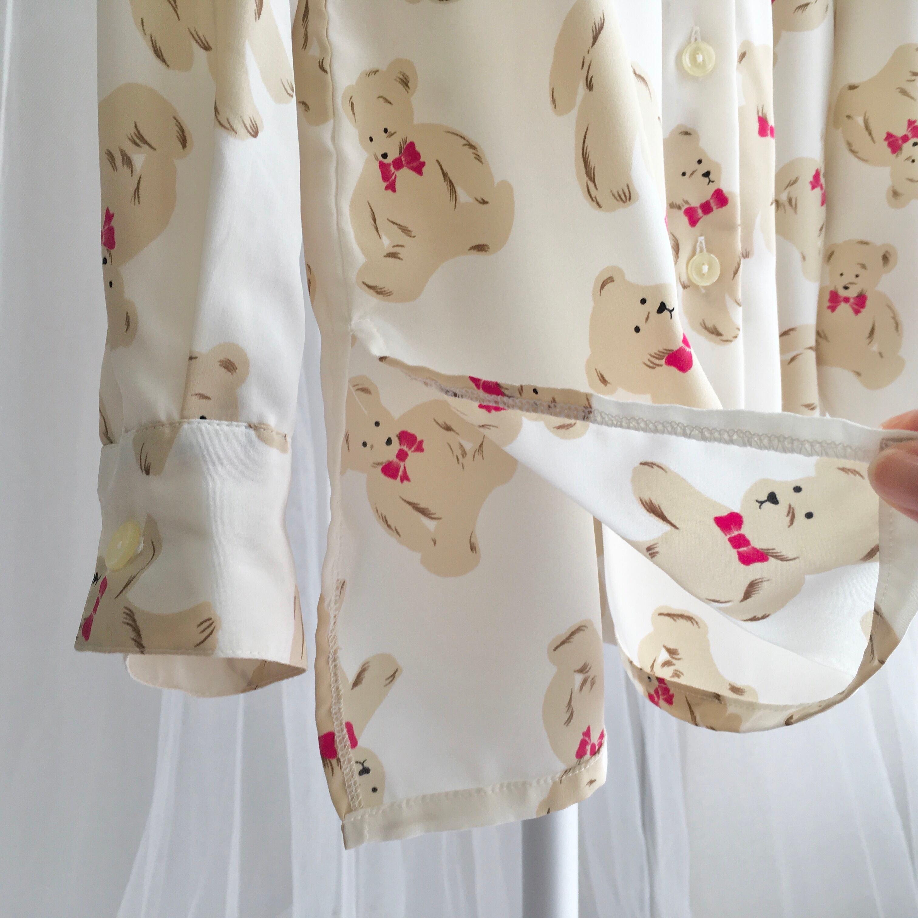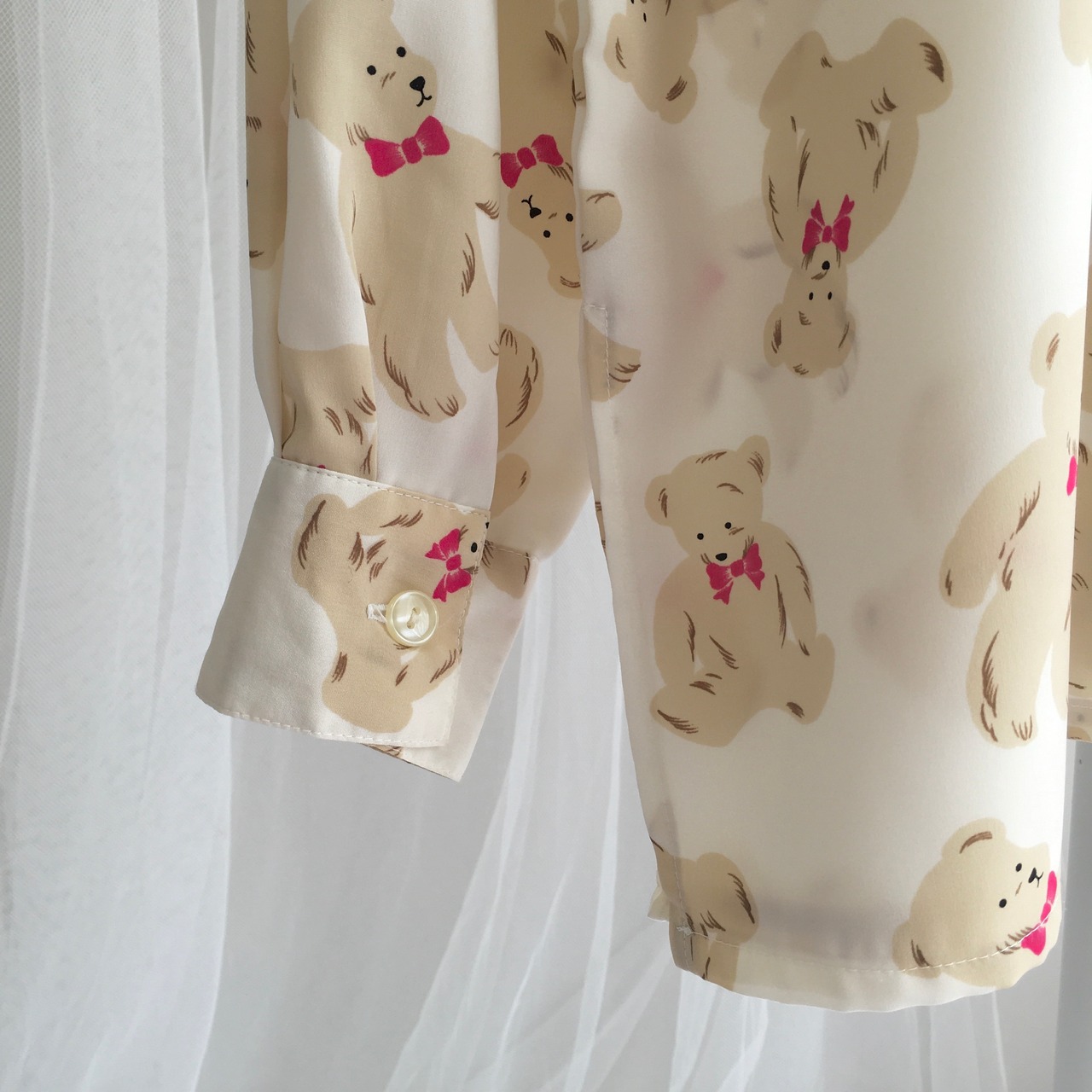 teddy bear oversize shirt 〈レトロ古着 テディベア柄オーバーサイズシャツ くま柄〉