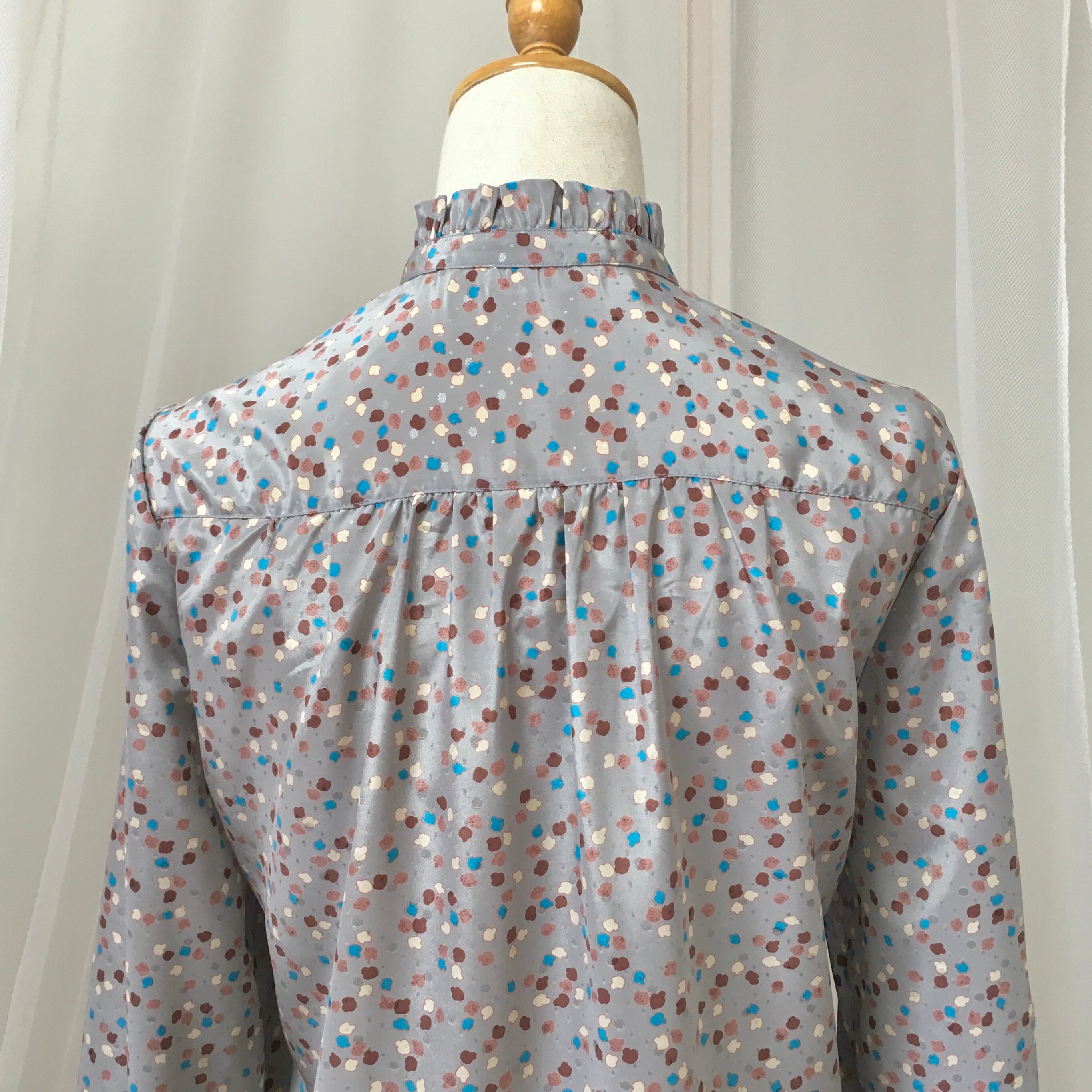 multicolor bowtie frill blouse 〈レトロ古着 マルチカラーフリルボウタイブラウス フリル〉