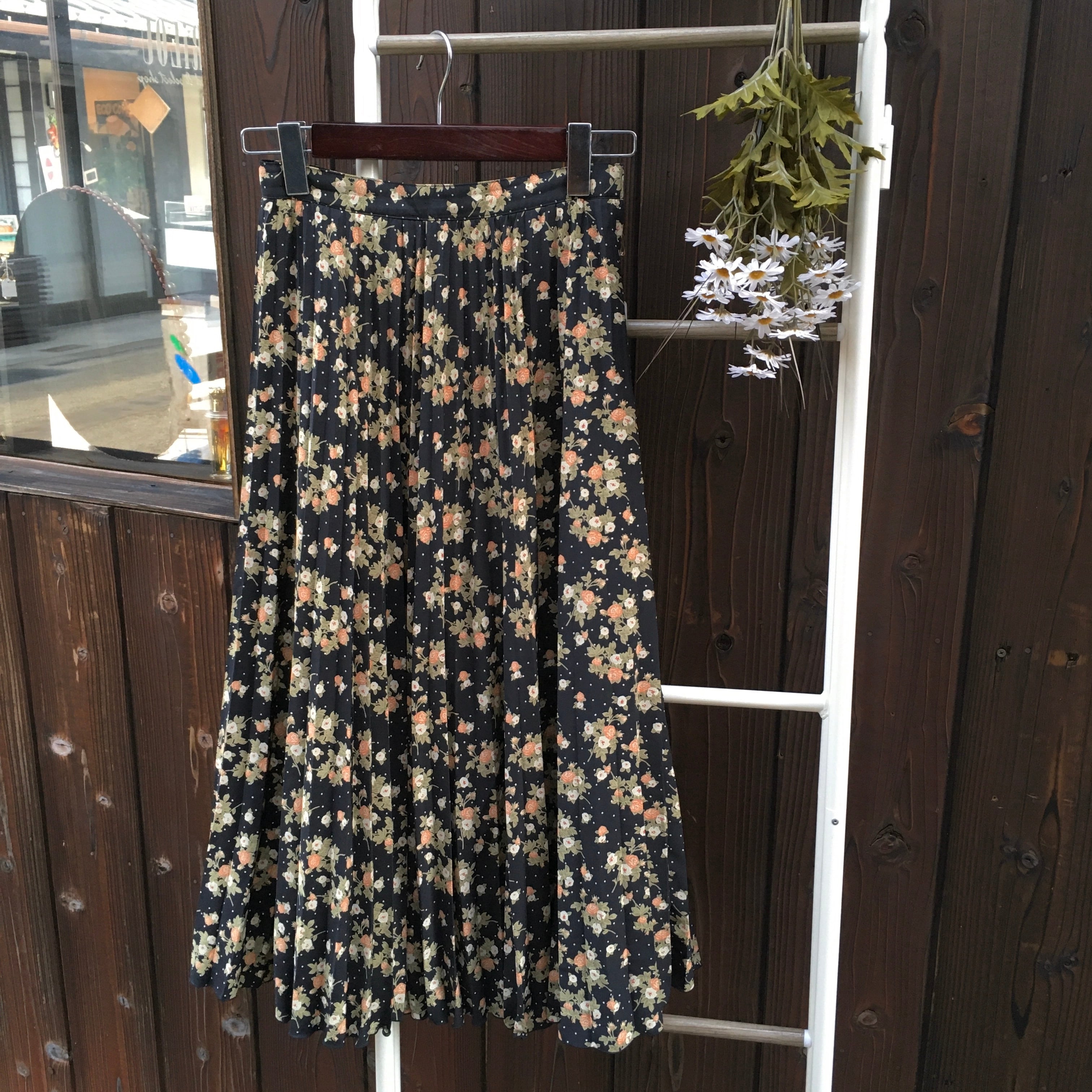 dot & flower pleated skirt 〈レトロ古着 花柄&ドットプリーツスカート 〉