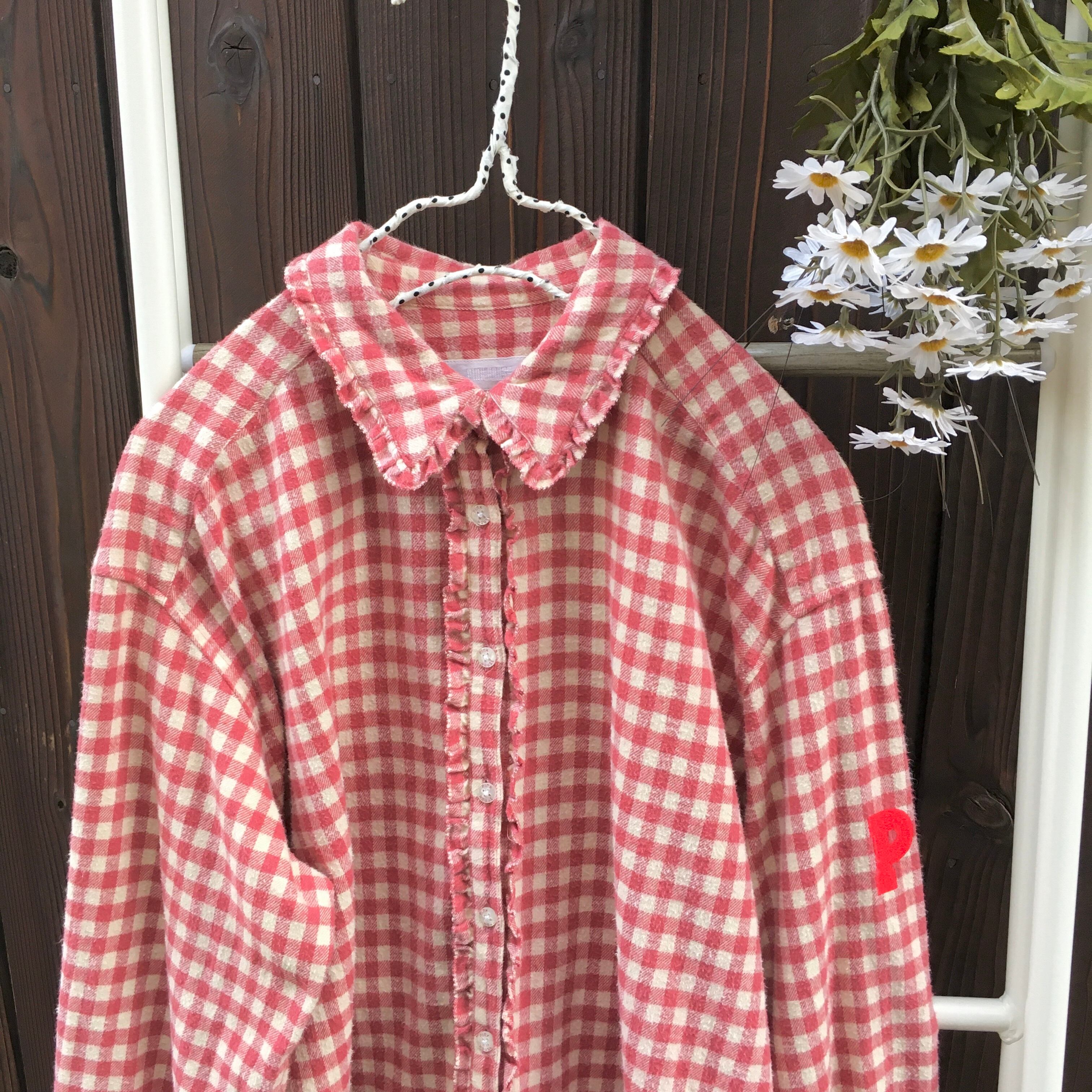 PINK HOUSE gingham check frill flannel shirt 〈レトロ古着 ピンクハウス ギンガムチェックフリルネルシャツ〉