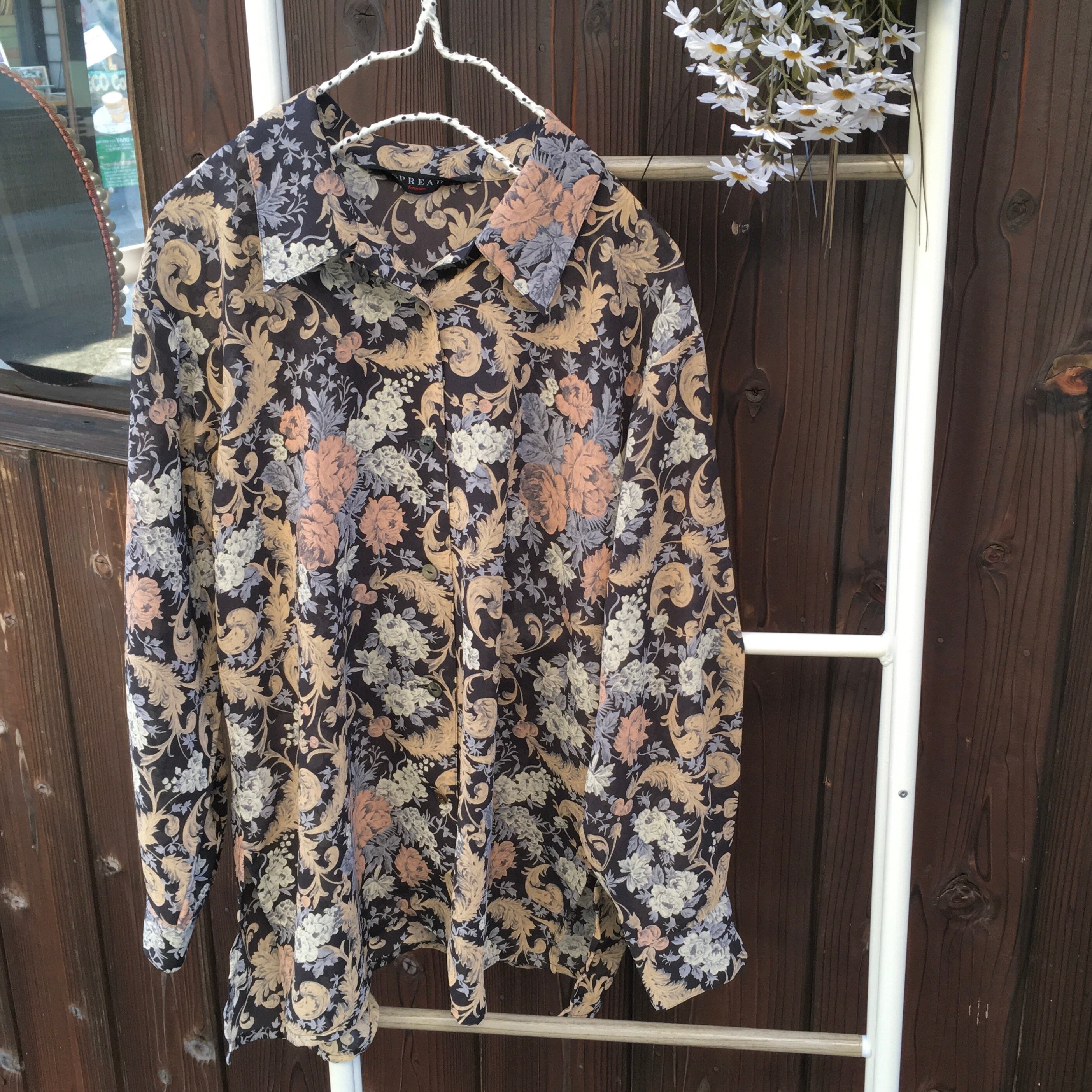 botanical sheer shirt 〈レトロ古着 ボタニカルシャツ 柄シアー柄シャツ〉