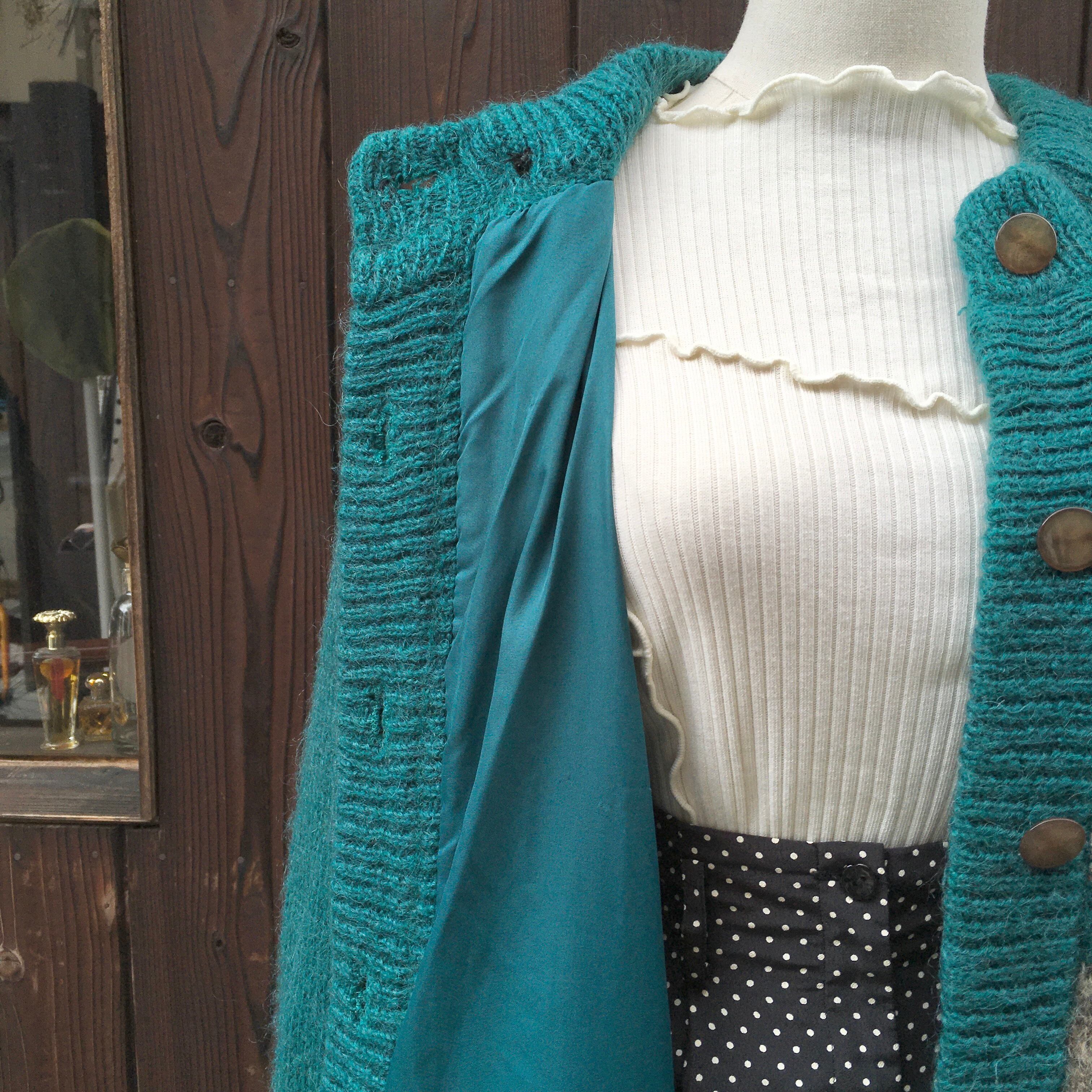 asymmetric design lined cardigan〈レトロ古着 アシンメトリーデザイン裏地付きロングカーディガン〉