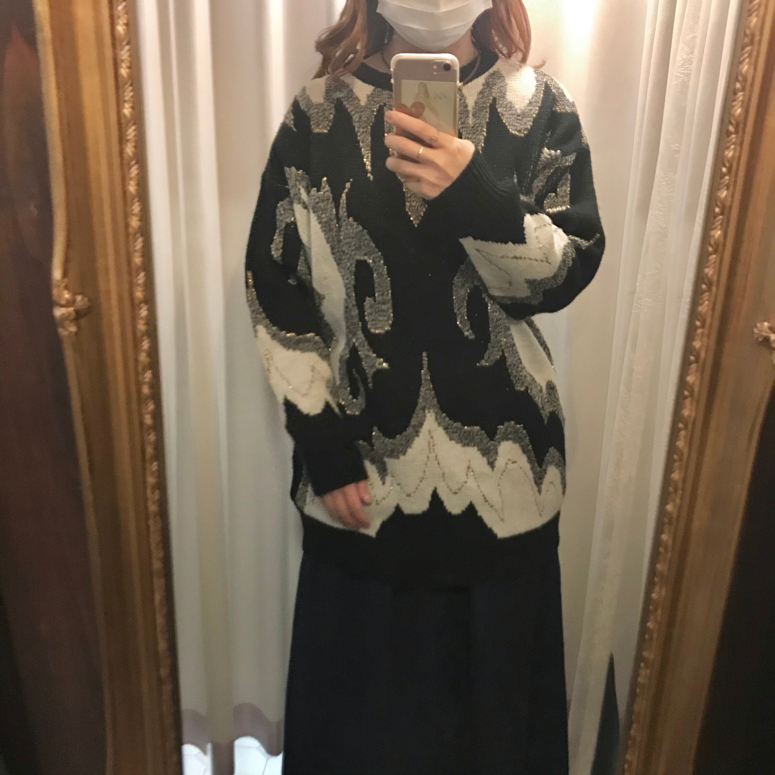 lame mix wool blend monotone knit〈レトロ古着 ラメ糸ミックスウール混デザインニット セーター 〉