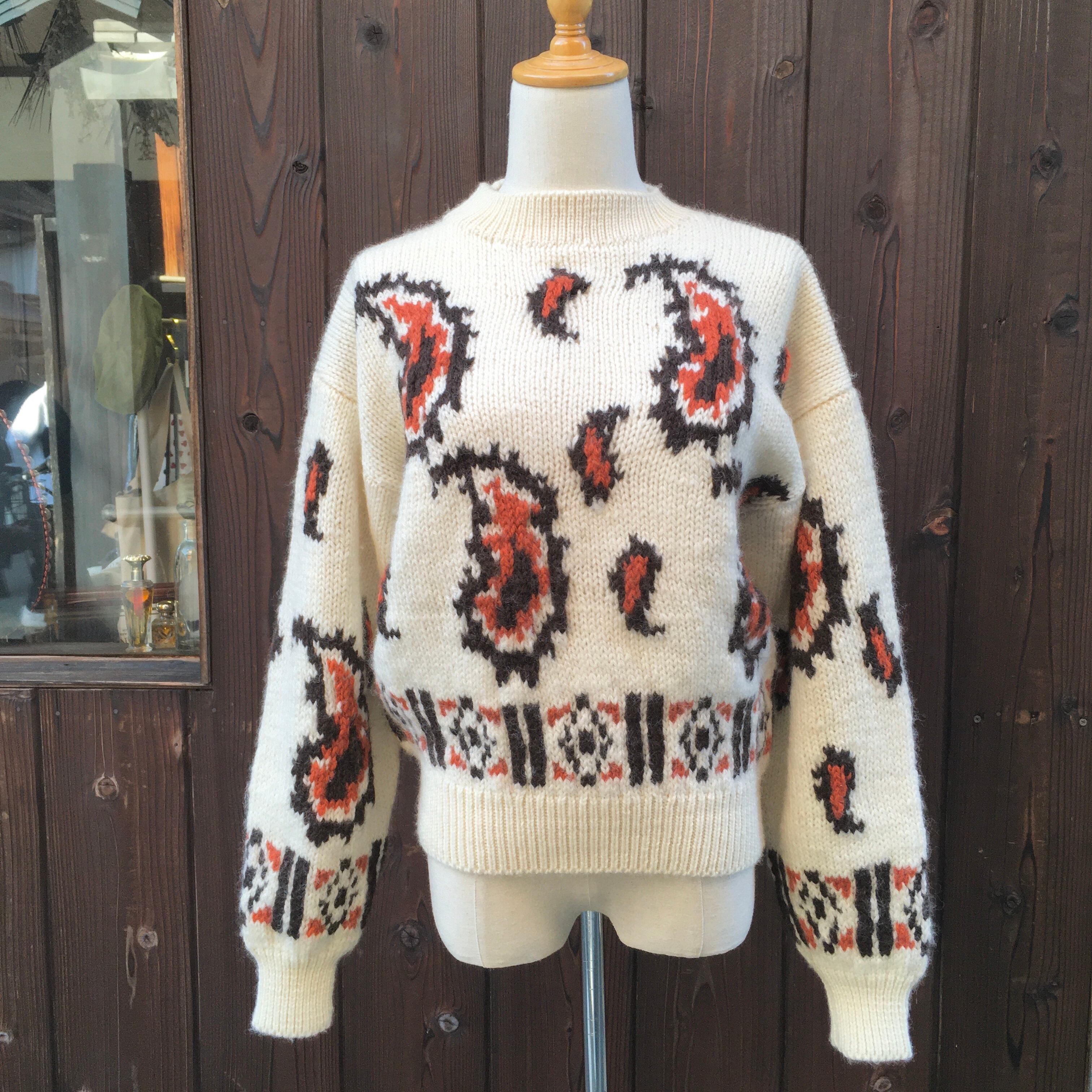 paisley mock neck wool knit〈レトロ古着 ペイズリー柄 モックネックウールニット セーター 〉