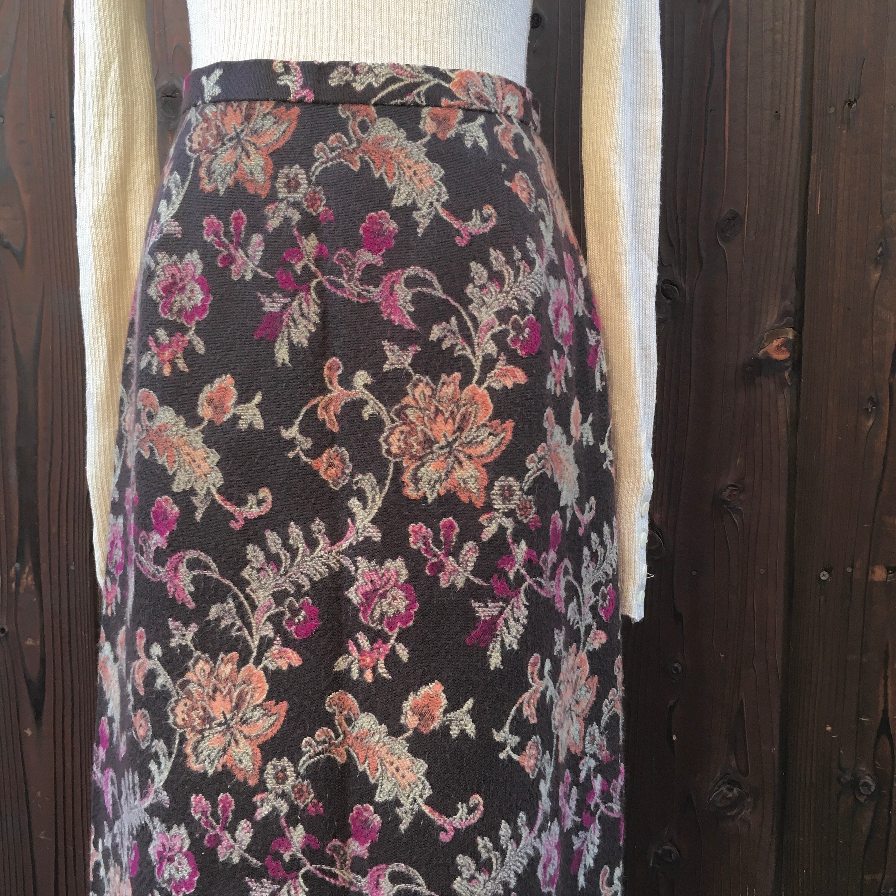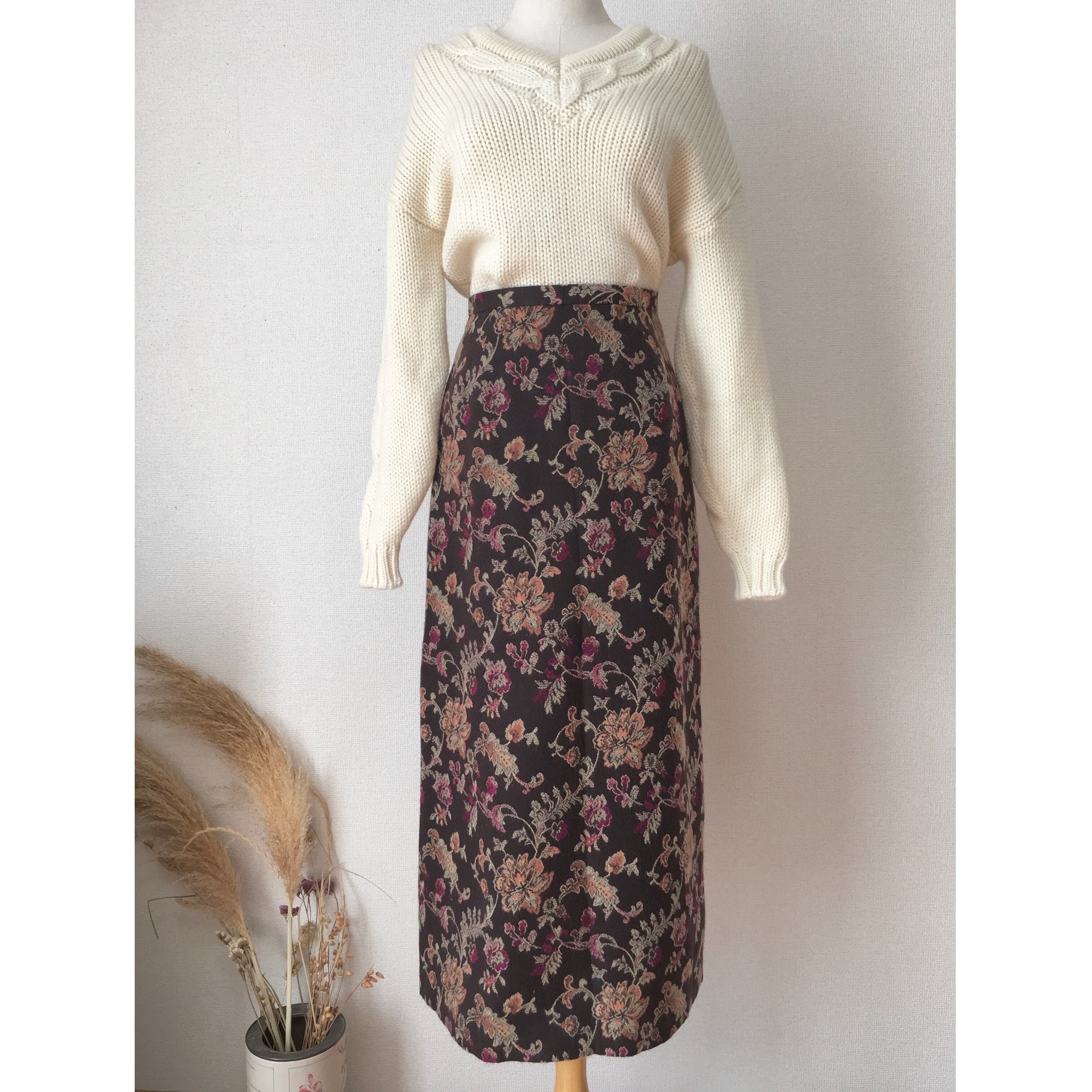 arabesque pattern long tight skirt 〈レトロ古着 アラベスク柄起毛タイトスカート ロングスカート〉