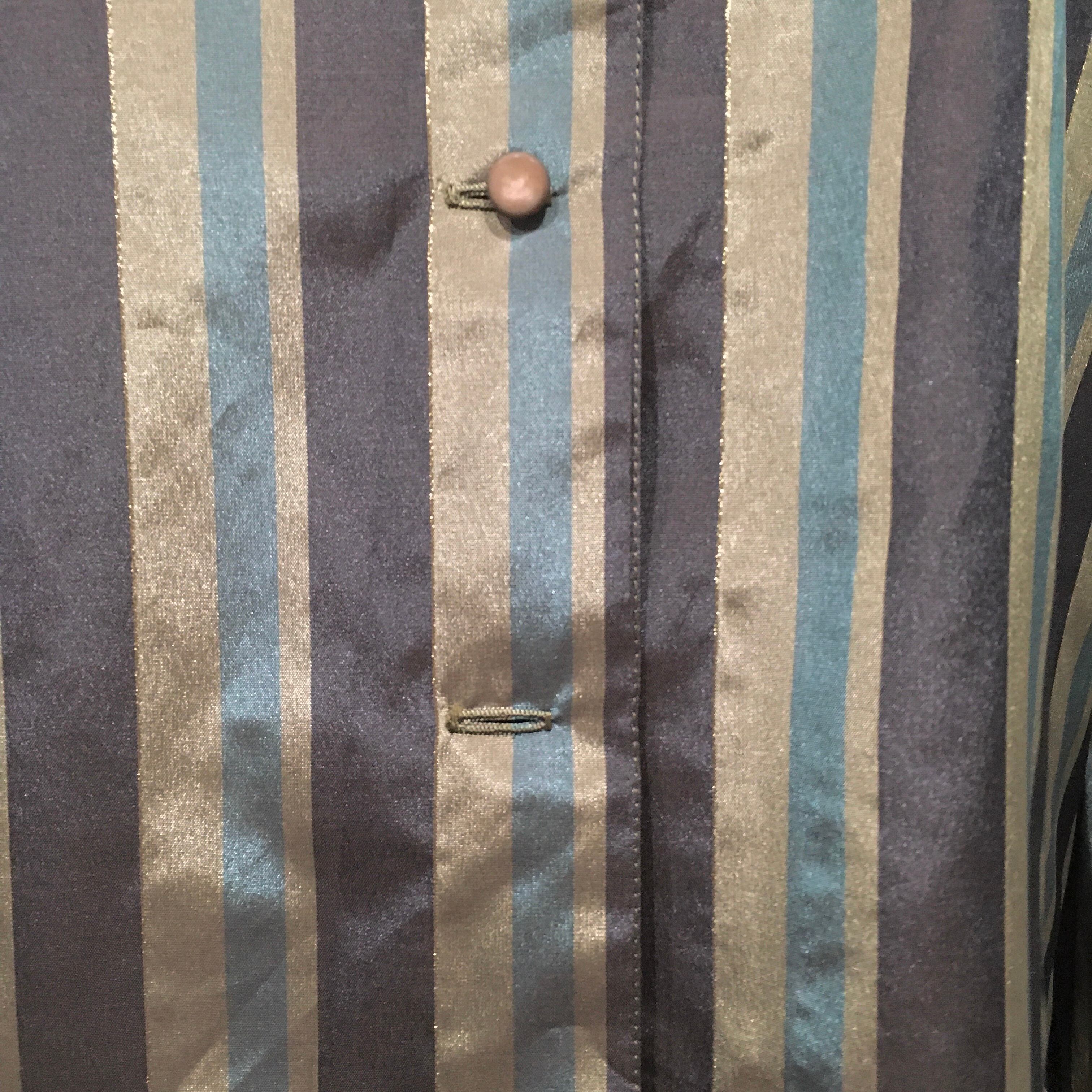 silk blend striped puff sleeve blouse〈レトロ古着 シルク混ストライプ柄パフスリーブブラウス〉