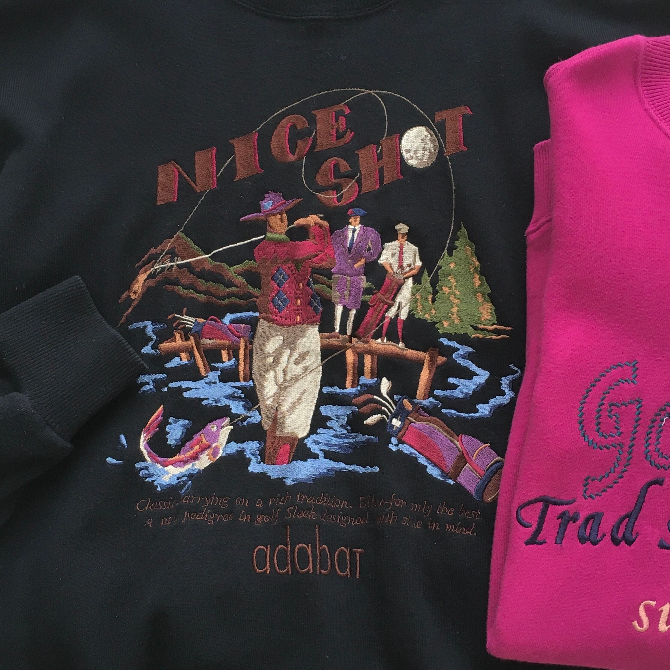 ゴルフモチーフの刺繍が入ったレトロなスウェット