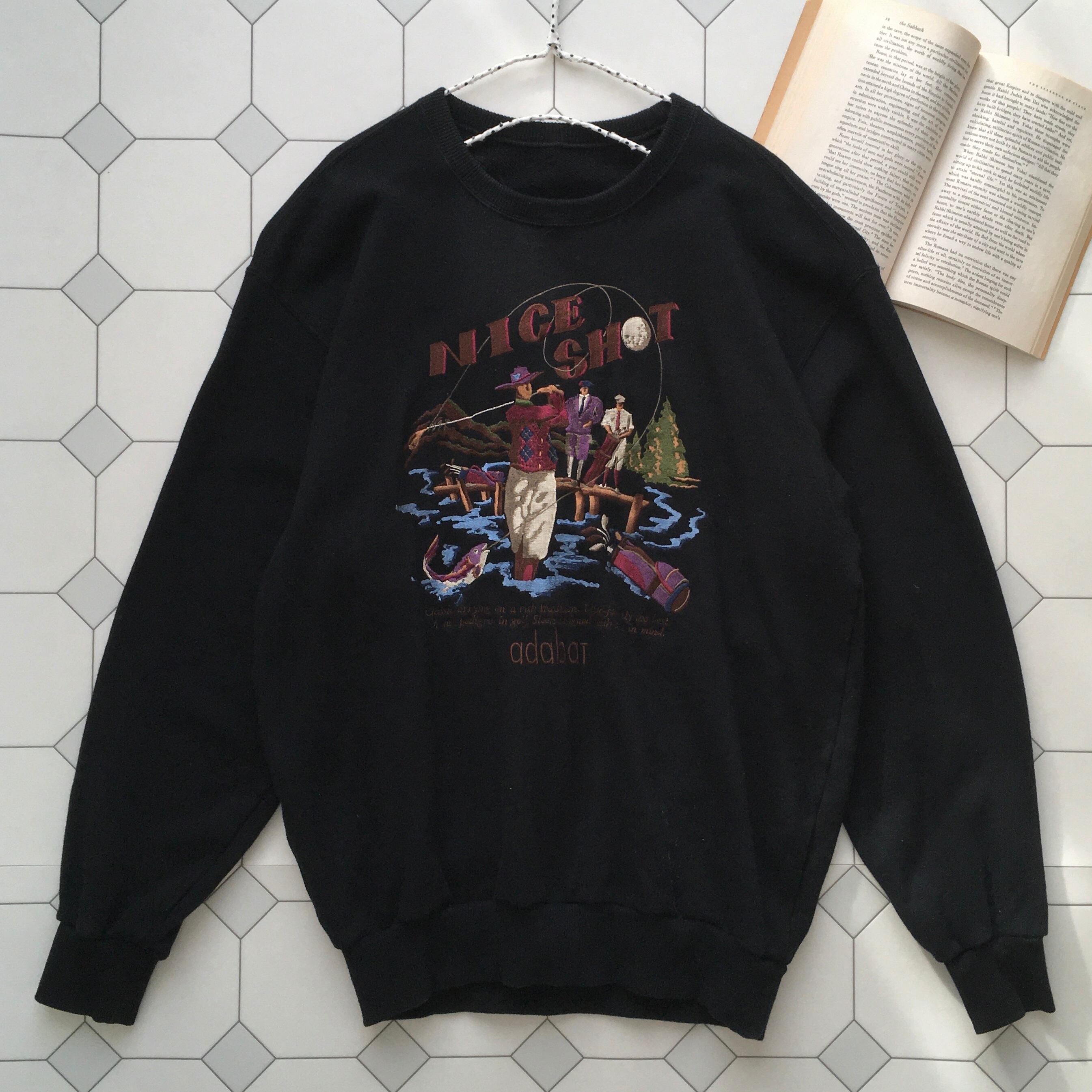 golf embroidery oversize sweat black〈レトロ古着 ゴルフ刺繍オーバーサイズスウェット ブラック〉