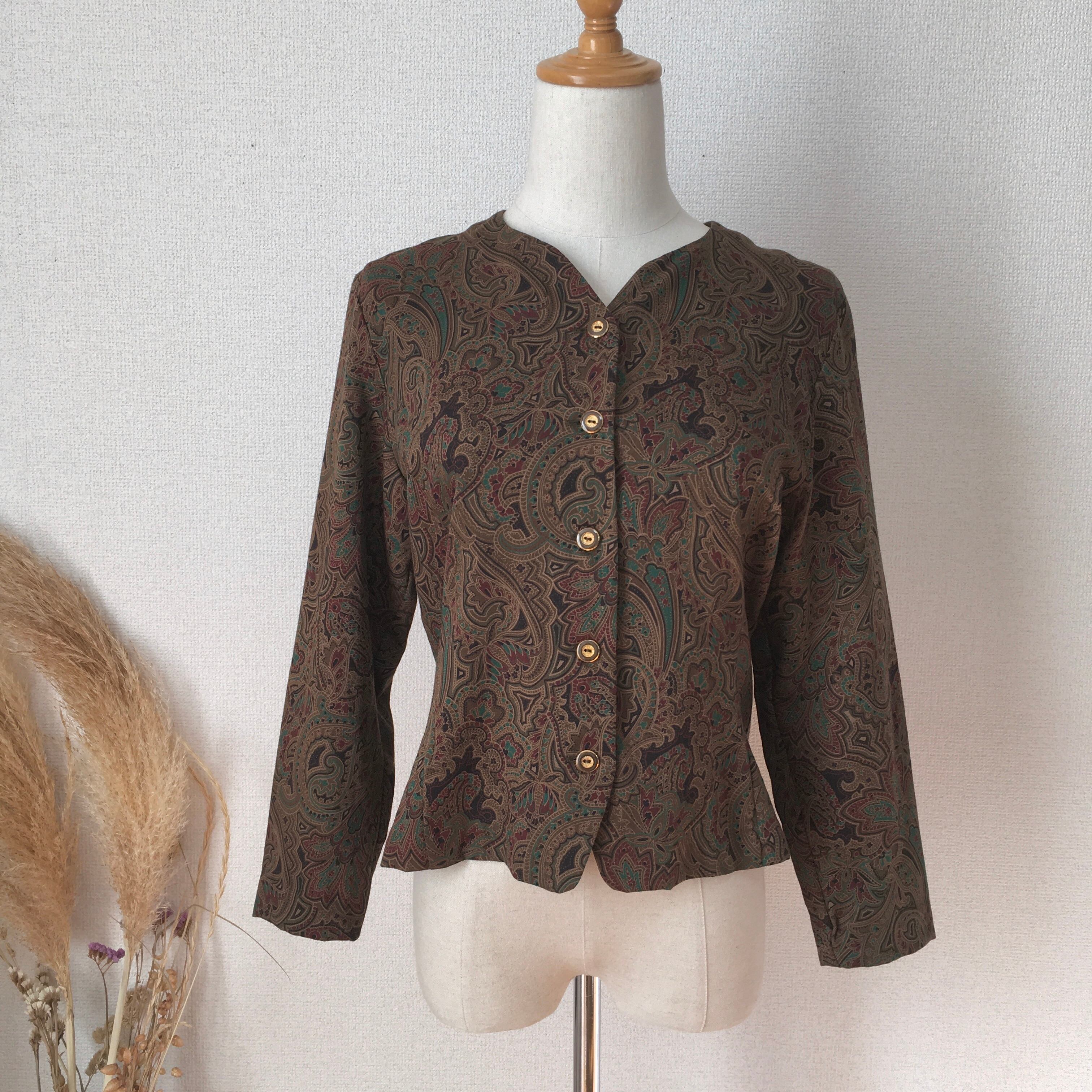 heart shaped neck wool blouse〈レトロ古着 総柄ハートシェイプドネックウールブラウス〉